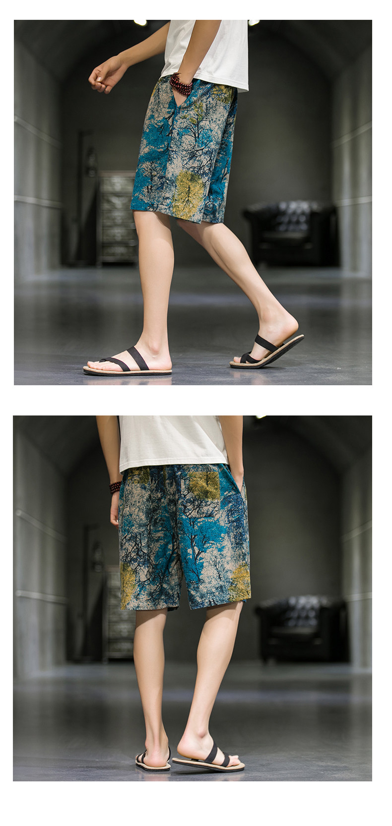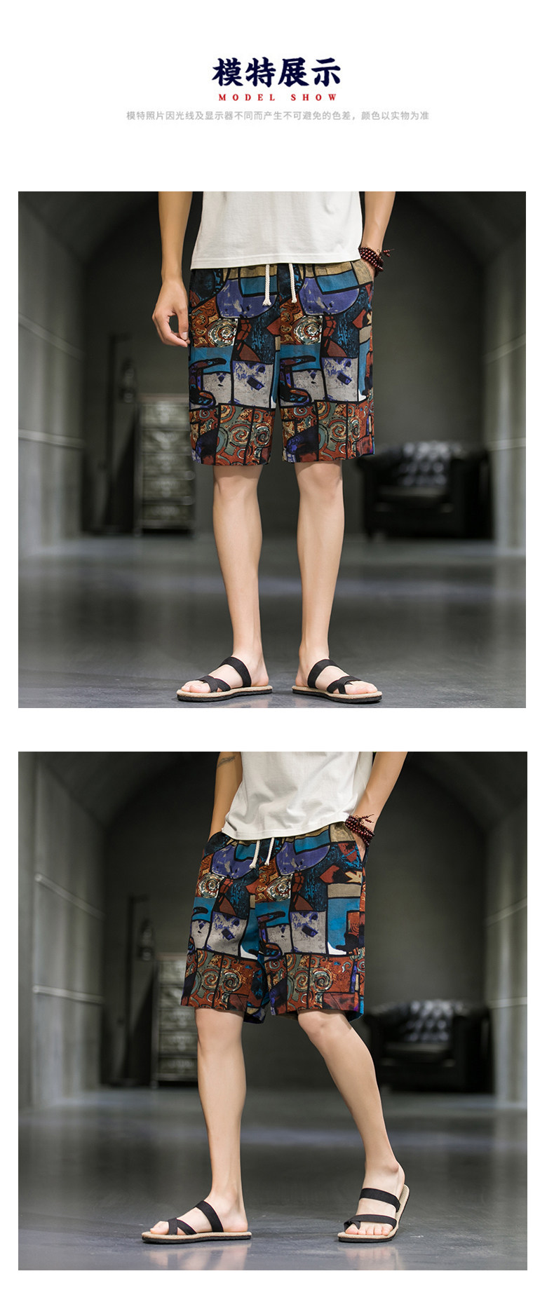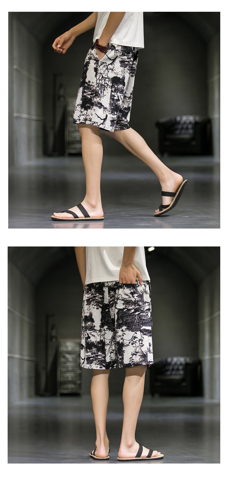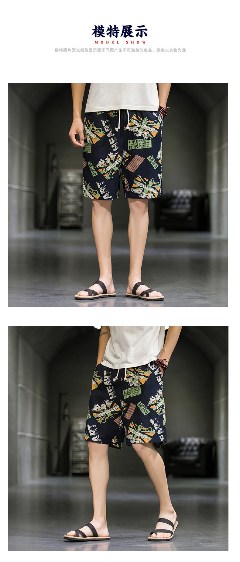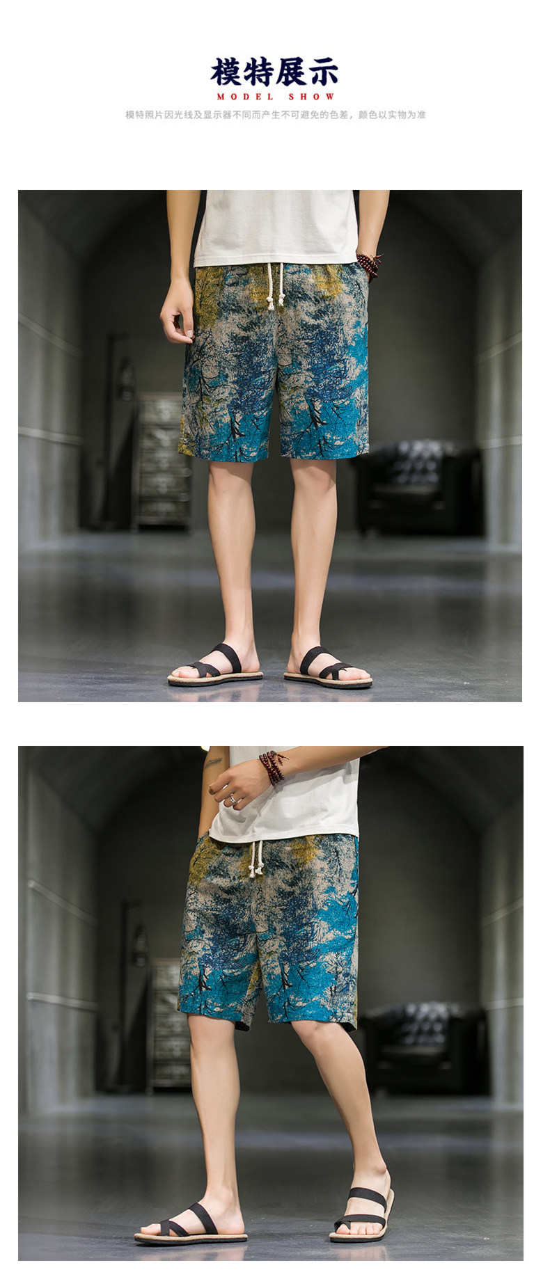 短裤男夏季潮牌五分花裤子外穿宽松速干沙滩裤男士休闲亚麻冰丝裤