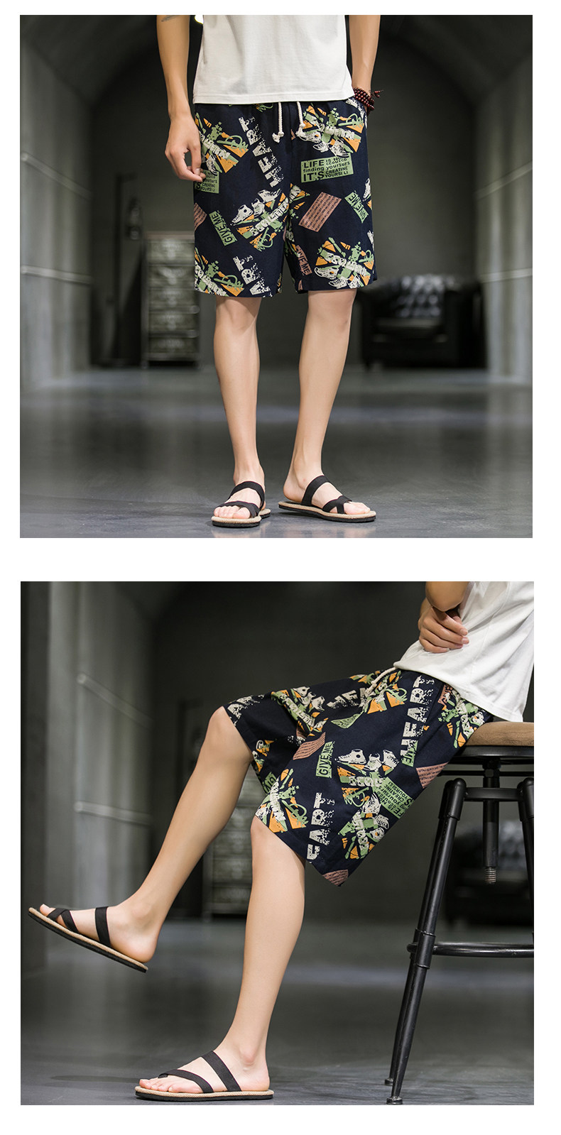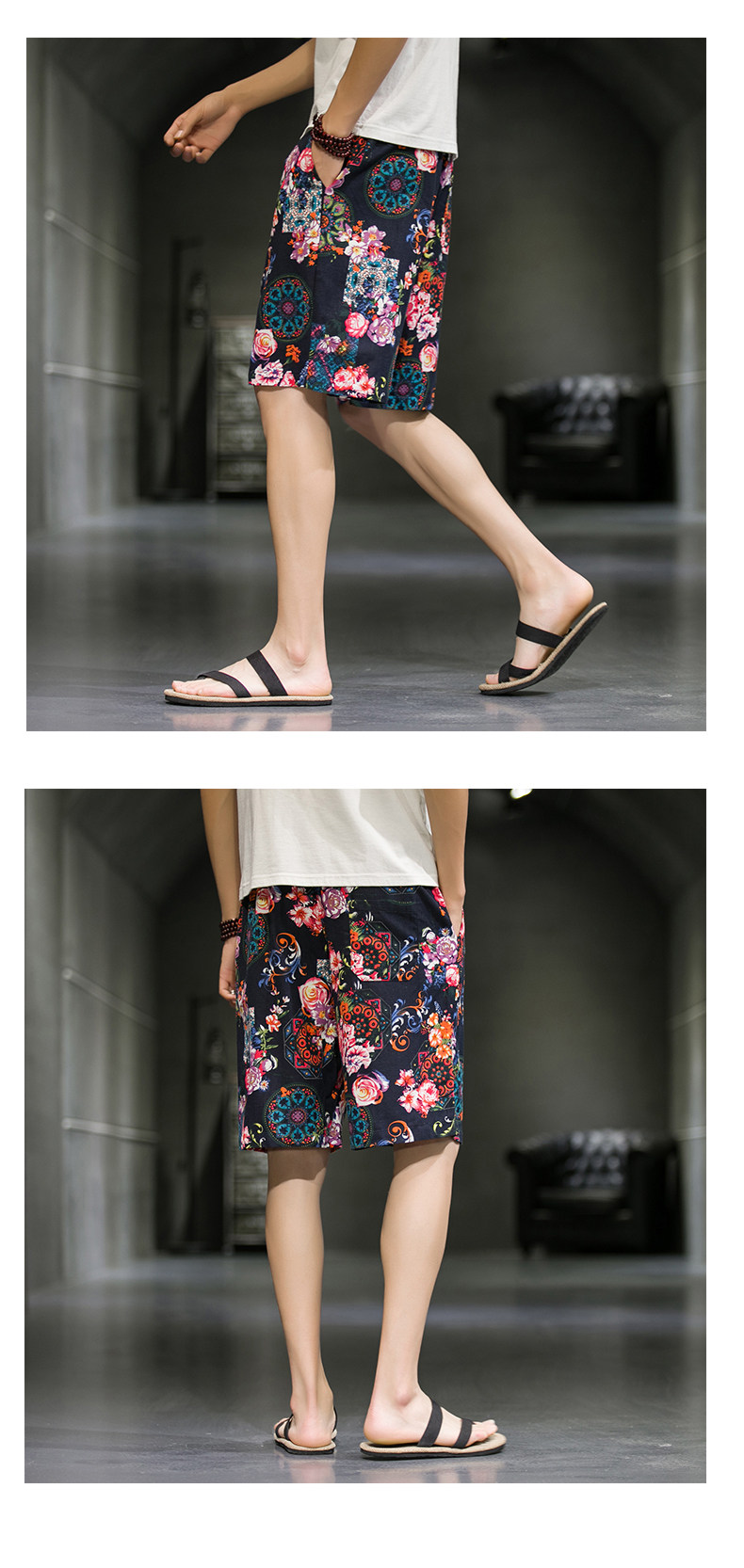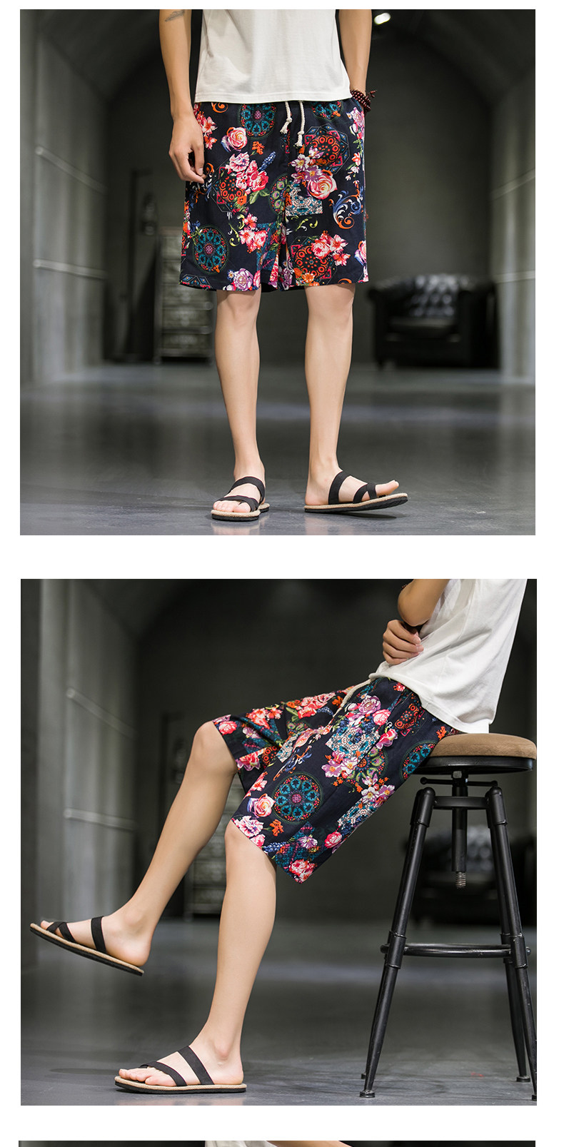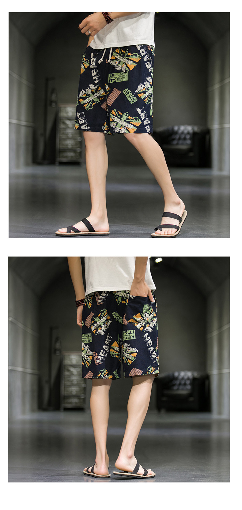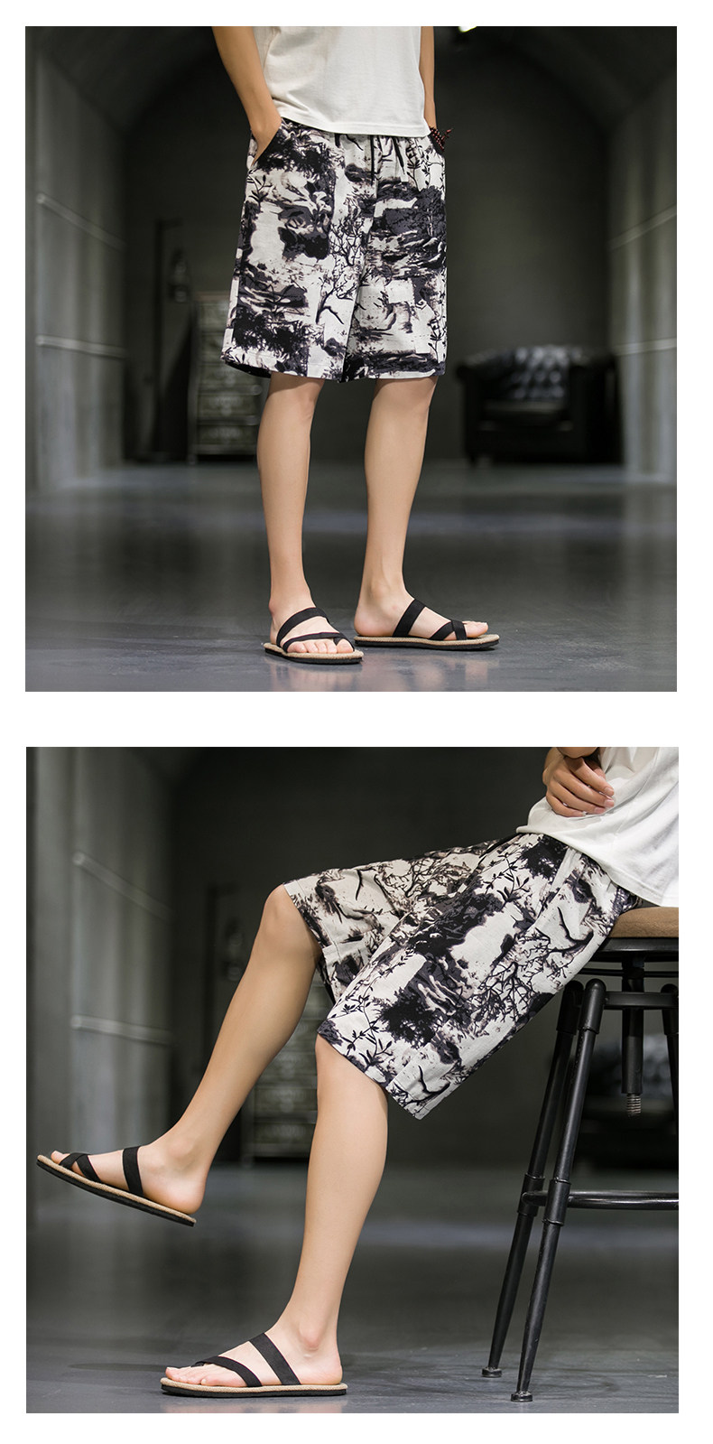 短裤男夏季潮牌五分花裤子外穿宽松速干沙滩裤男士休闲亚麻冰丝裤