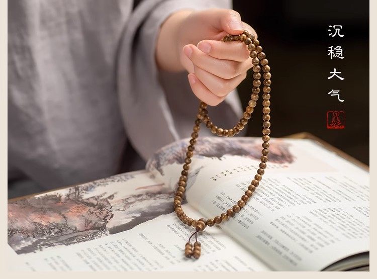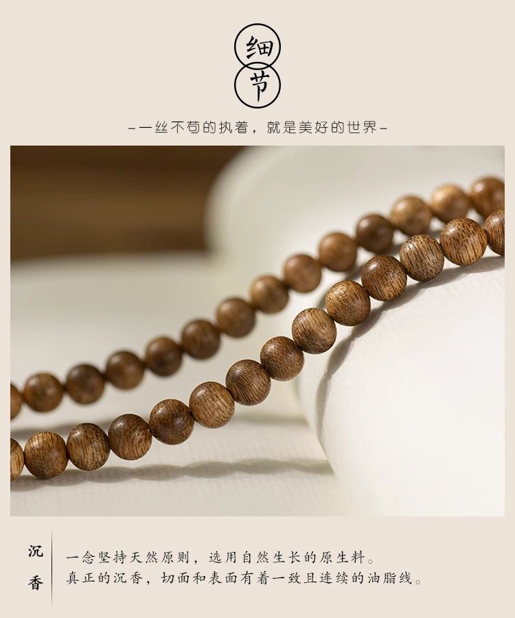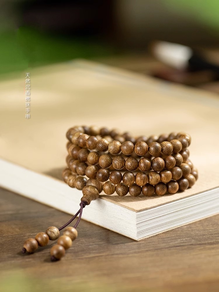 正宗天然沉香木手串108颗佛珠手链转运珠6/8mm男女情侣念项链纳福