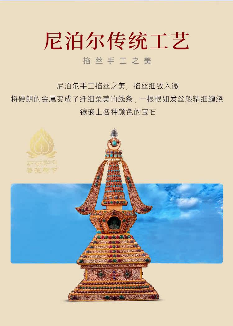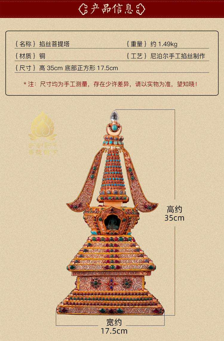 尼泊尔掐丝菩提塔特色手工艺品供具大全菩提宝塔超大号35cm