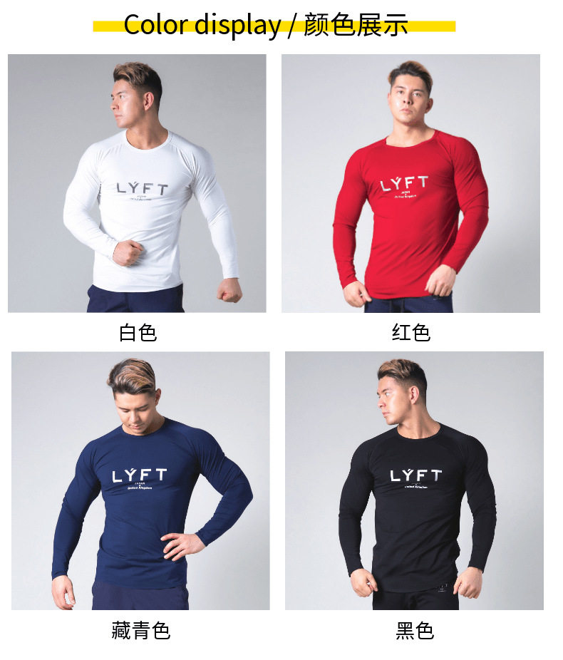 Lyft Autumn Round Neck Large Size Tight-Fitting Quick-Drying Shirt Men's Breathable Fitness Slim Long-Sleeved Running Morning Jogging Sportswear