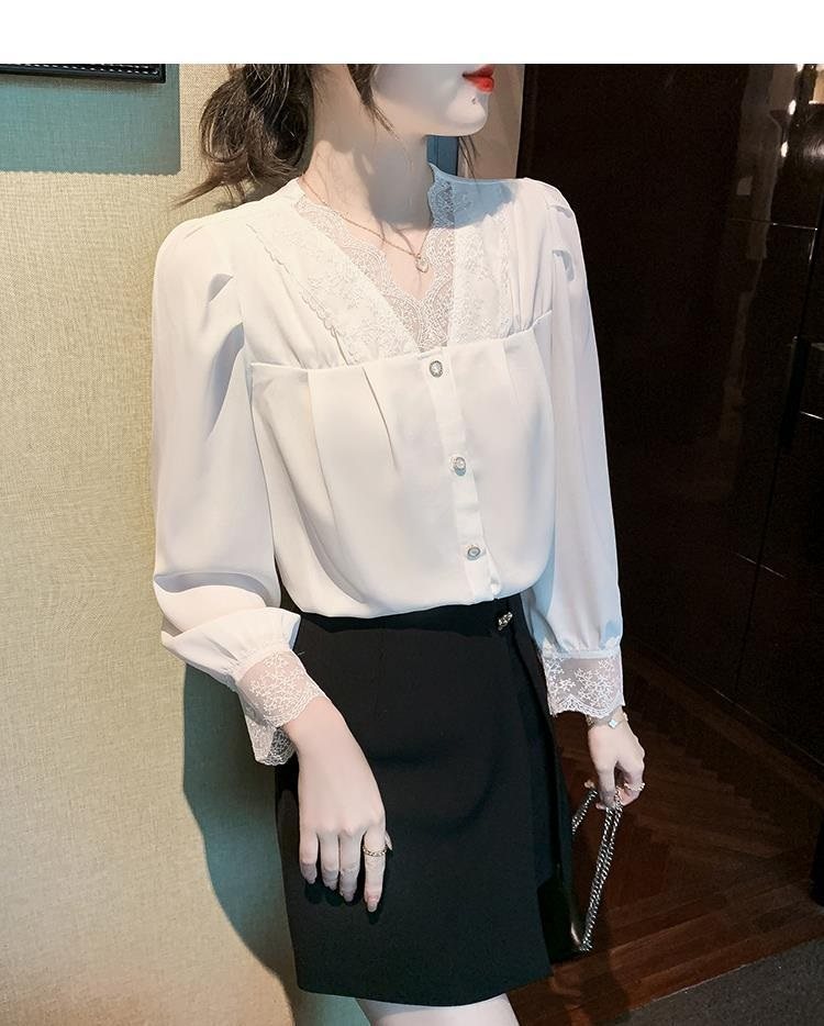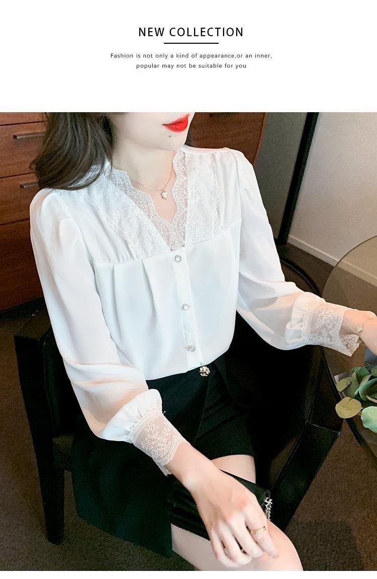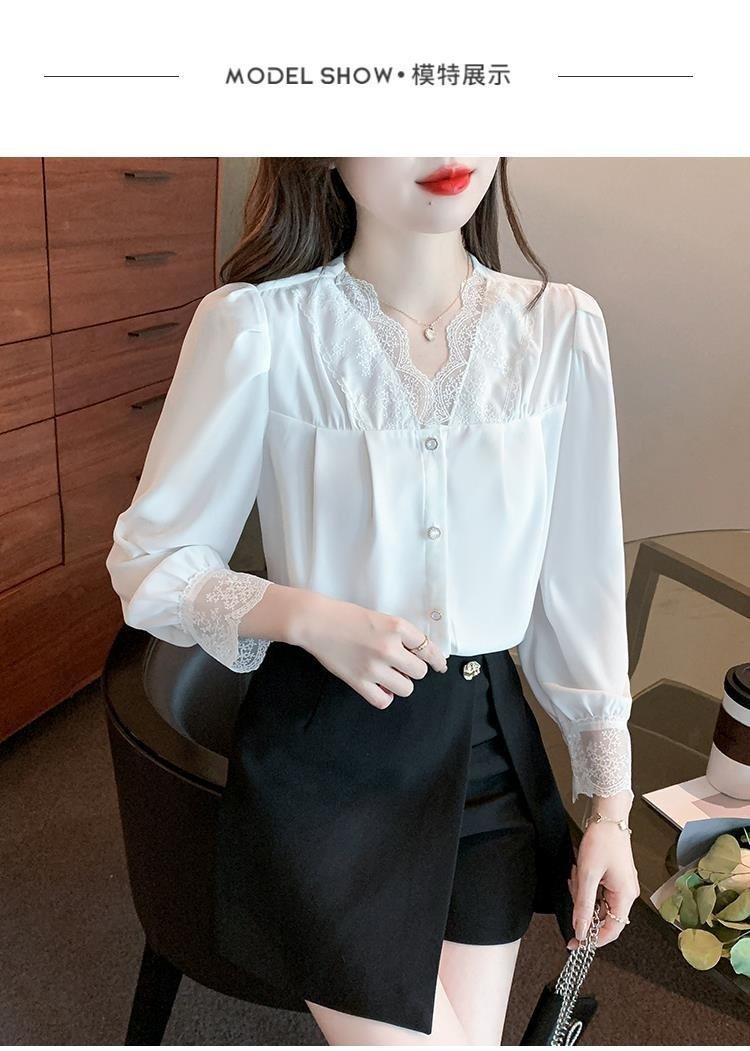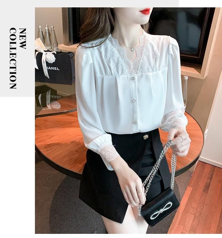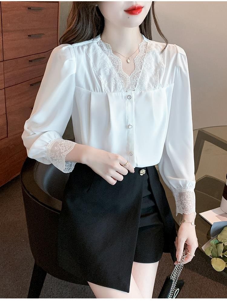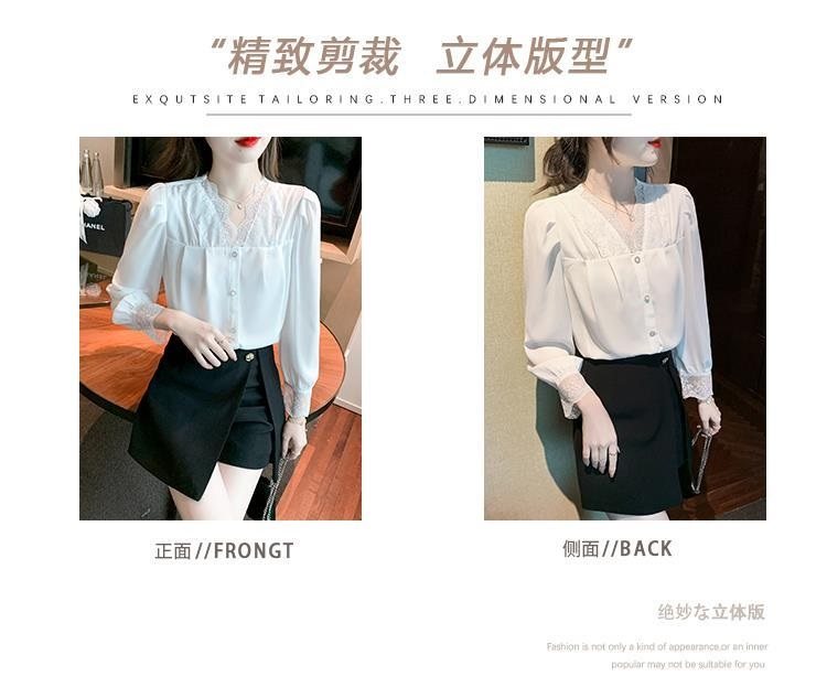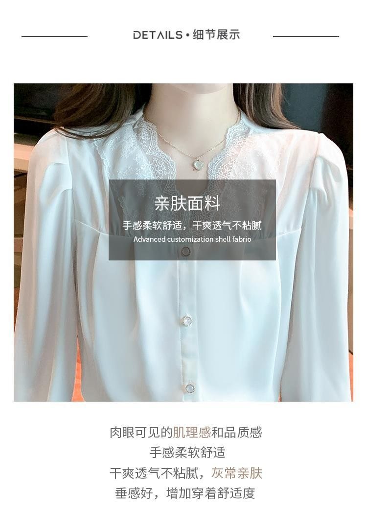 白色雪纺衬衫女设计感小众高档洋气内搭小衫蕾丝V领2025新款春秋