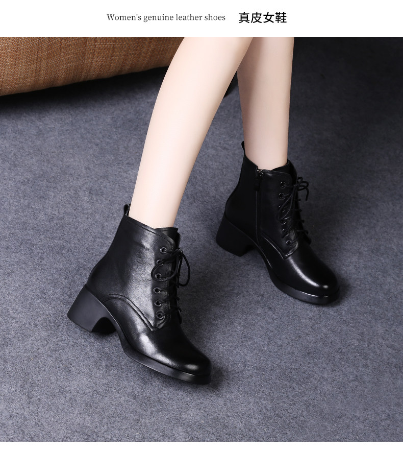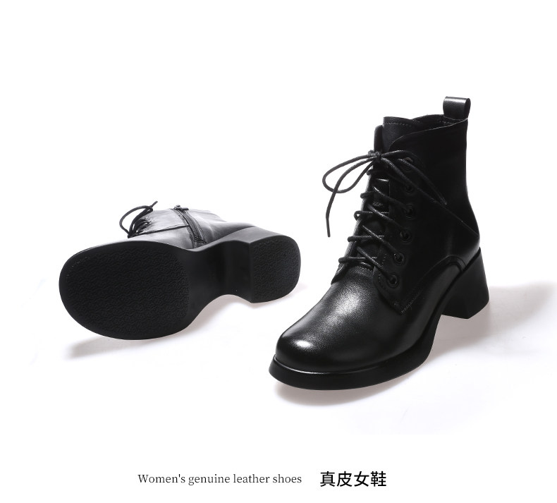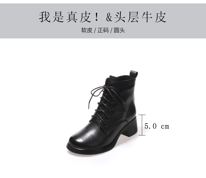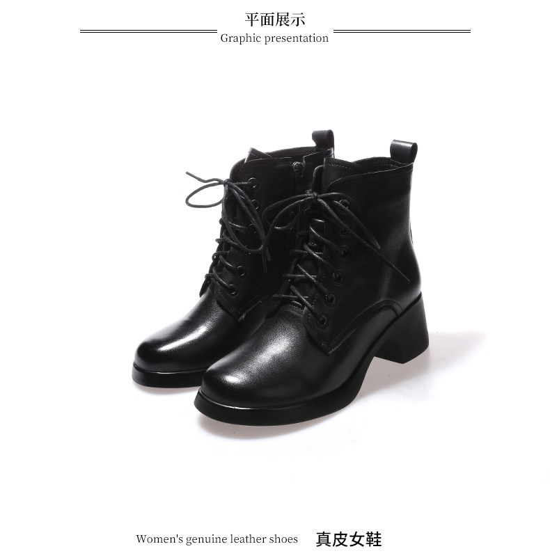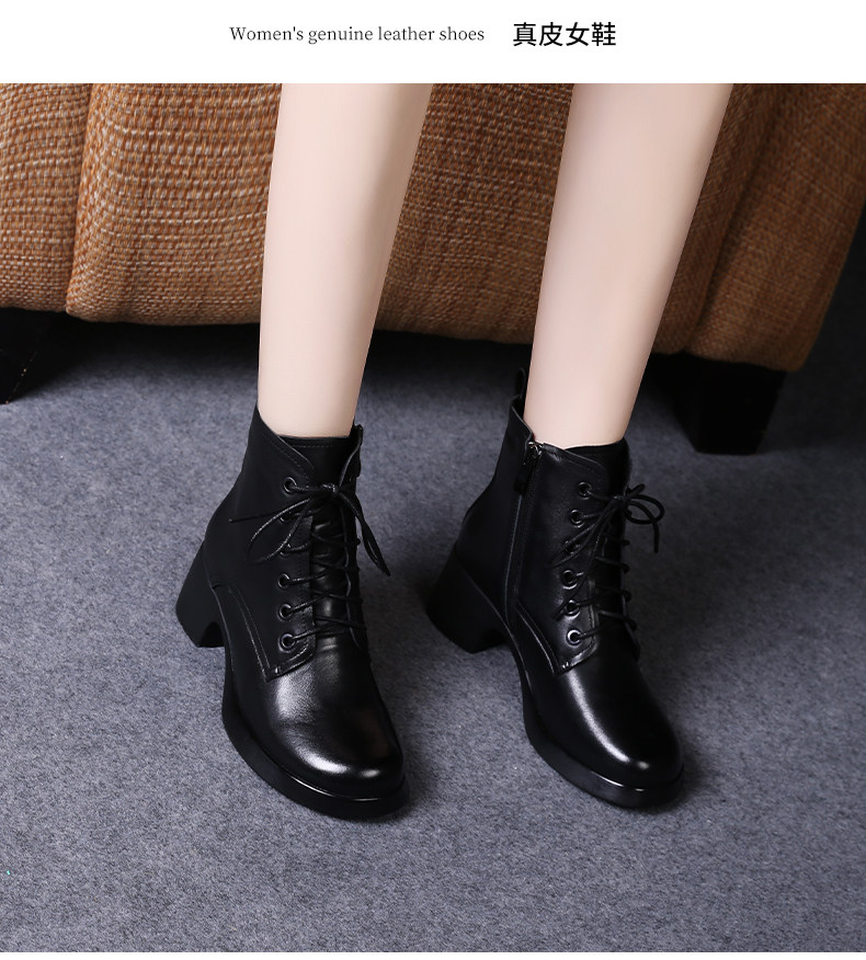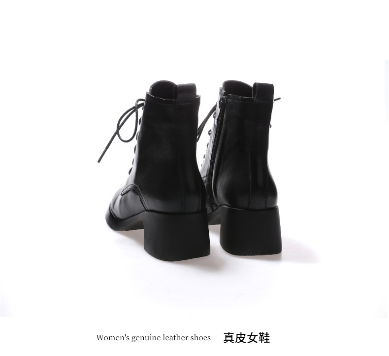 娇奇莎马丁靴女春秋英伦风单靴系带短靴女真皮女鞋秋冬中跟皮鞋