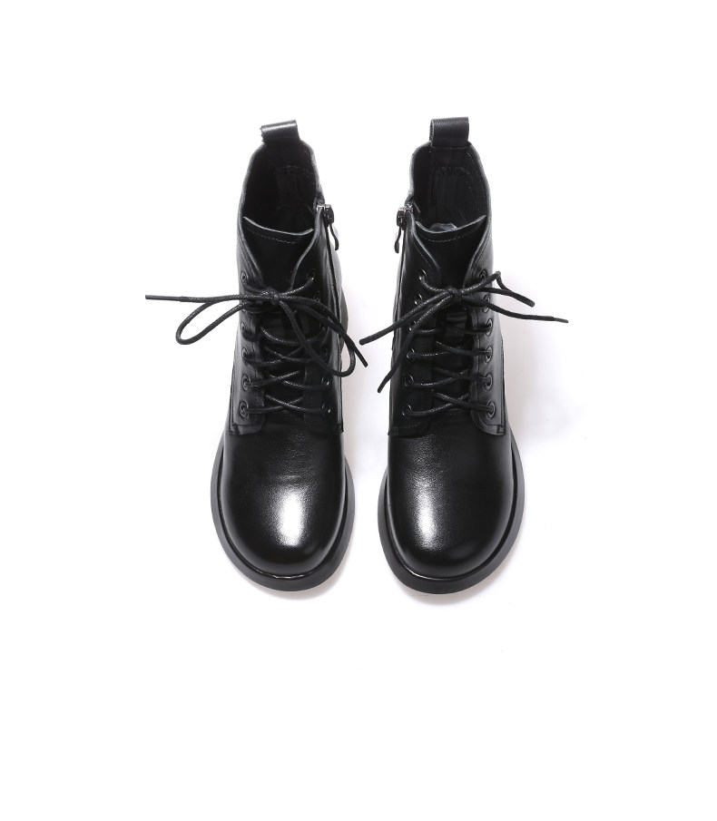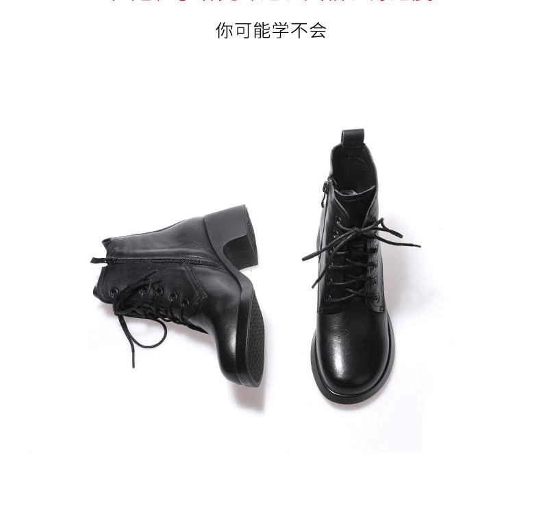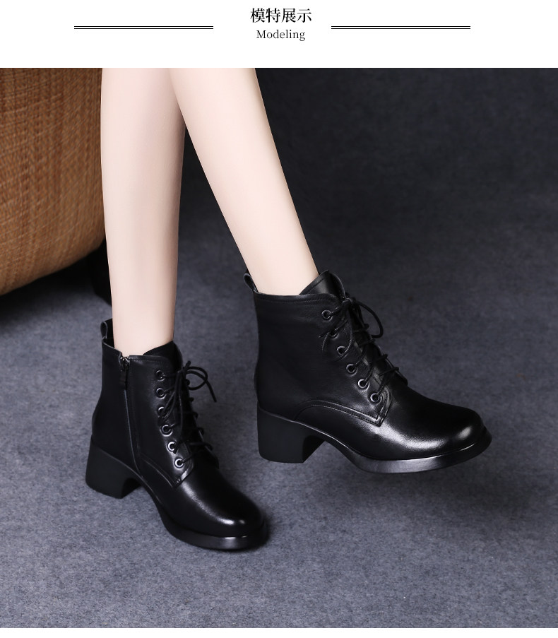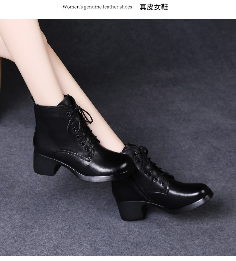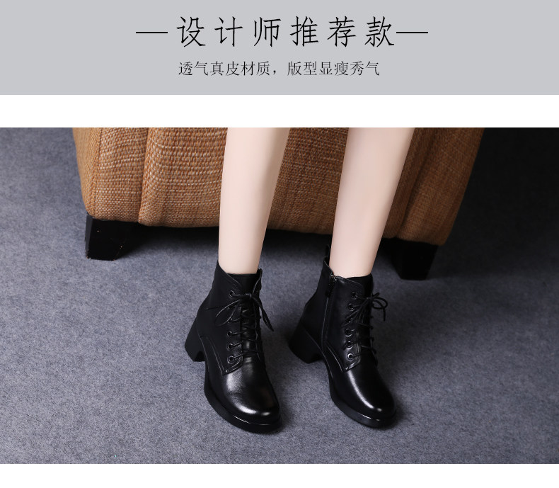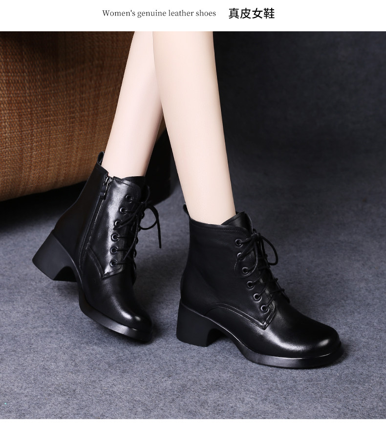 娇奇莎马丁靴女春秋英伦风单靴系带短靴女真皮女鞋秋冬中跟皮鞋