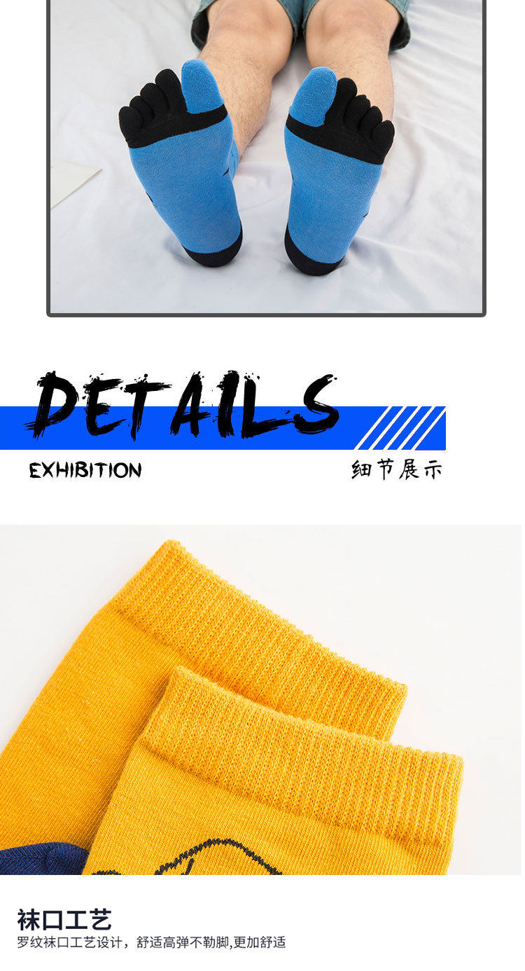 辽源袜业四季五指袜纯棉防脚气分趾卡通动漫中筒袜男士运动圣诞袜