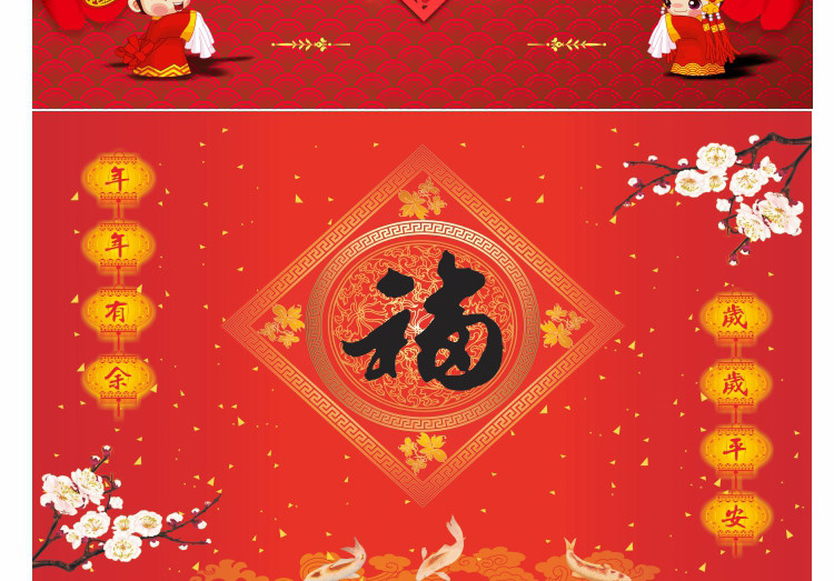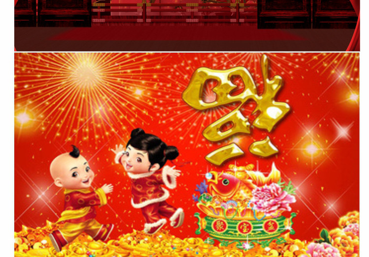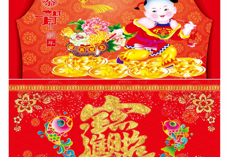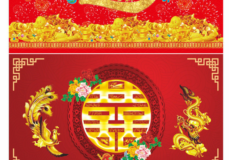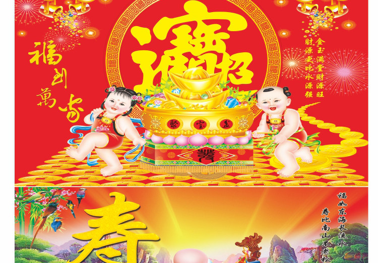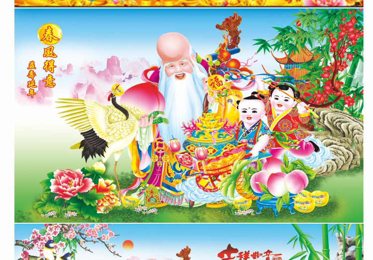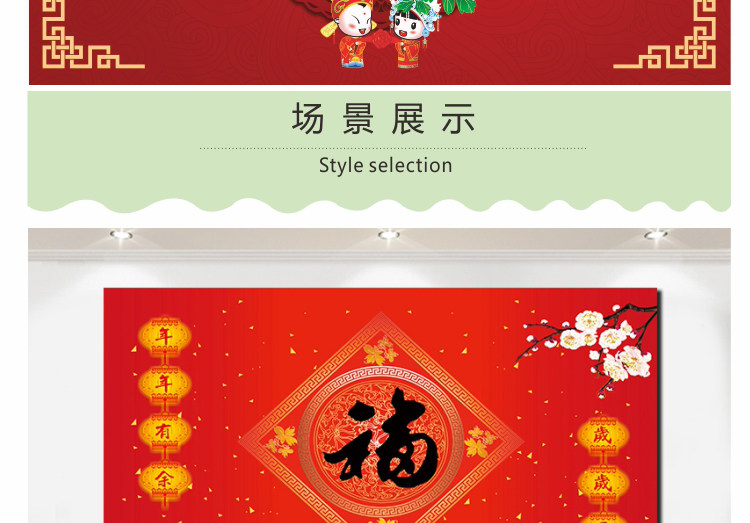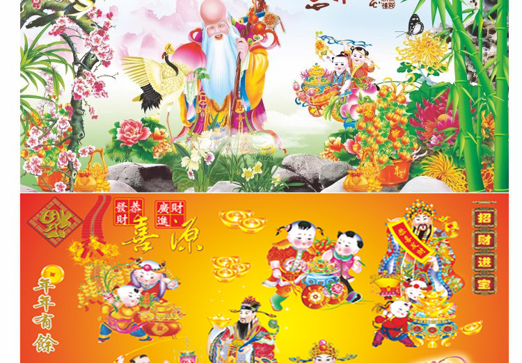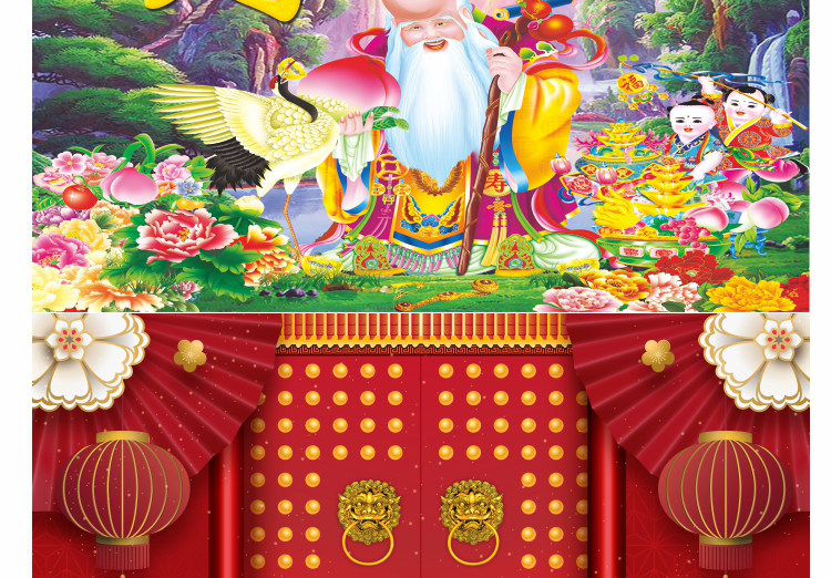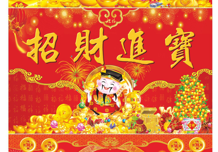 壁画自粘墙纸新年春节装饰财神福字墙画过年年画喜庆背景贴画