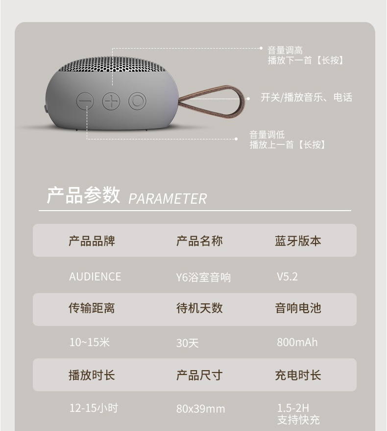 Беспроводная Bluetooth-колонка Oudun Y6, магнитная, водонепроницаемая, миниатюрная, портативная, для улицы, с сабвуфером, высокое качество звука