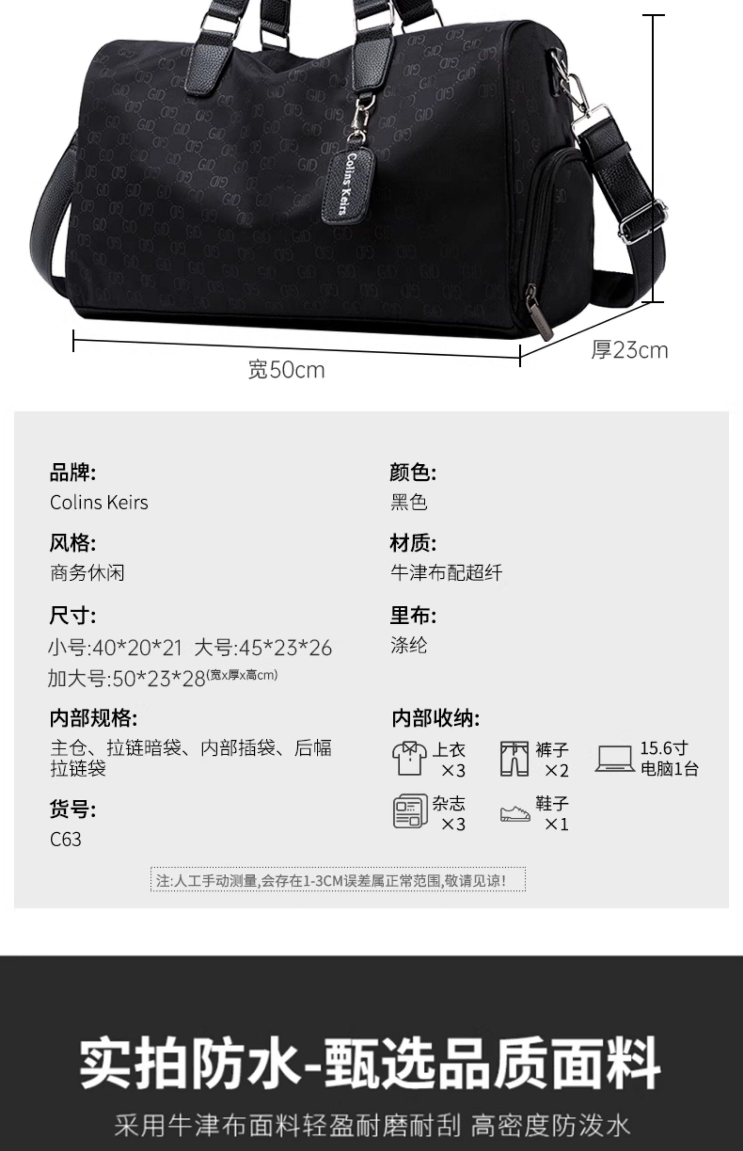 Colins Keirs旅行包男手提包干湿分离运动健身包短途轻便行李袋女