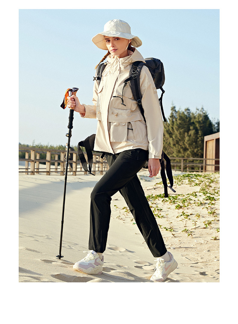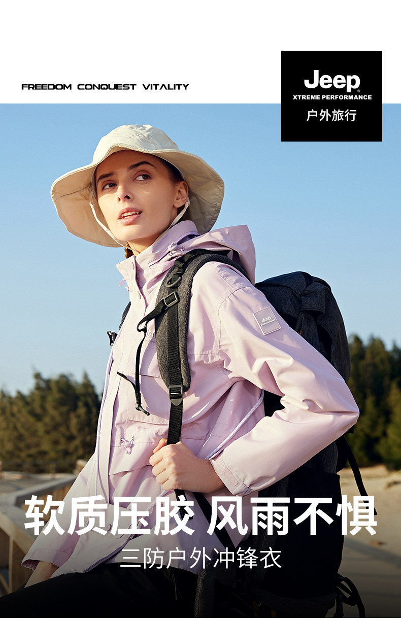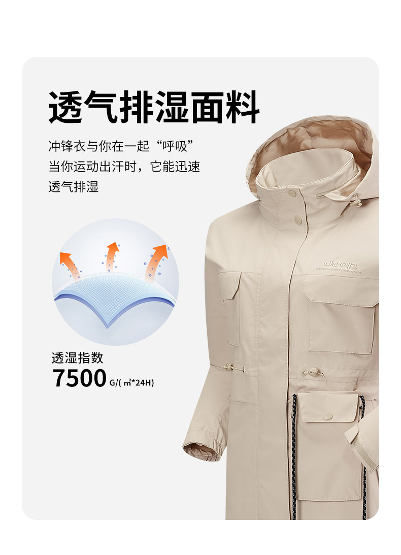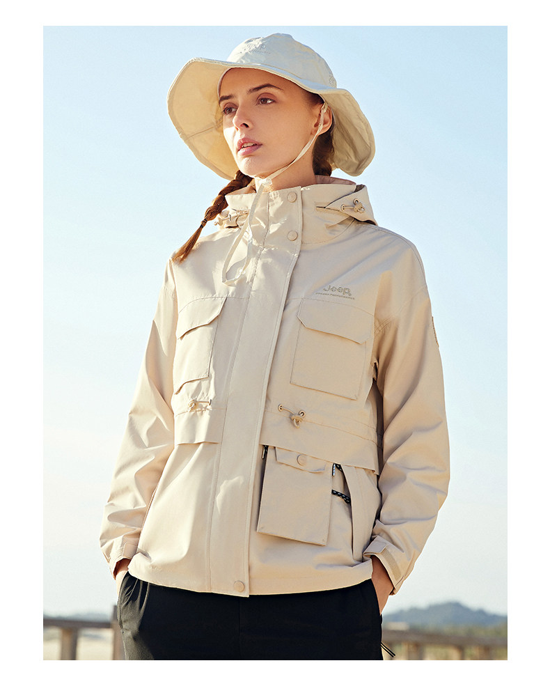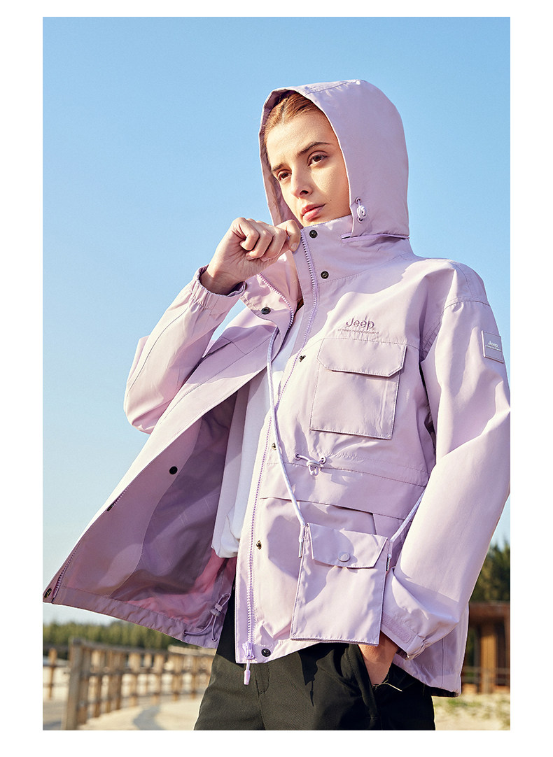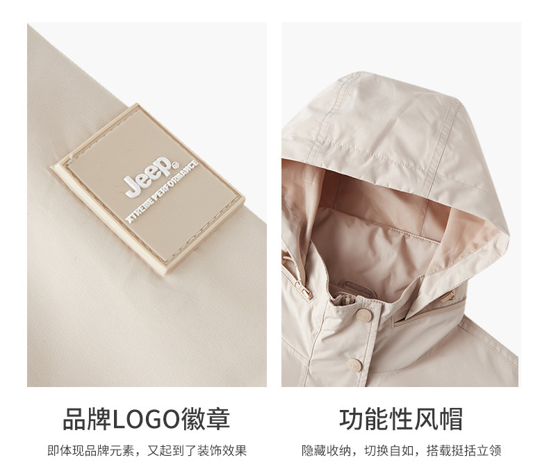 Jeep吉普户外冲锋衣女春秋风衣运动休闲防风防水透气连帽夹克外套