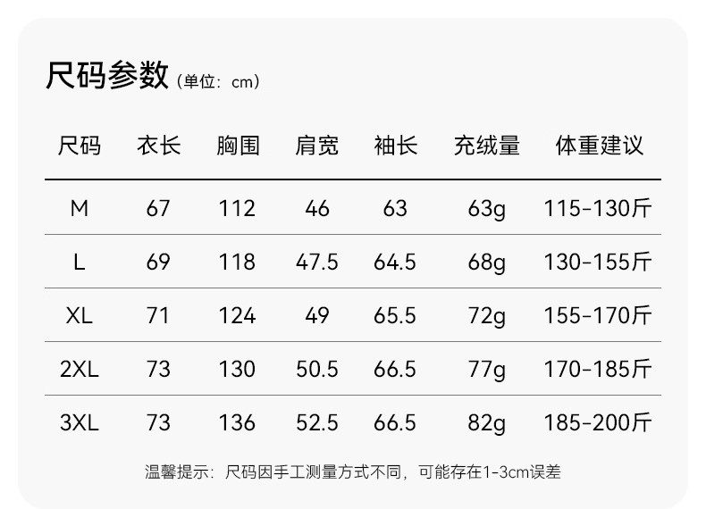 China (cm) 165 / 88-90 170 / 96-98 175 / 108-110 180 / 118-122 185 / 126-130