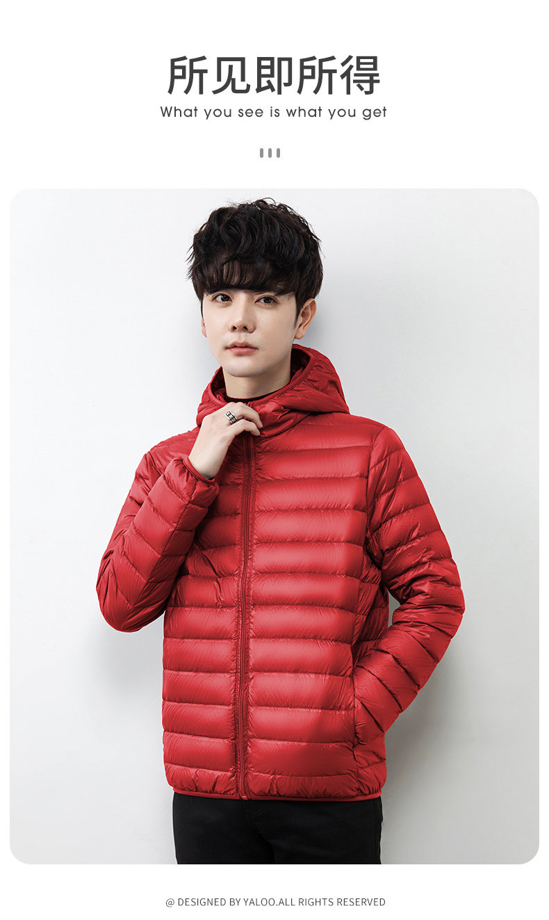雅鹿2025新款轻薄羽绒服男短款冬季男士连帽轻便薄款鸭绒保暖外套