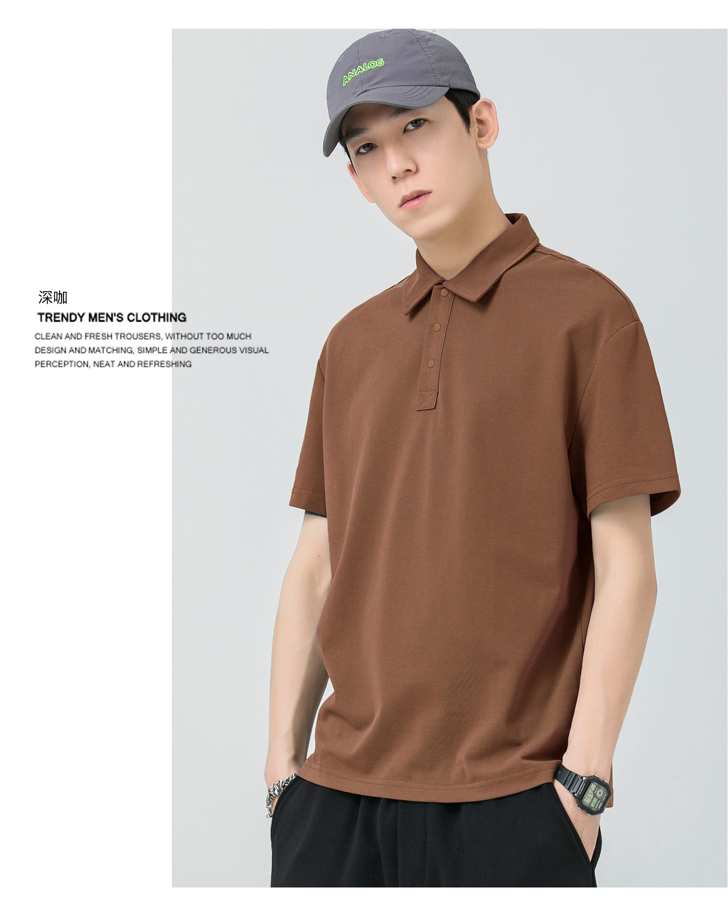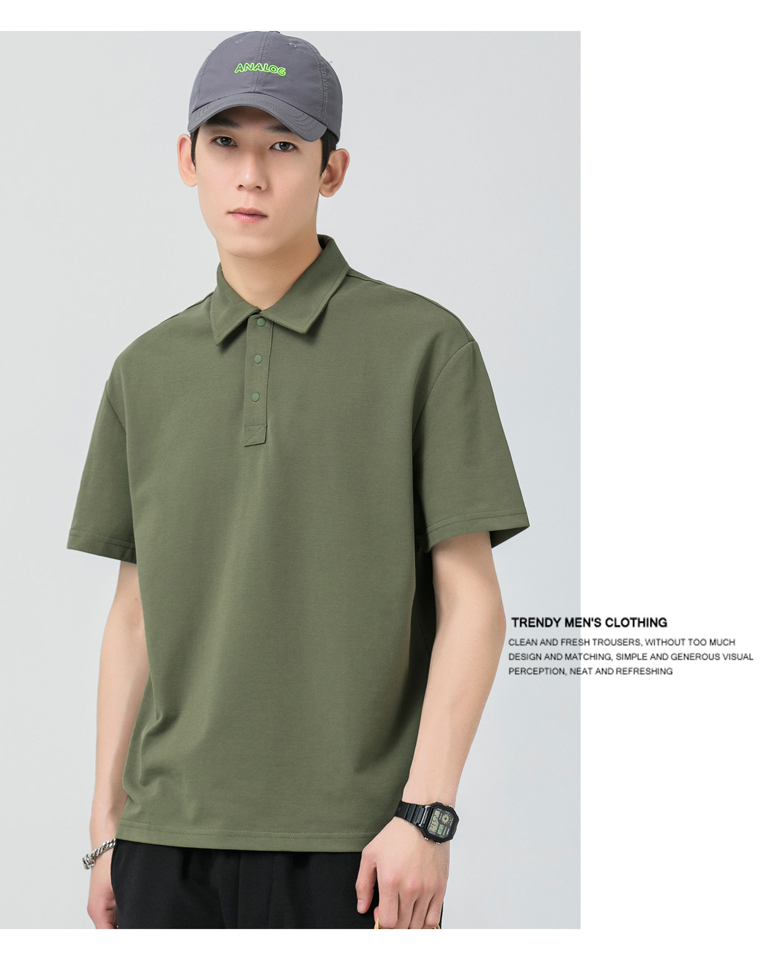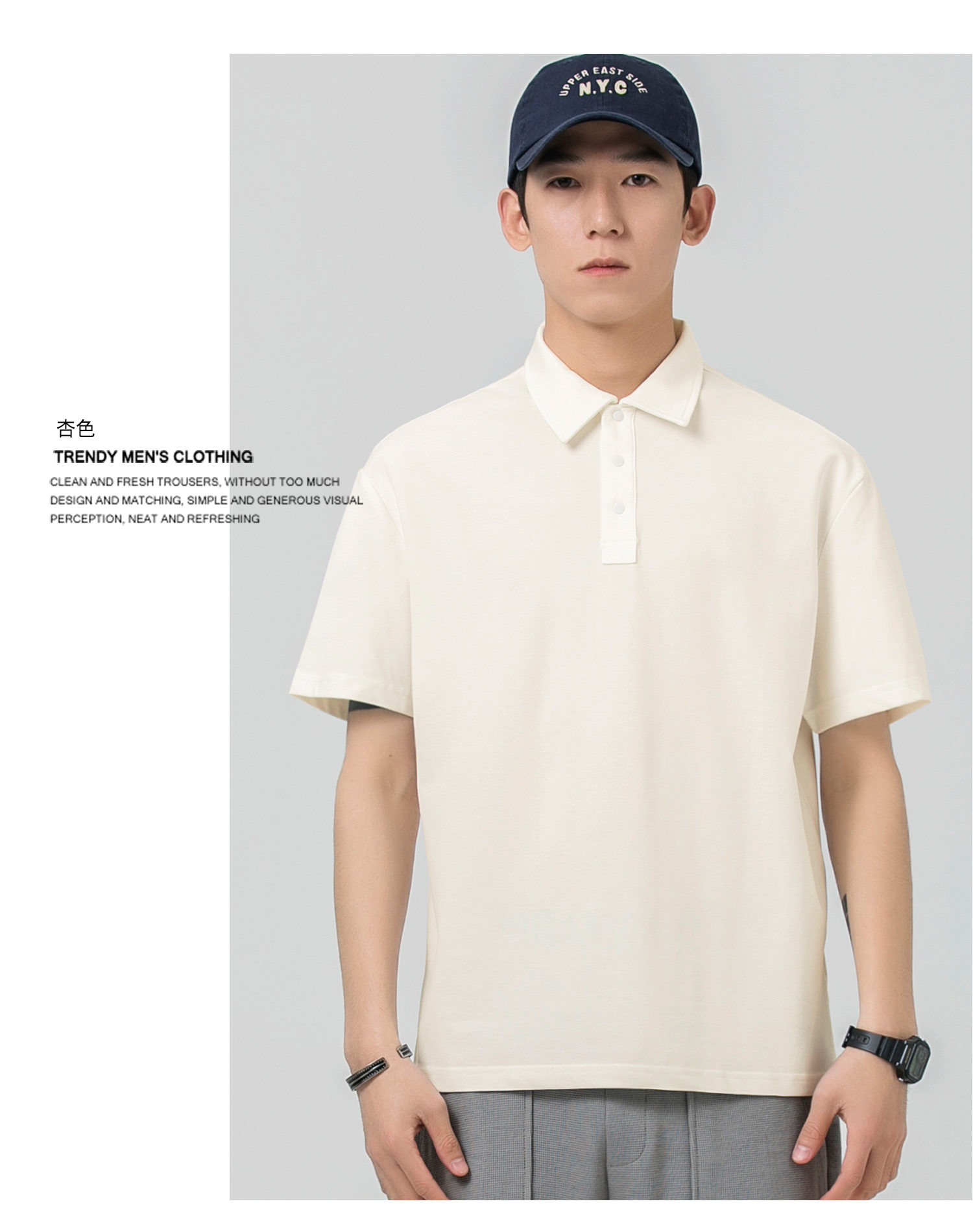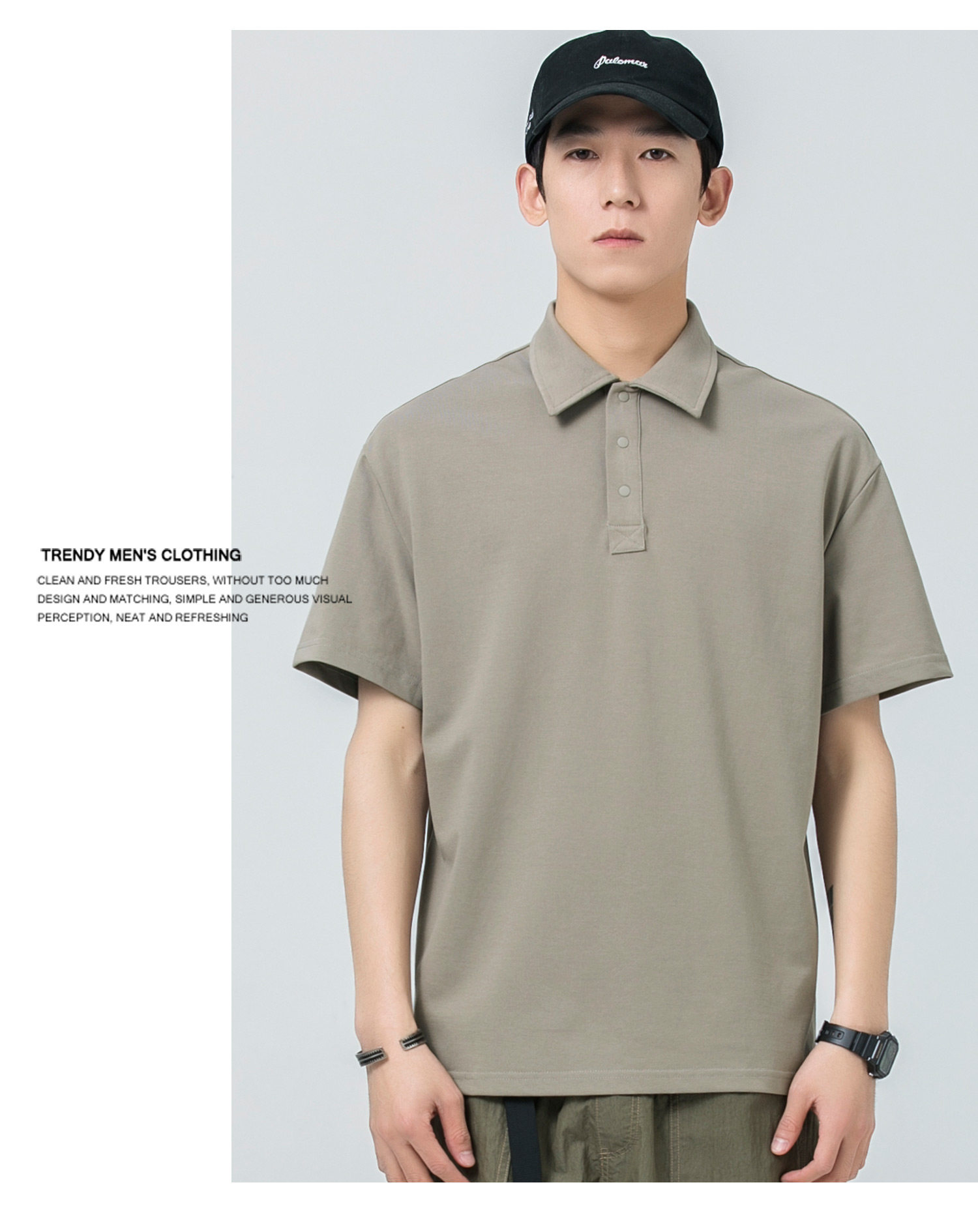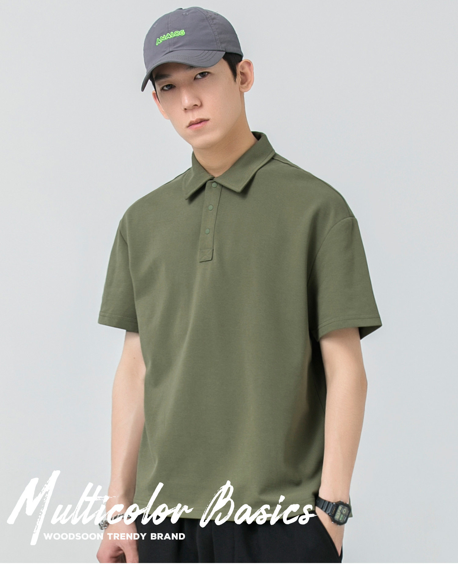 WOODSOON Herren-Poloshirt, Frühlings- und Sommertrend, einfarbig, schweres Revers-Oberteil, lässiges Kurzarm-T-Shirt für Männer
