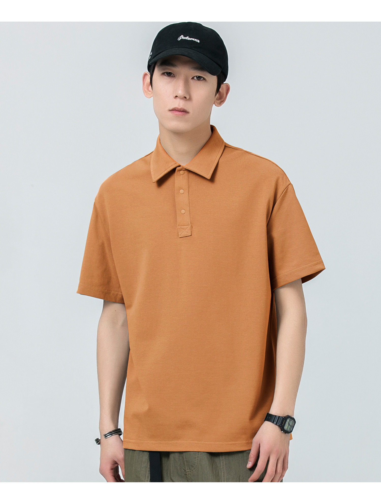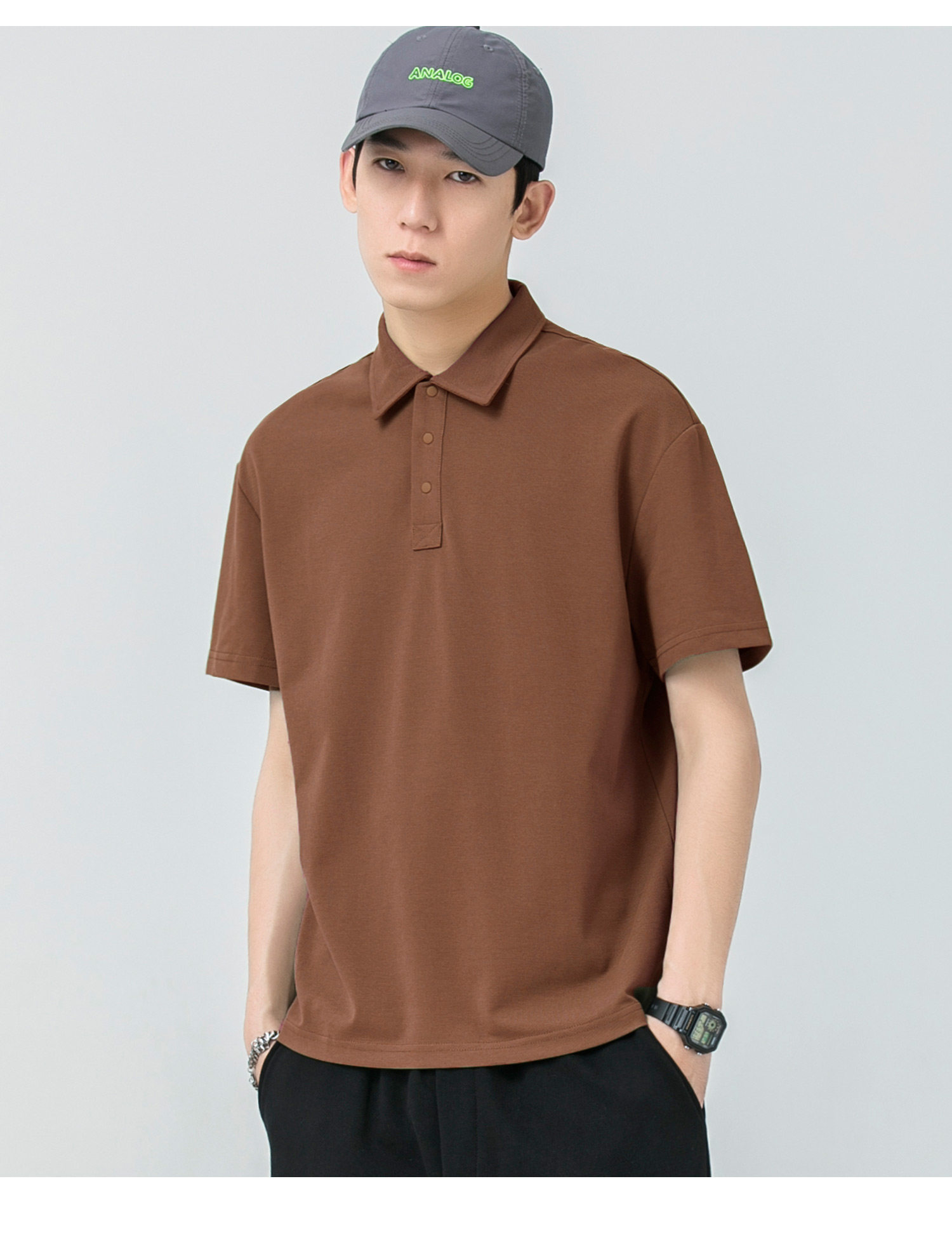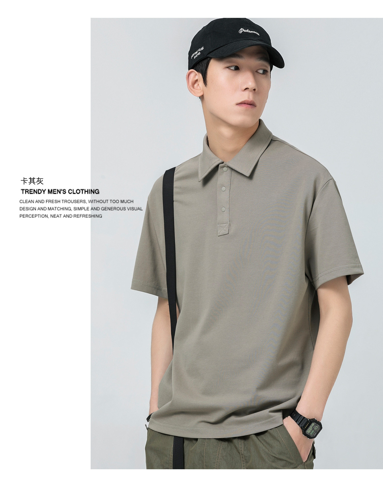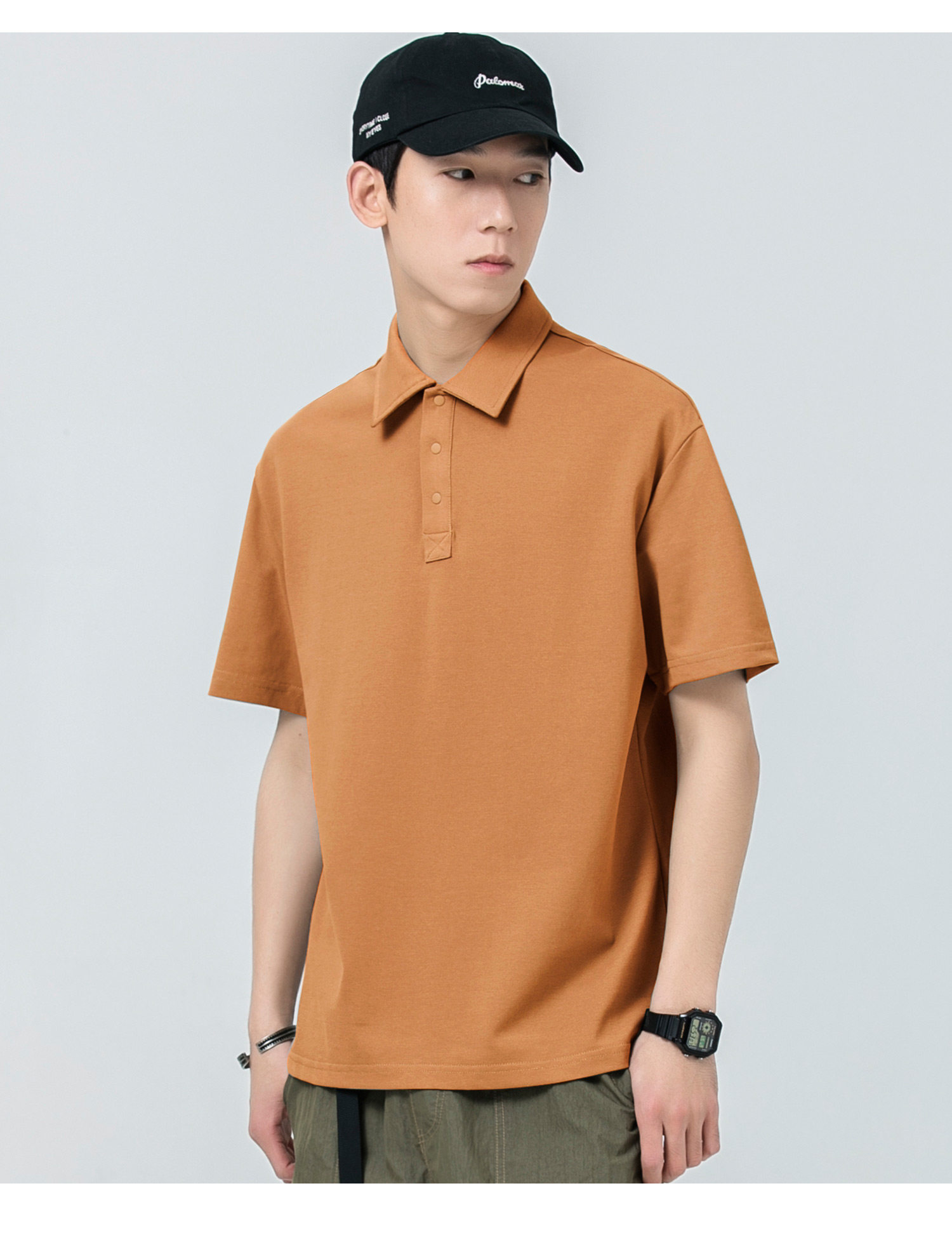 WOODSOON Herren-Poloshirt, Frühlings- und Sommertrend, einfarbig, schweres Revers-Oberteil, lässiges Kurzarm-T-Shirt für Männer