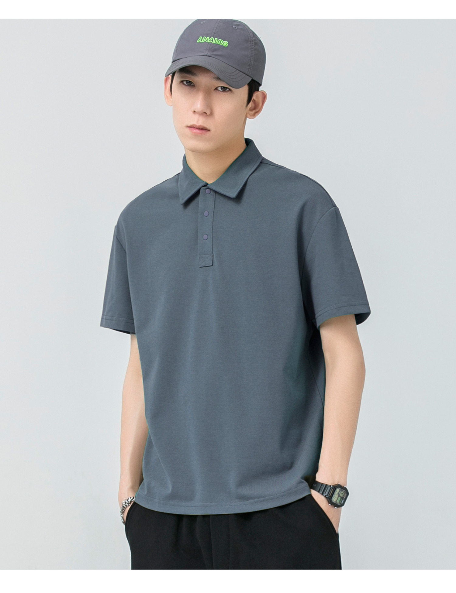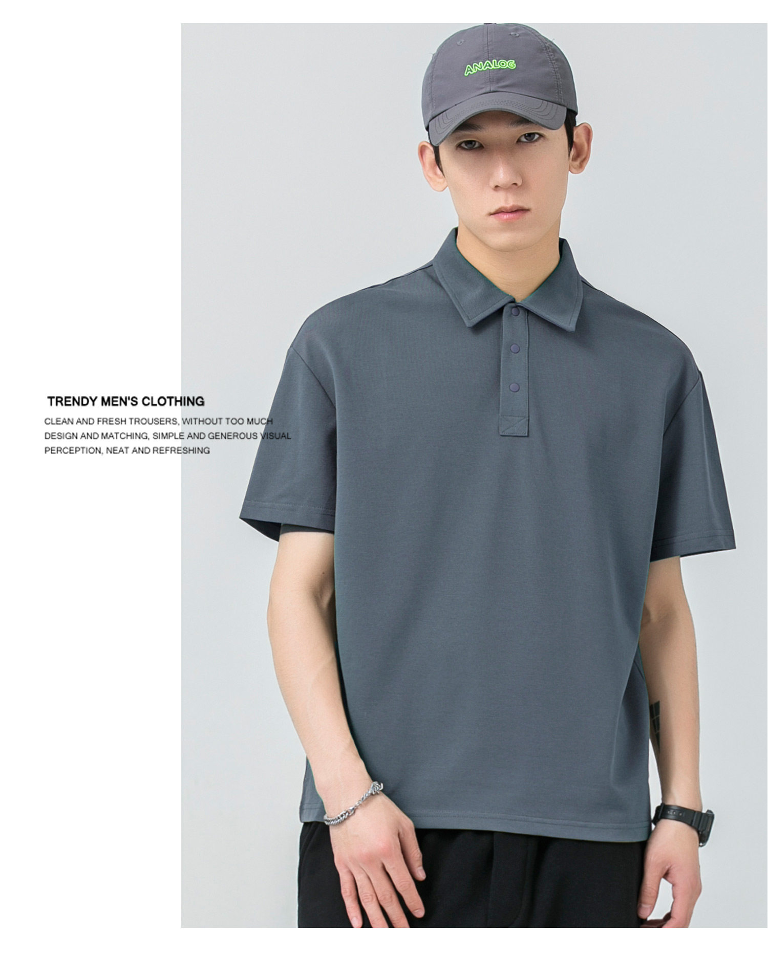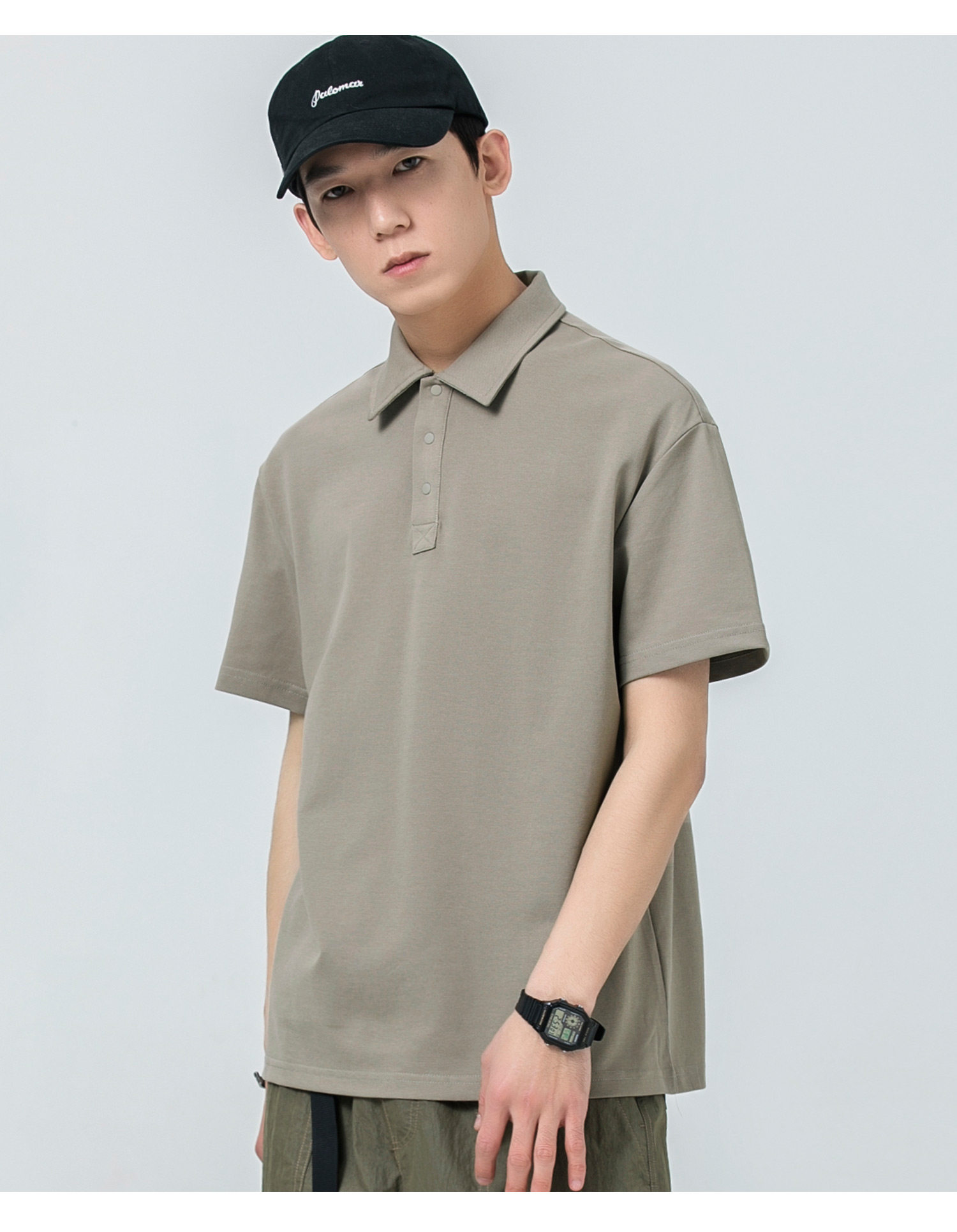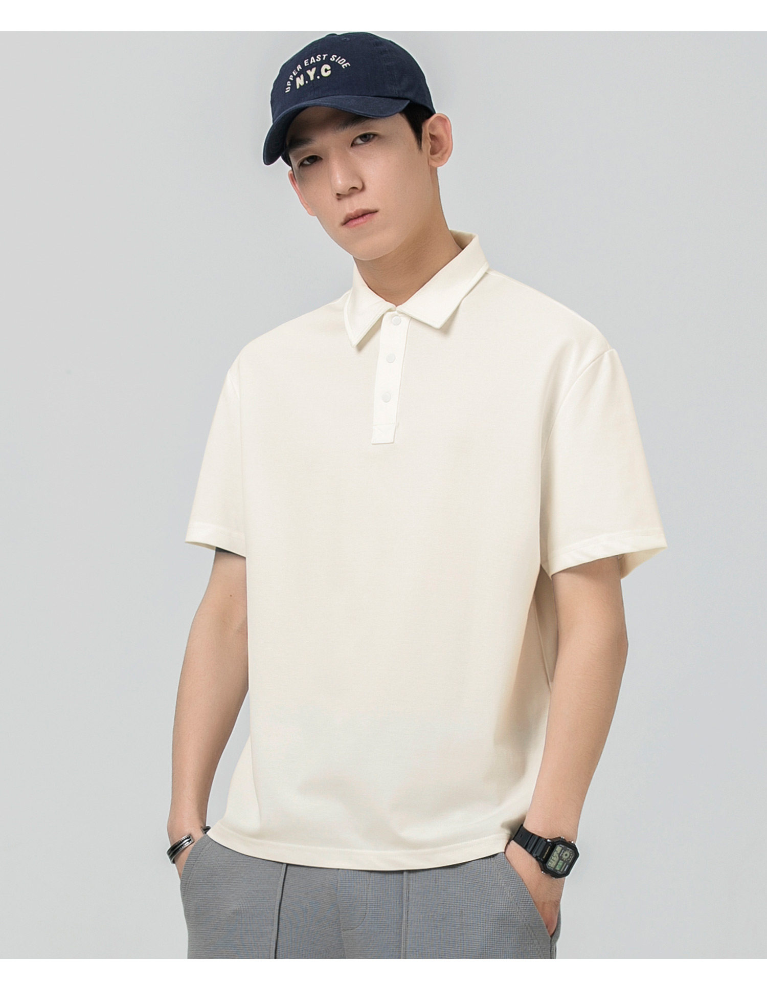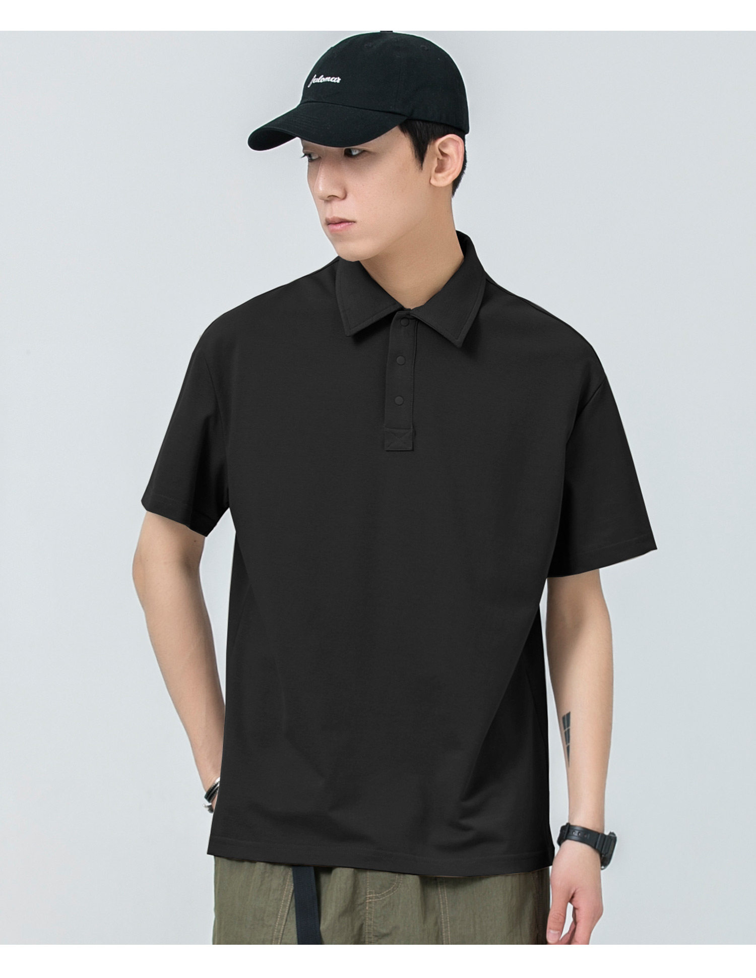 WOODSOON Herren-Poloshirt, Frühlings- und Sommertrend, einfarbig, schweres Revers-Oberteil, lässiges Kurzarm-T-Shirt für Männer