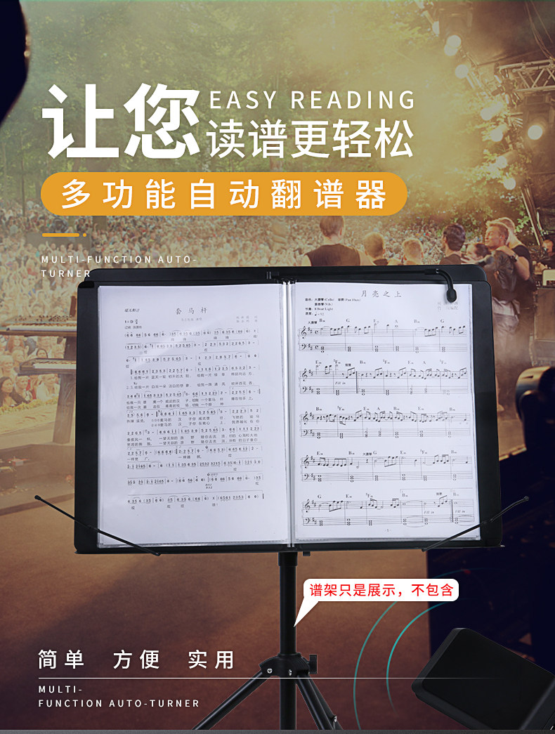 自动翻谱器 乐谱架吉他谱架无线翻页 琴曲谱子演出乐器通用配件