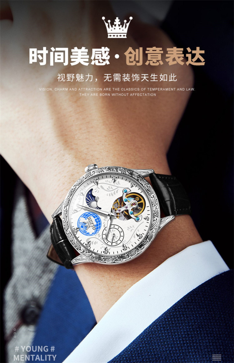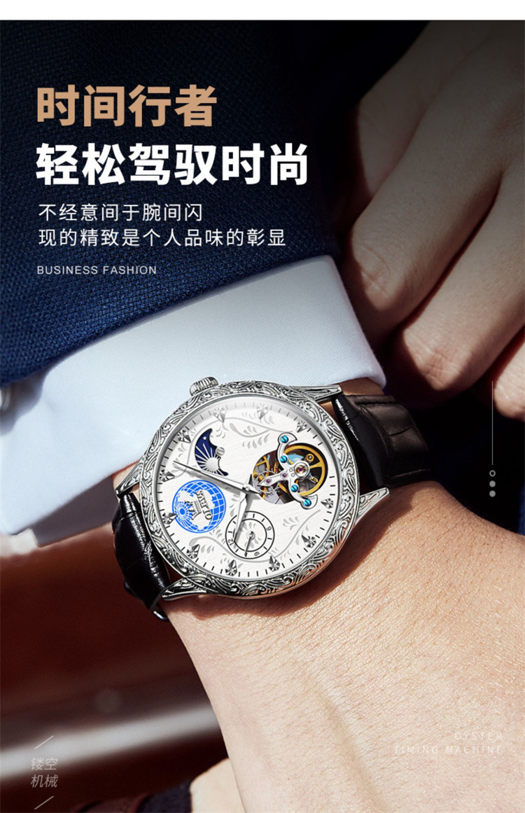 Часы с сертификатом швейцарской сертификации, мужские механические часы с кожаным ремешком, повседневные, светящиеся, глубоко водонепроницаемые, многофункциональные, инкрустированные бриллиантами часы
