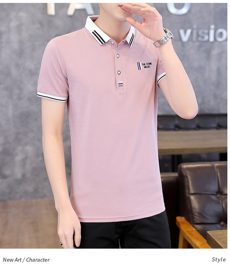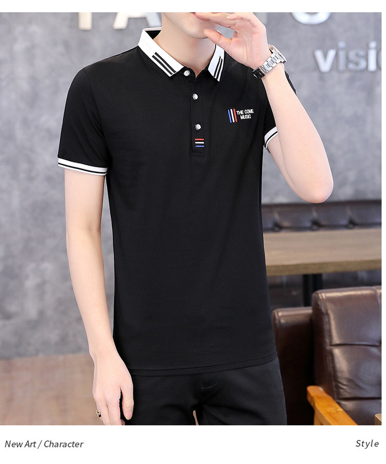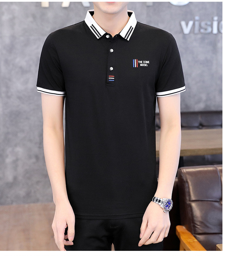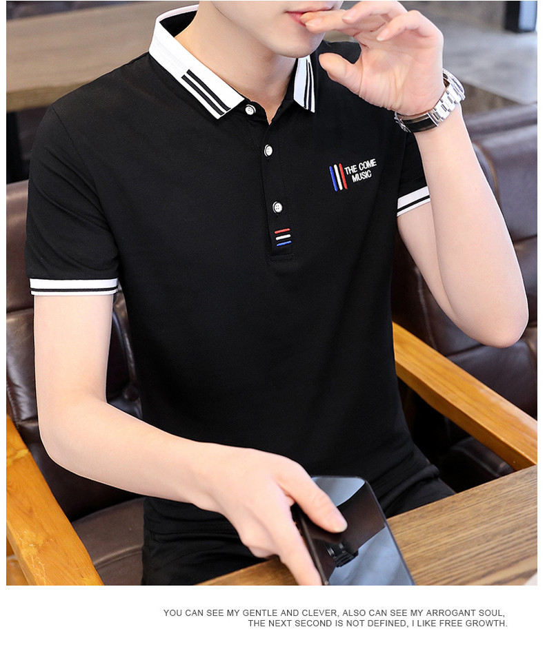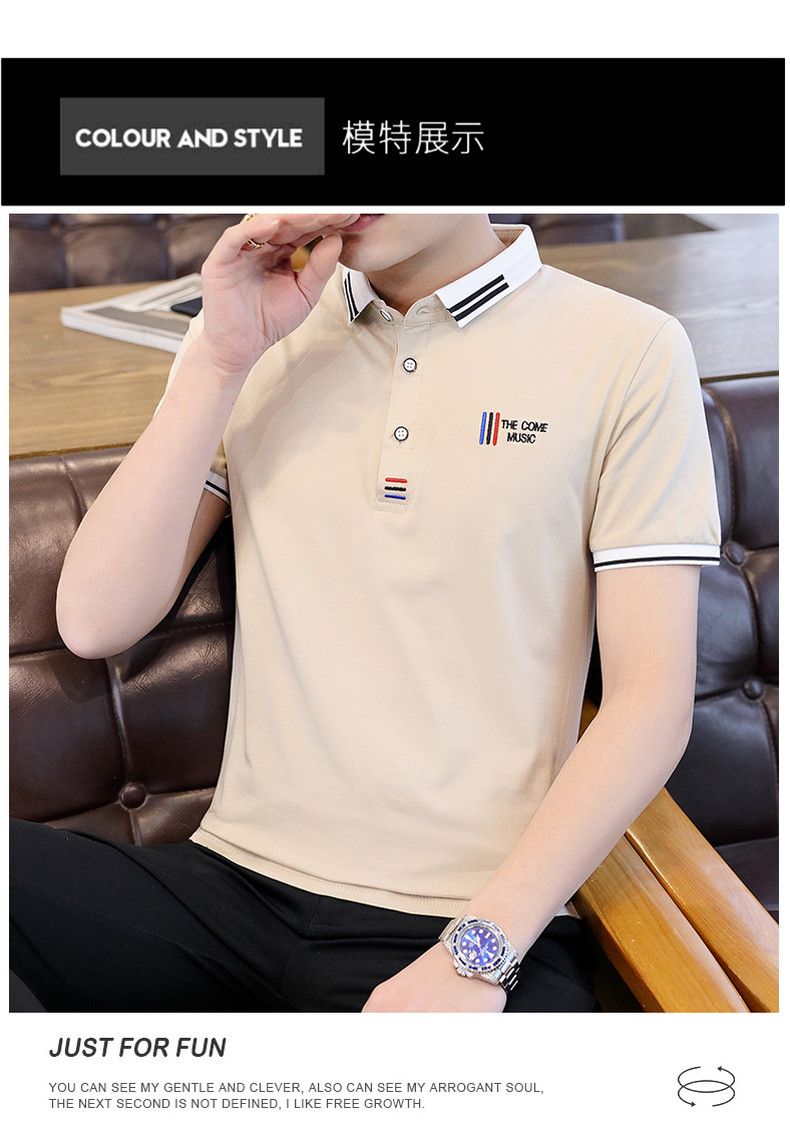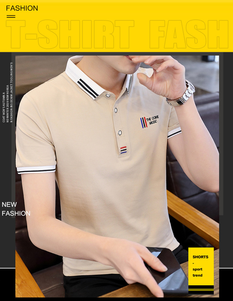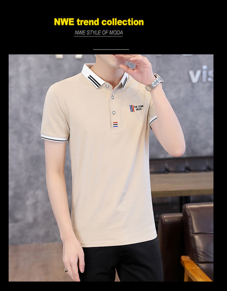 Shirt collar men's short-sleeved T-shirt trendy brand lapel POLO shirt men's neckline T-shirt summer trendy ins clothes