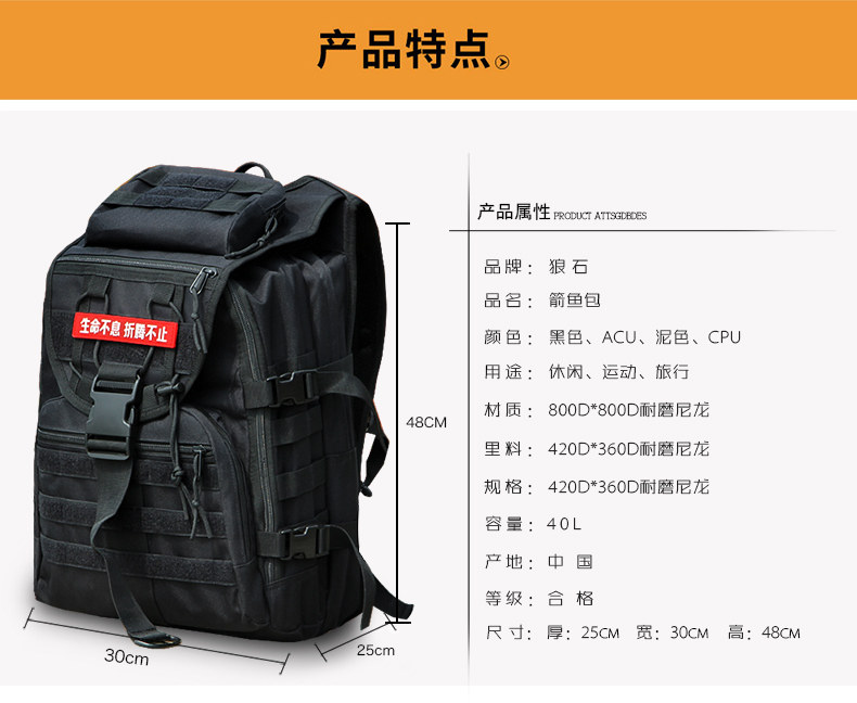 颜色分类 ACU迷彩/40升,CP迷彩/40升,黑色/40升,泥色/40升,绿迷彩/40升,暗夜迷彩/40升,三沙迷彩/40升,军绿/40升,大花迷彩/40升,ACU迷彩/45升,黑色/45升,泥色/45升,CP迷彩/45升,ACU迷彩/50升,CP迷彩/50升,泥色/50升,黑色/50升