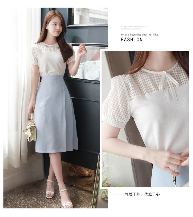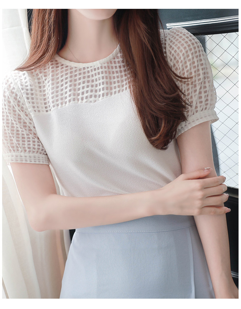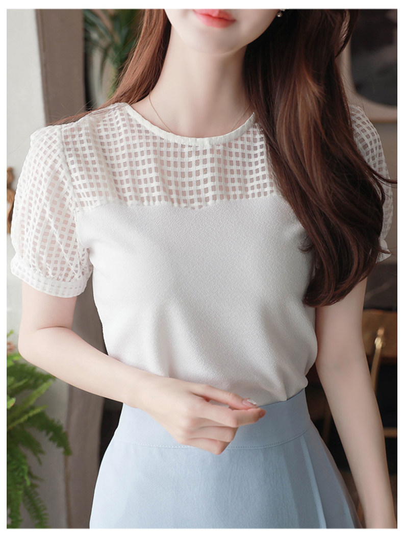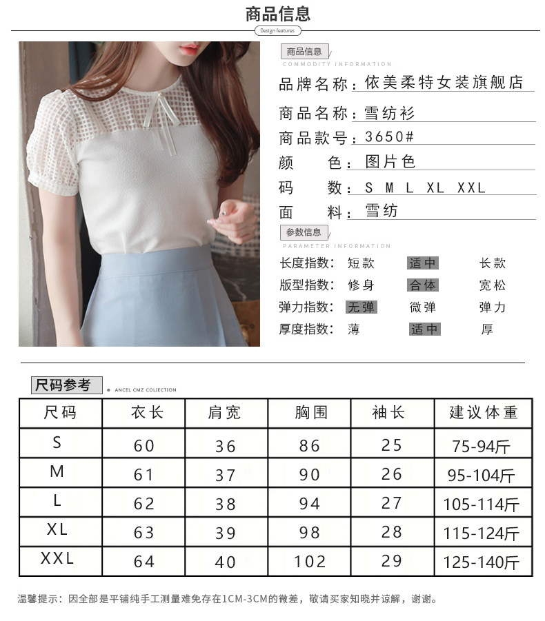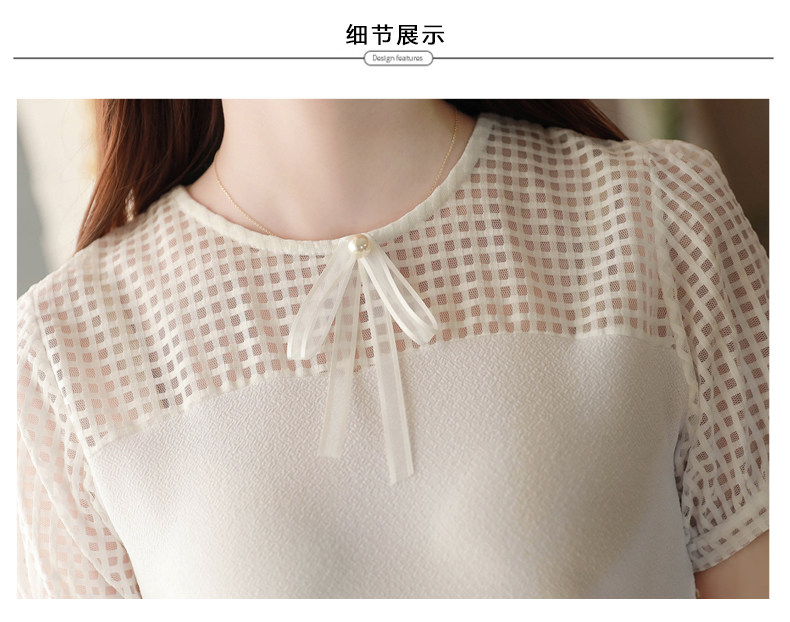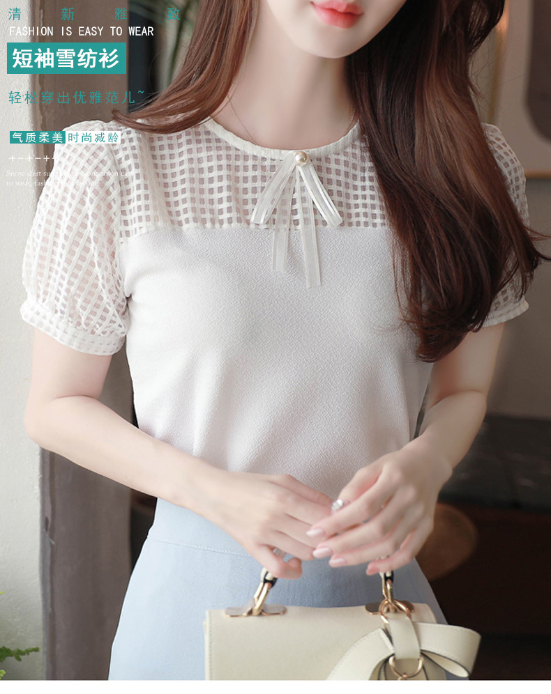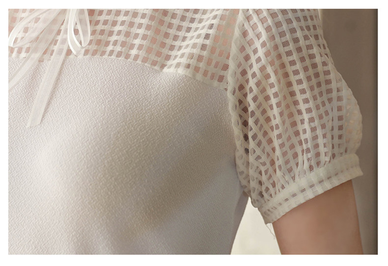 2025 новая летняя шифоновая рубашка с короткими рукавами, женственная кружевная строчка с бантом, рубашка в западном стиле, тонкая и тонкая