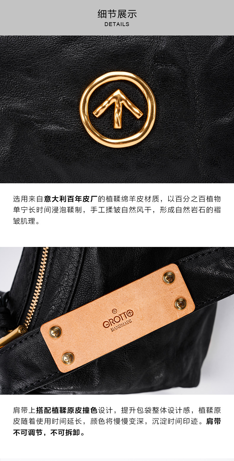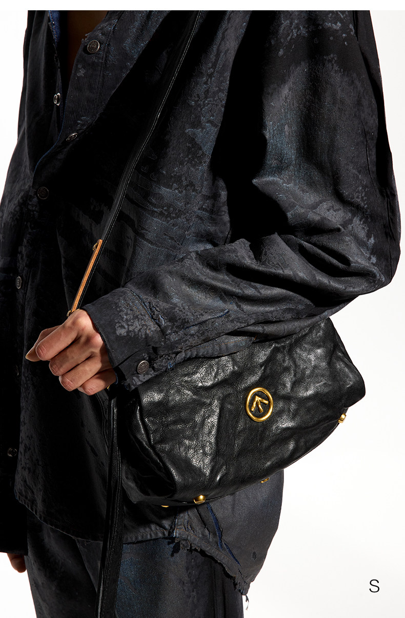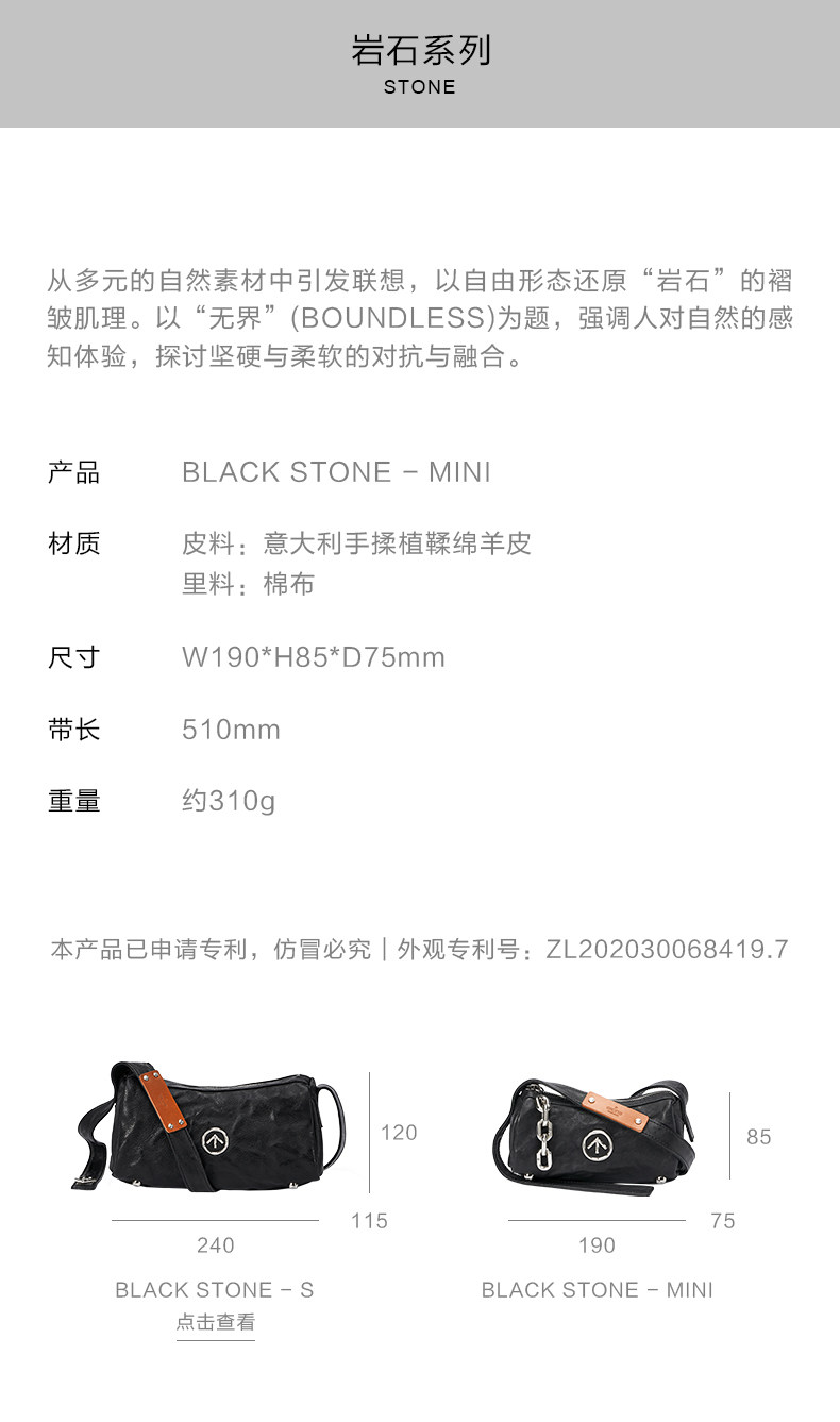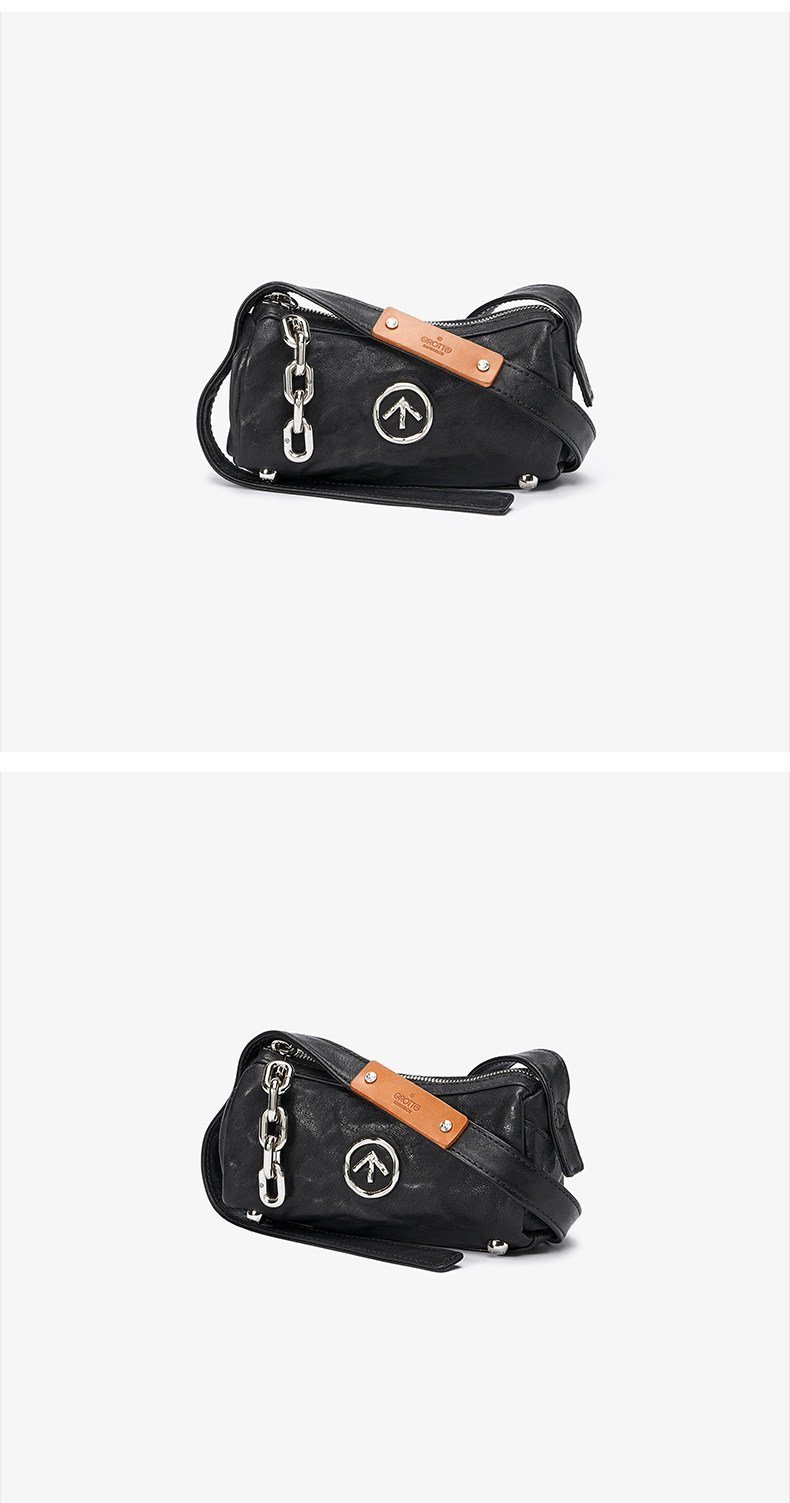 [New Year's Gift] Grotto Genderless Black Stone Bag Mini Pleated Genuine Leather Shoulder Crossbody Bag Small Bag