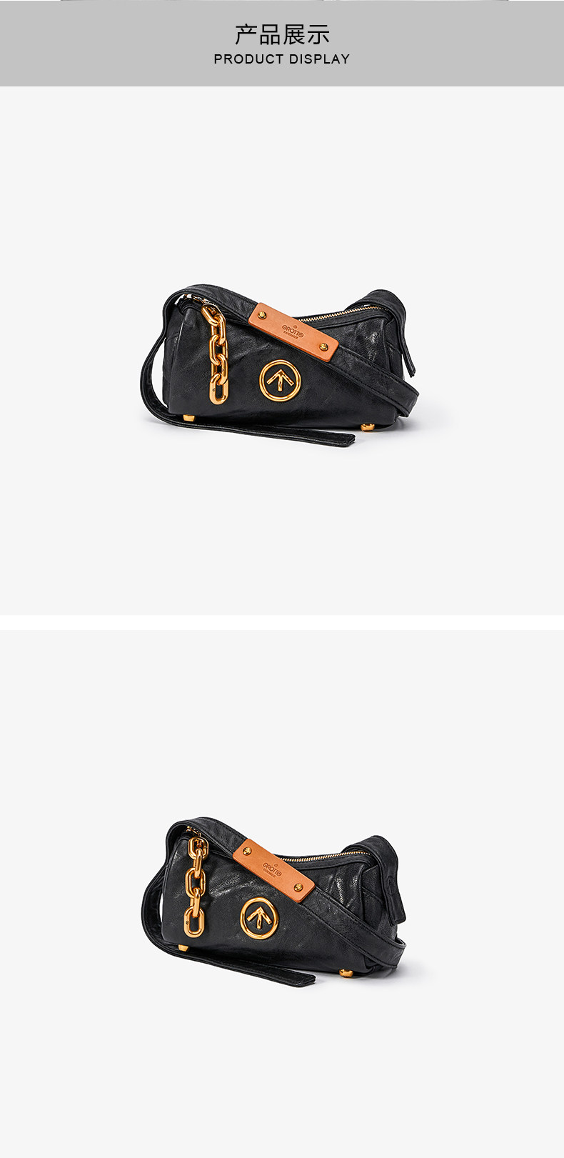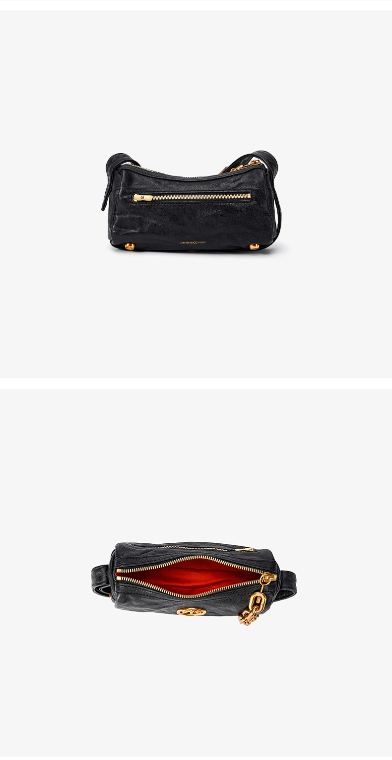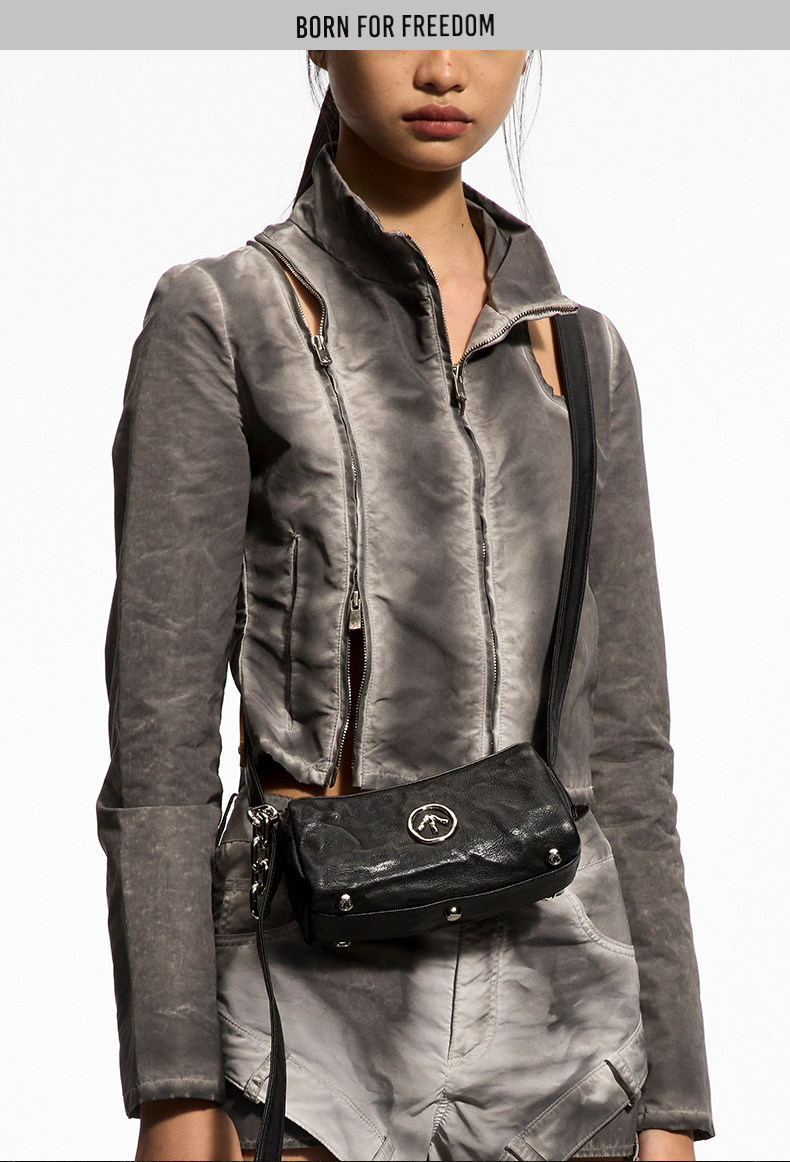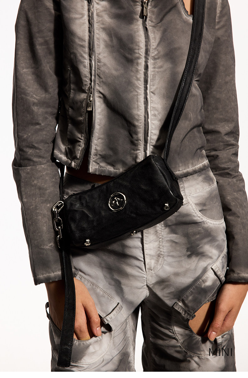 [New Year's Gift] Grotto Genderless Black Stone Bag Mini Pleated Genuine Leather Shoulder Crossbody Bag Small Bag