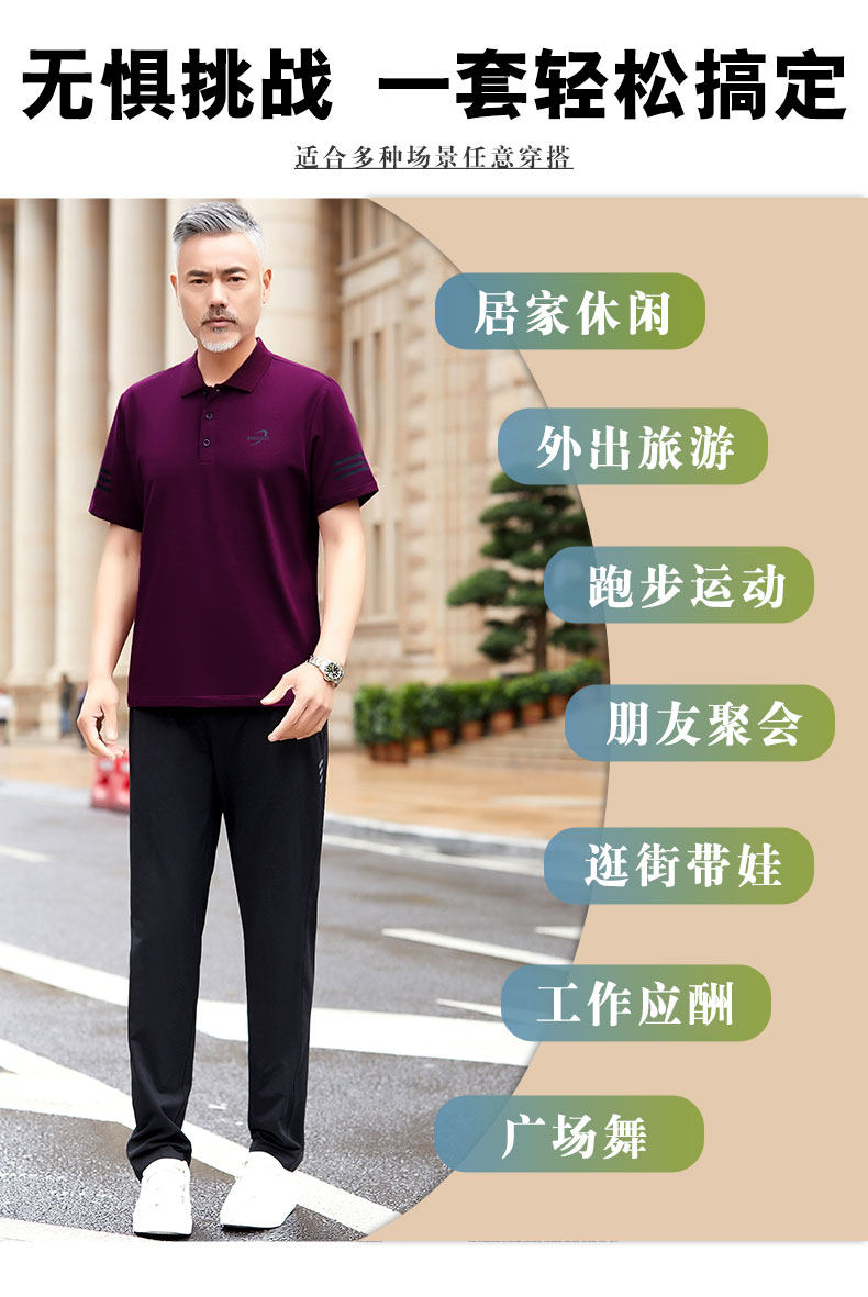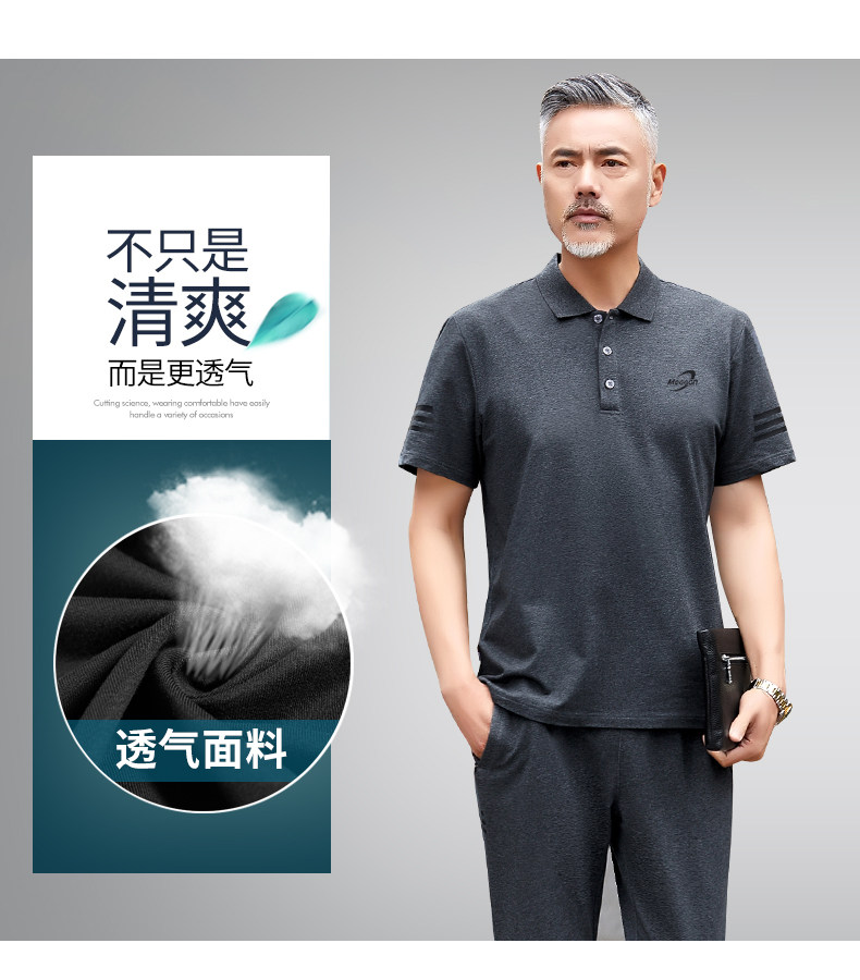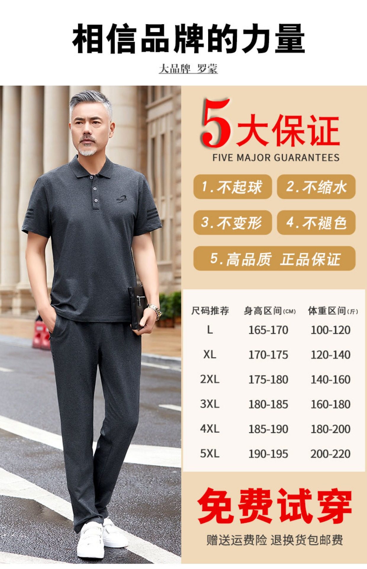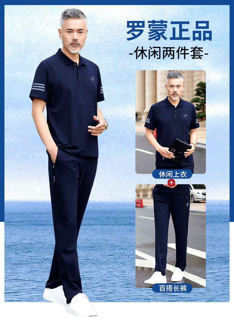 罗蒙中老年爸爸夏装运动套装2025新款中年男士短袖t恤父亲节衣服