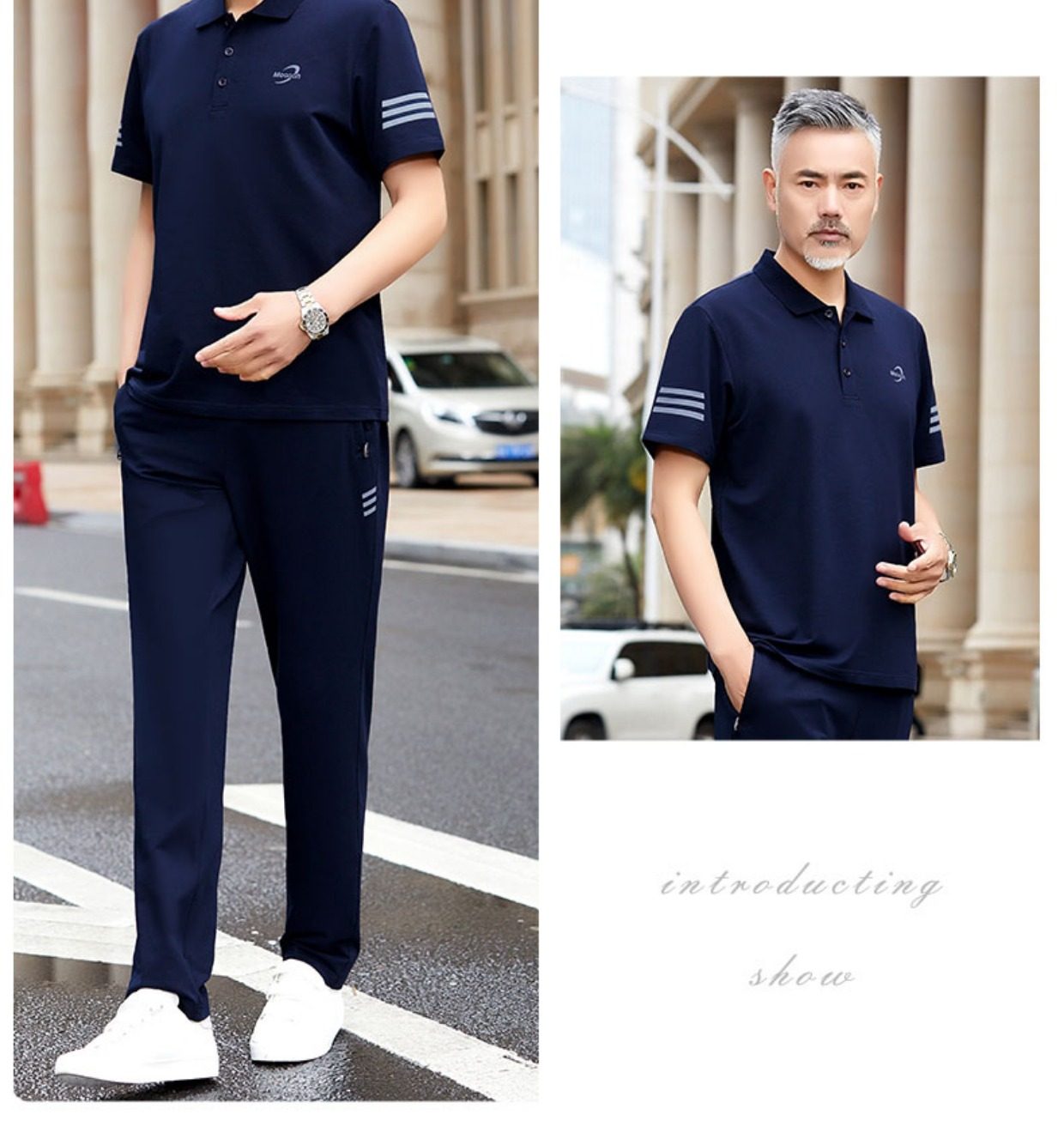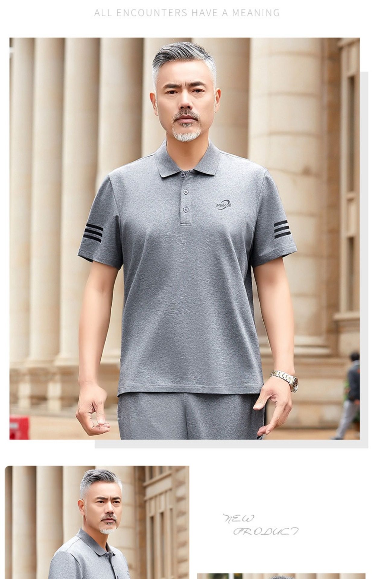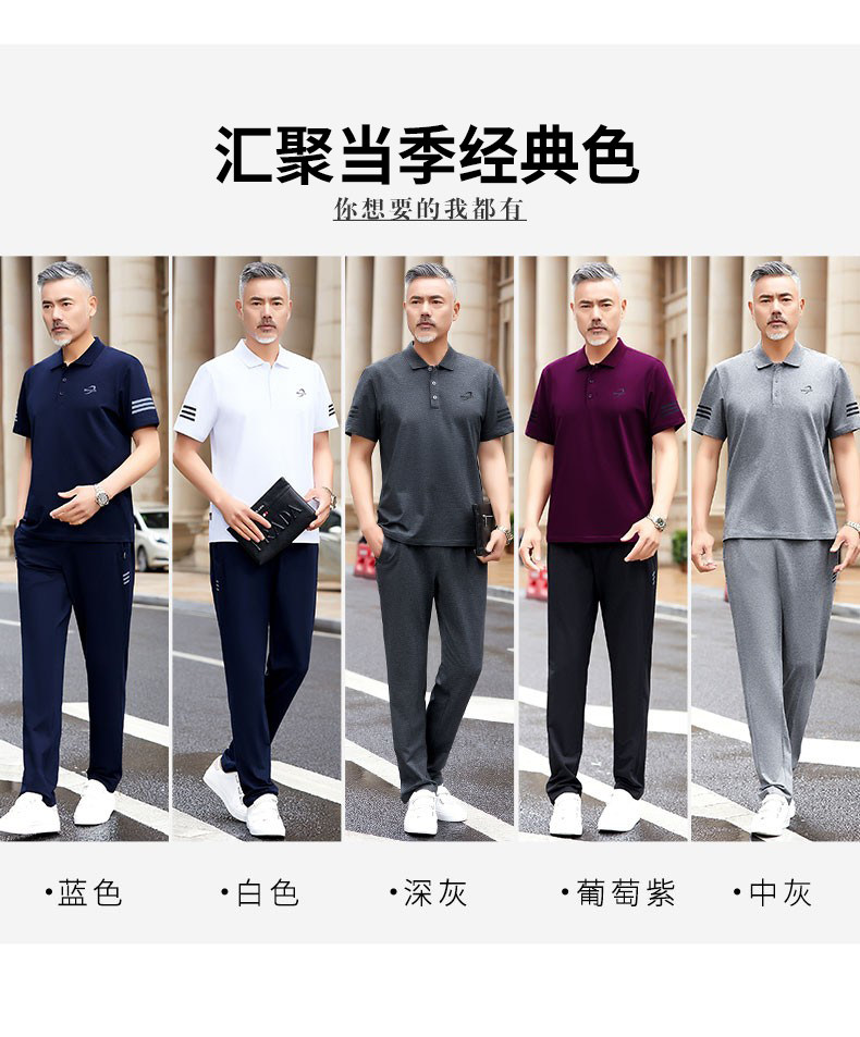 罗蒙中老年爸爸夏装运动套装2025新款中年男士短袖t恤父亲节衣服