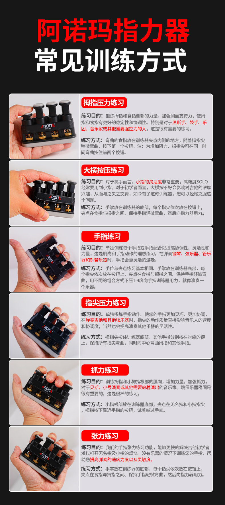 Anoma Instrumento de Fuerza de Dedo Guitarra Piano Guzheng Instrumento Universal para niños y Adultos Dispositivo de Entrenamiento de Fuerza de Dedo