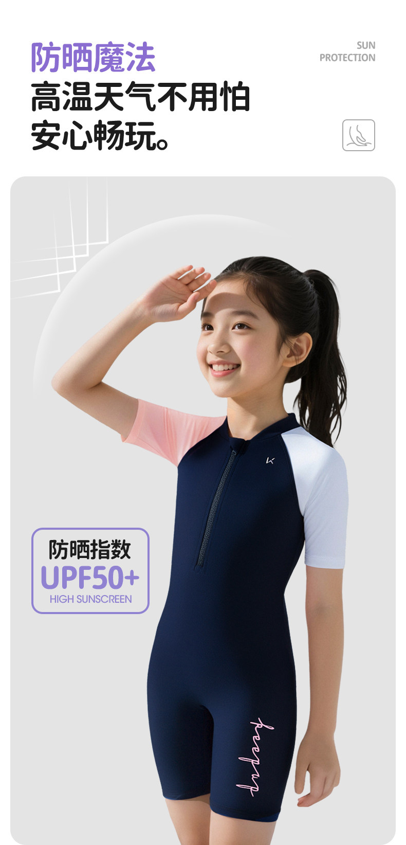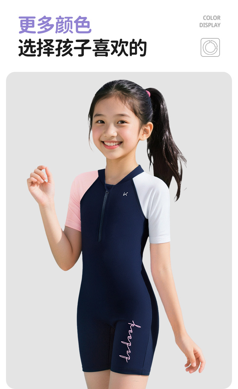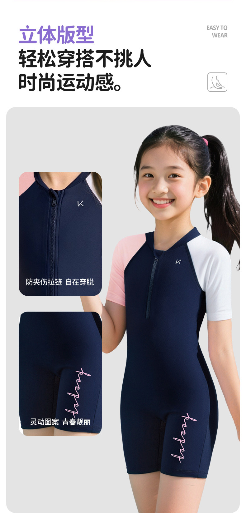 keep儿童游泳衣女孩连体中大童初中生带胸垫防晒专业训练女童装备