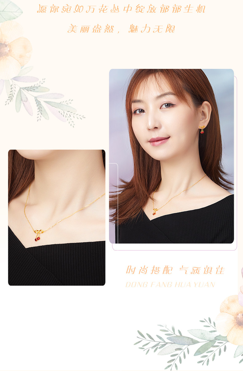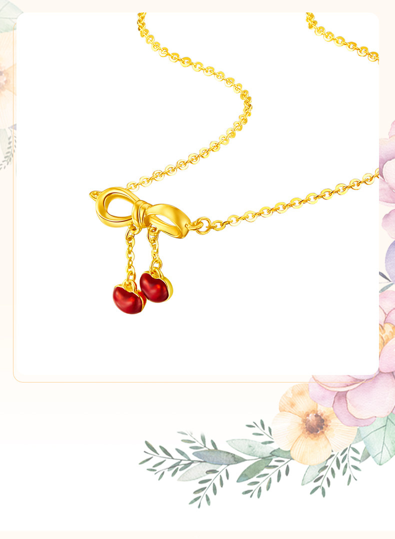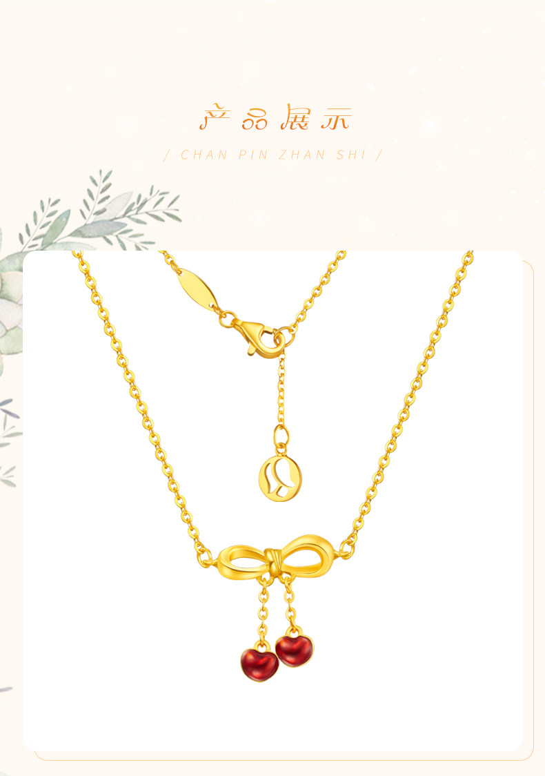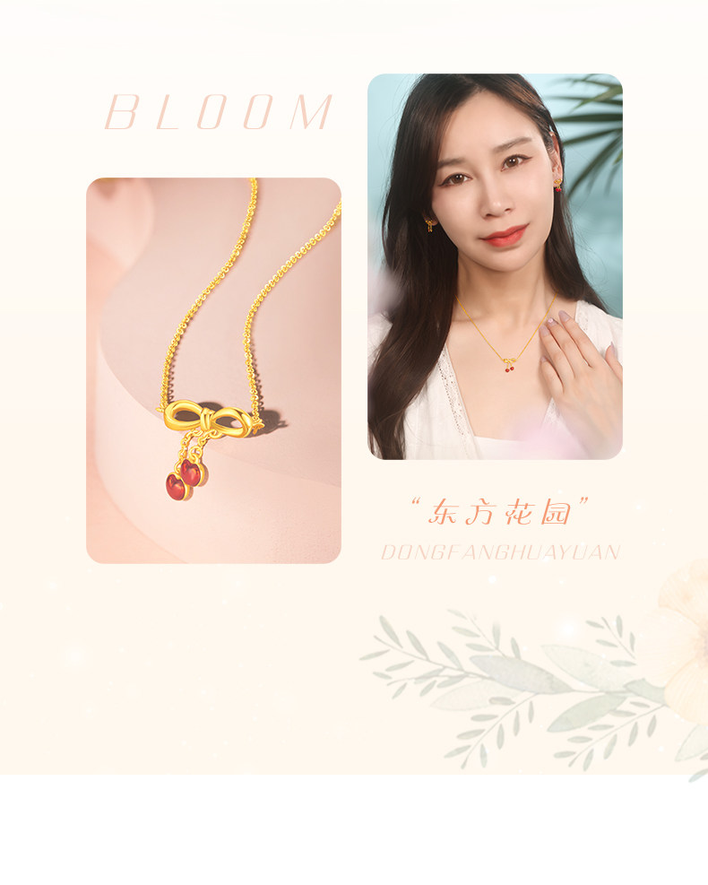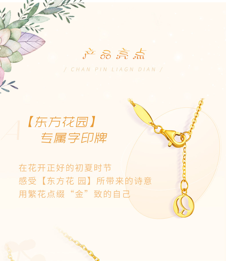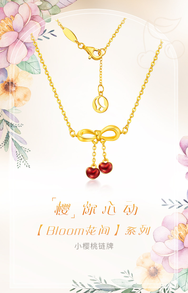 New Year's Gift: Pure Gold Necklace from Cai Bai, Oriental Garden Bloom Series, Cherry Blossom Chain Brand