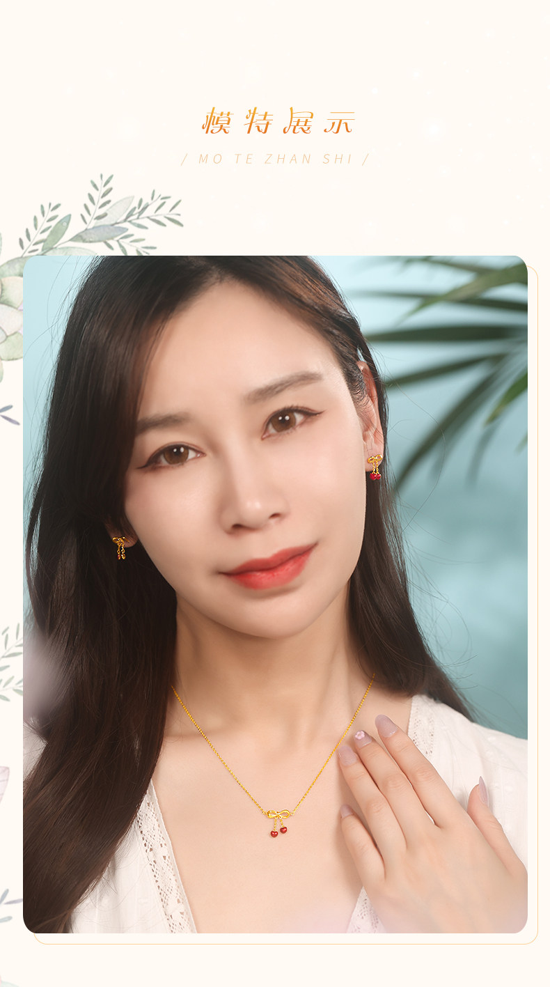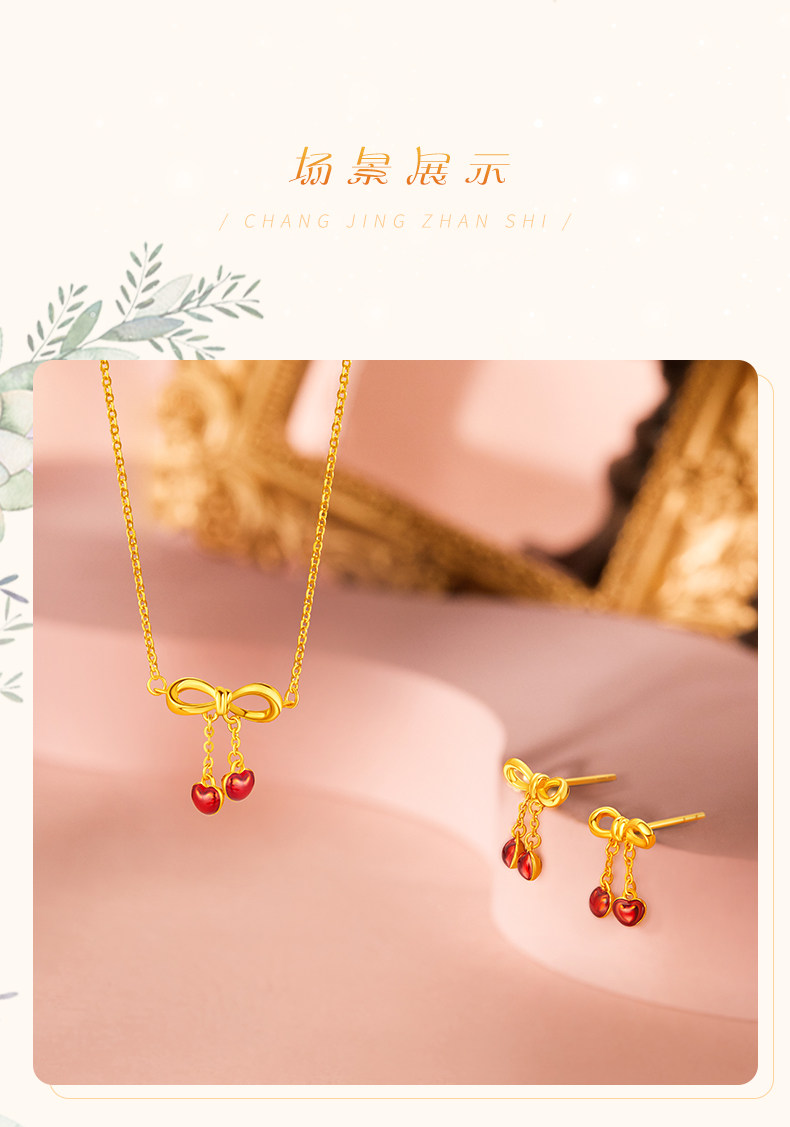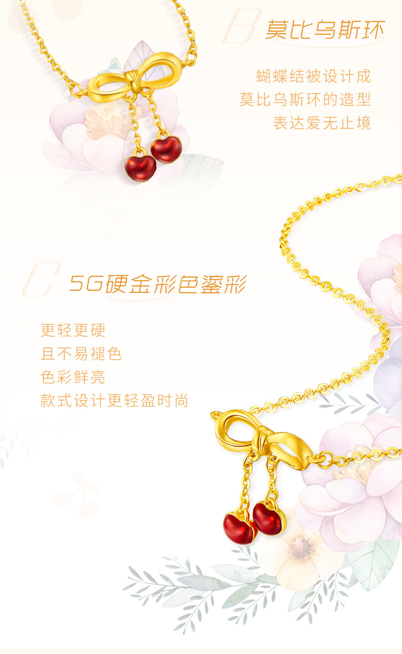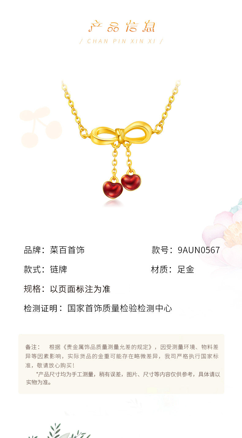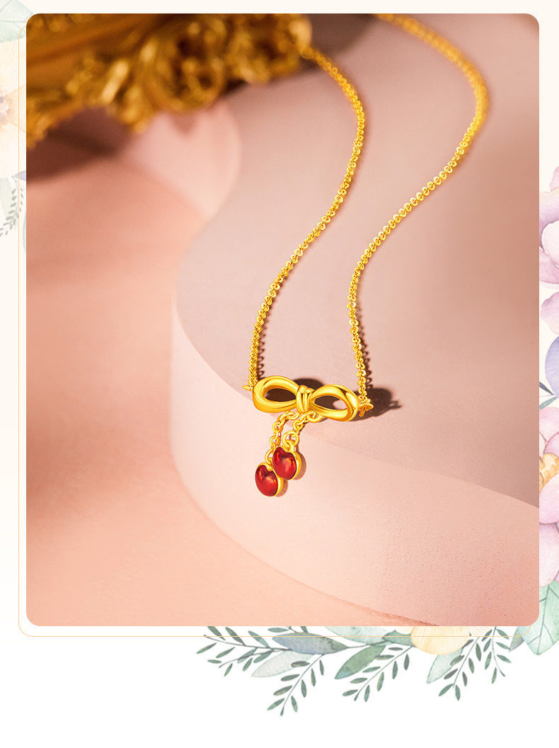 New Year's Gift: Pure Gold Necklace from Cai Bai, Oriental Garden Bloom Series, Cherry Blossom Chain Brand
