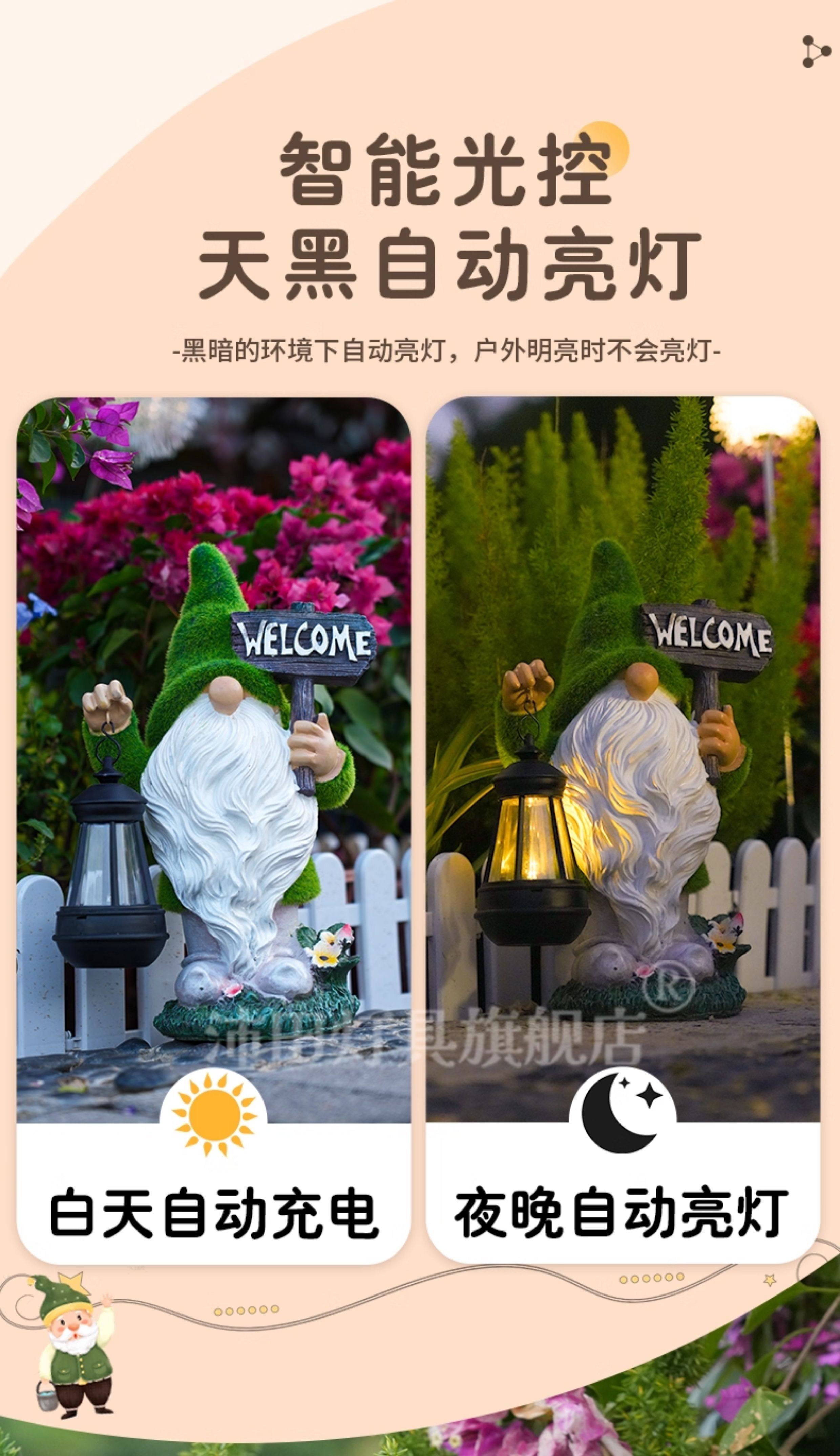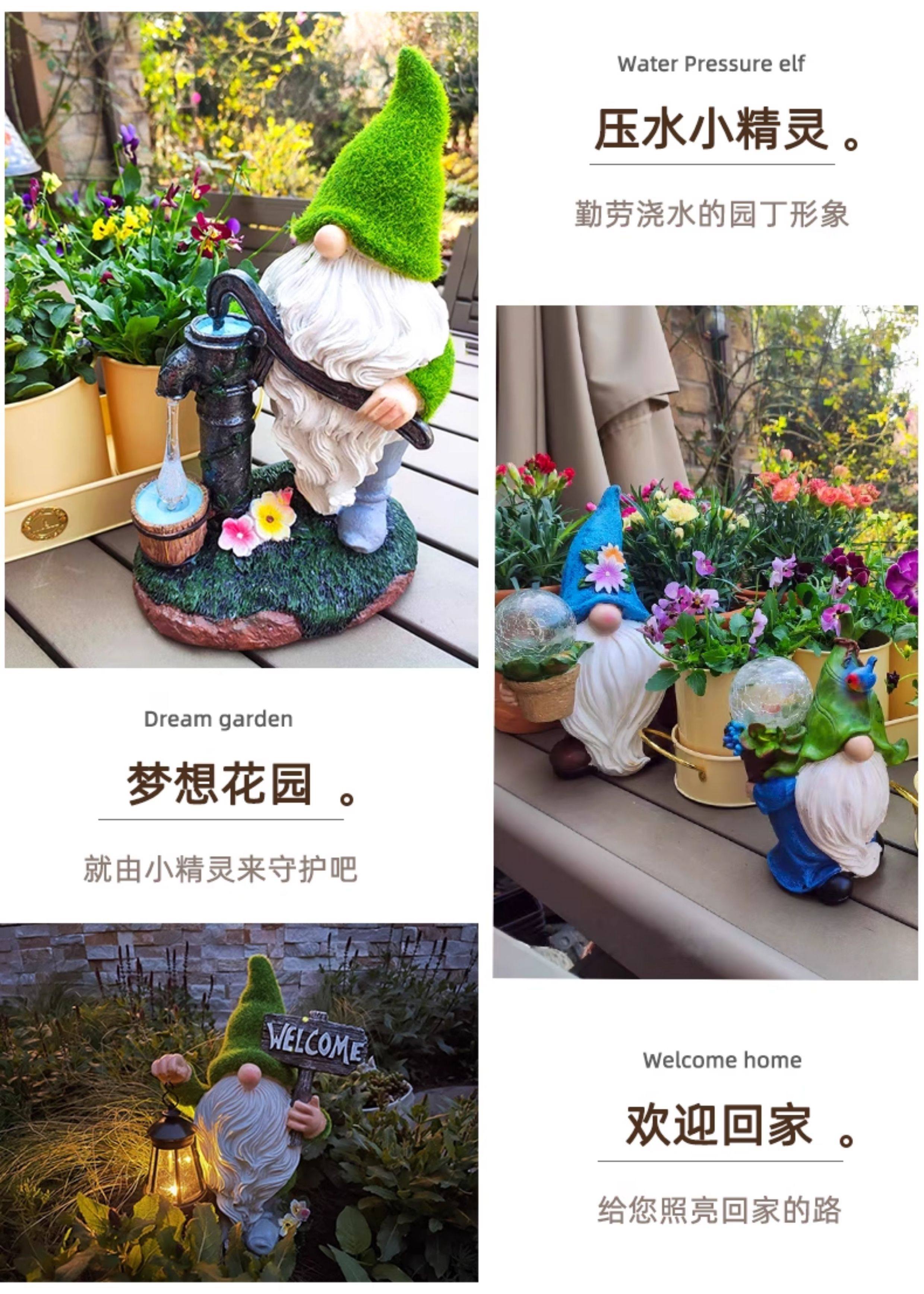 Cute Dwarf Ornaments Solar-Powered Outdoor Courtyard Lights Garden Courtyard Balcony Gardening Decoration Landscape Arrangement Lights