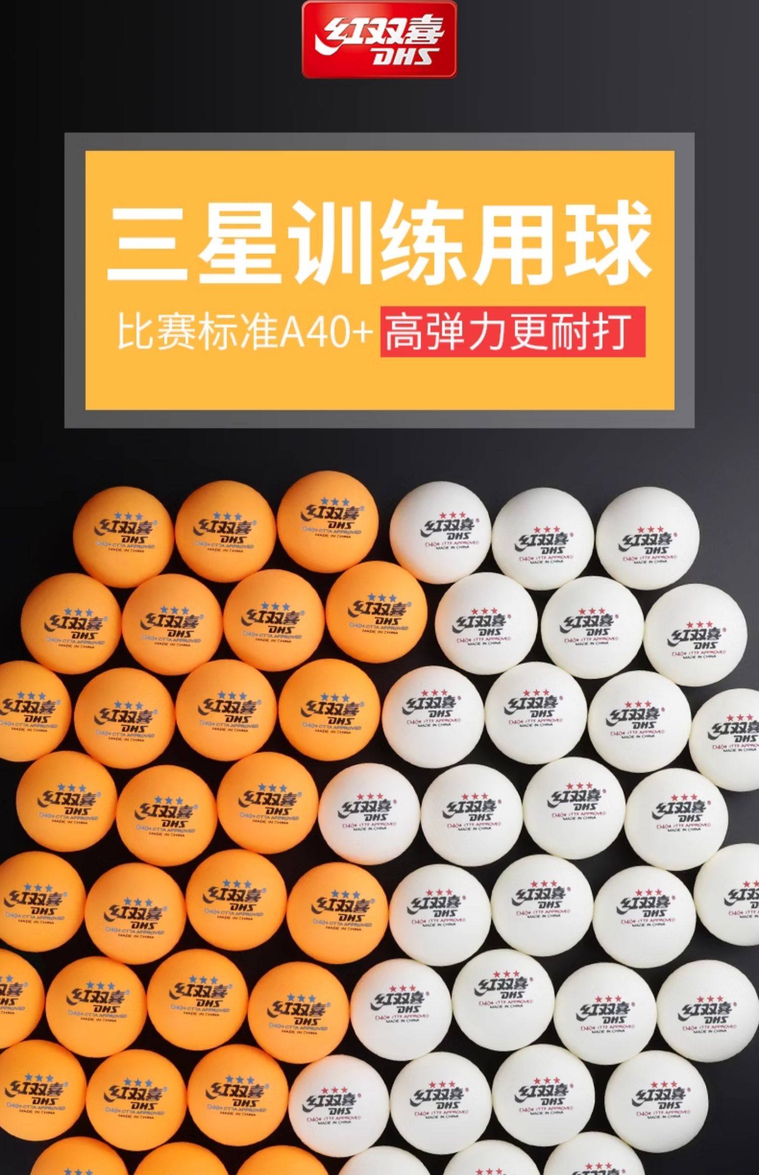 红双喜乒乓球三星120只装一星练习训练球耐打比赛专用乒乓球D40+