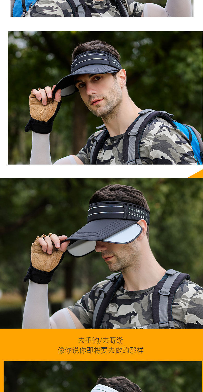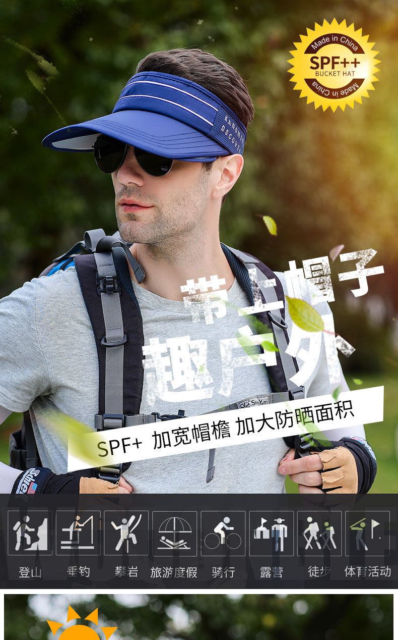 Sombrero de copa vacío para hombre, sombrero con visera retráctil al aire libre de verano para hombre, sombrilla deportiva informal de moda de estilo coreano y sombrero de protección solar para mujer