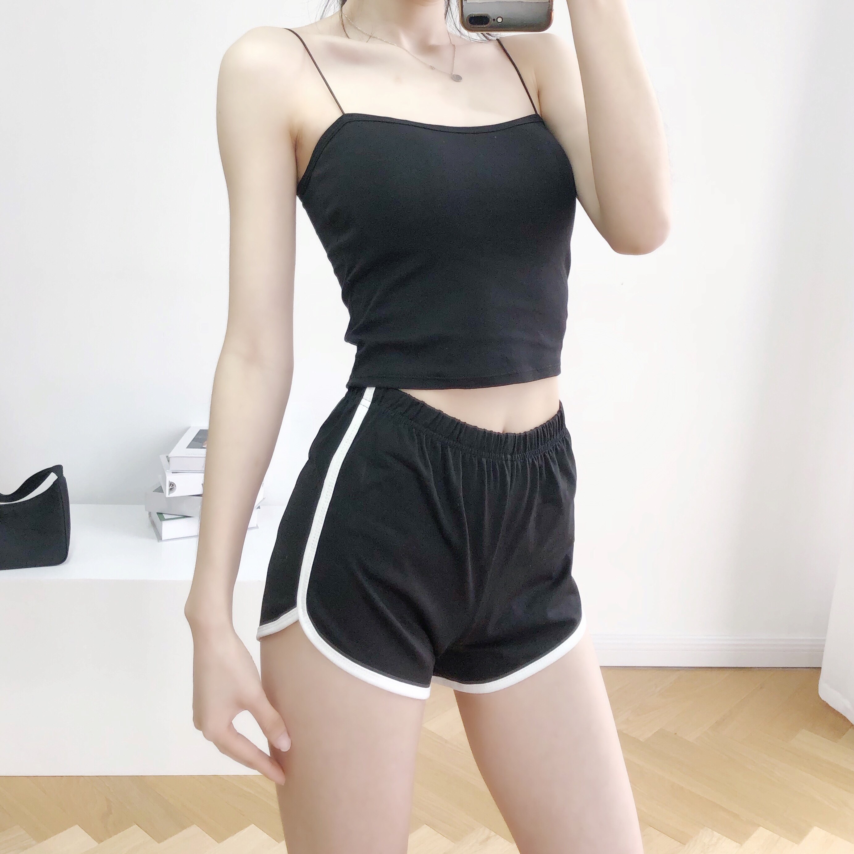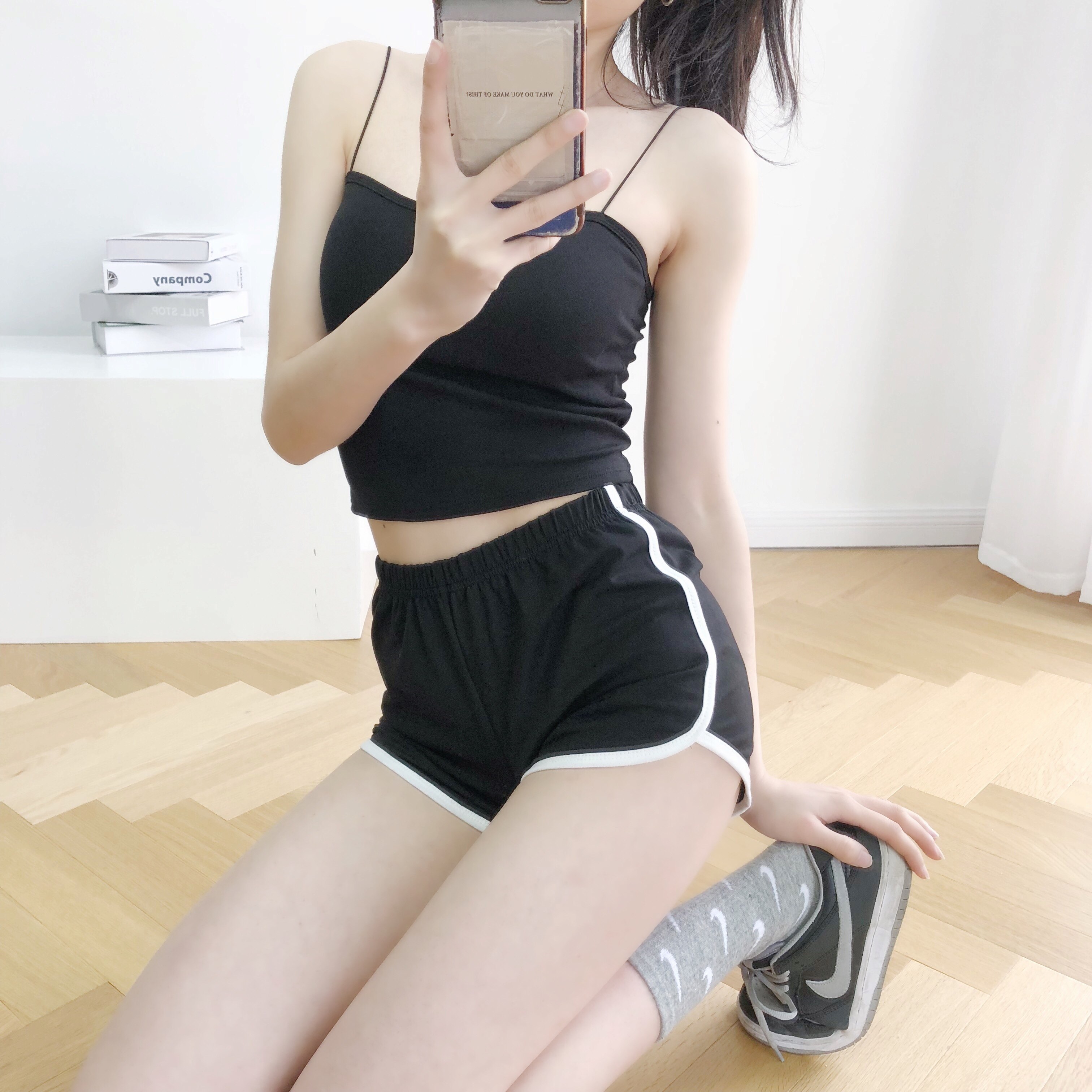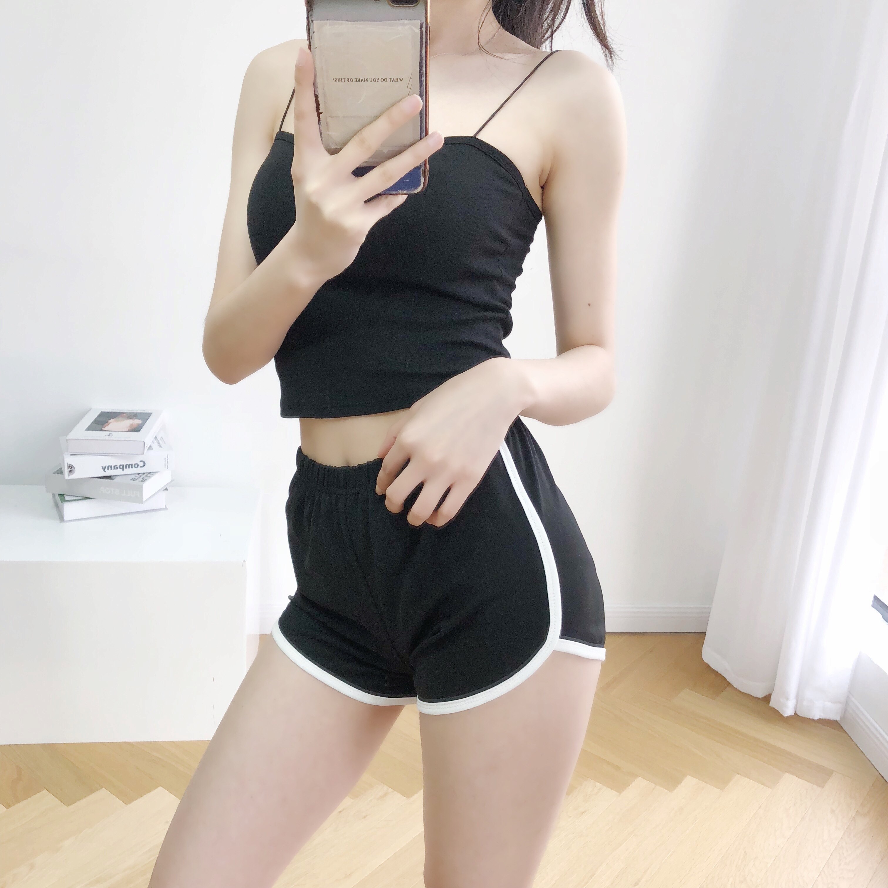 Черно-серые спортивные шорты для женщин, летние тонкие, универсальные, обтягивающие повседневные брюки из хлопка, сладкая, пикантная и сексуальная верхняя одежда, женские групповые шорты