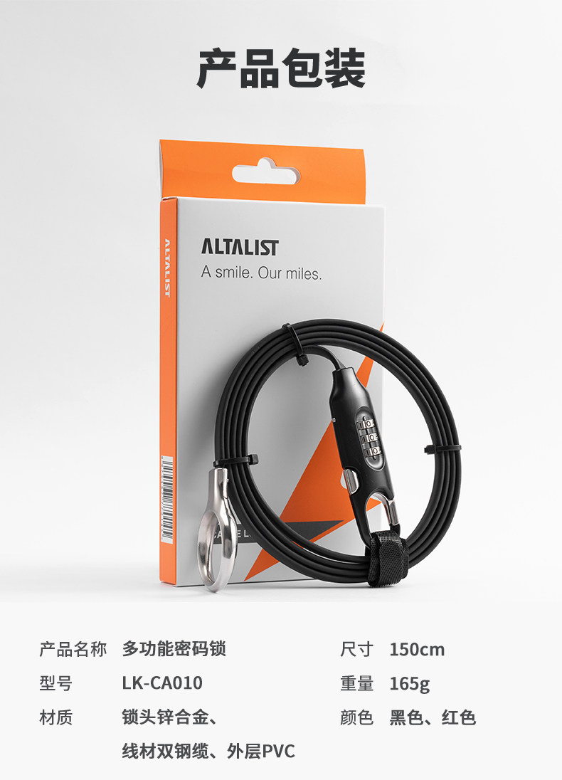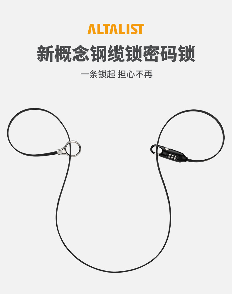 ALTALIST自行车锁摩托车头盔锁便携行李箱包密码钢缆锁迷你车锁
