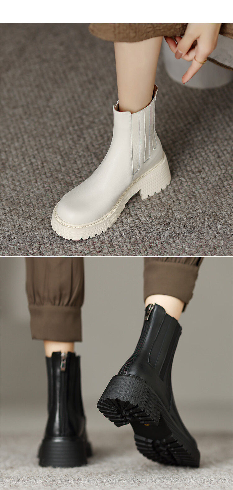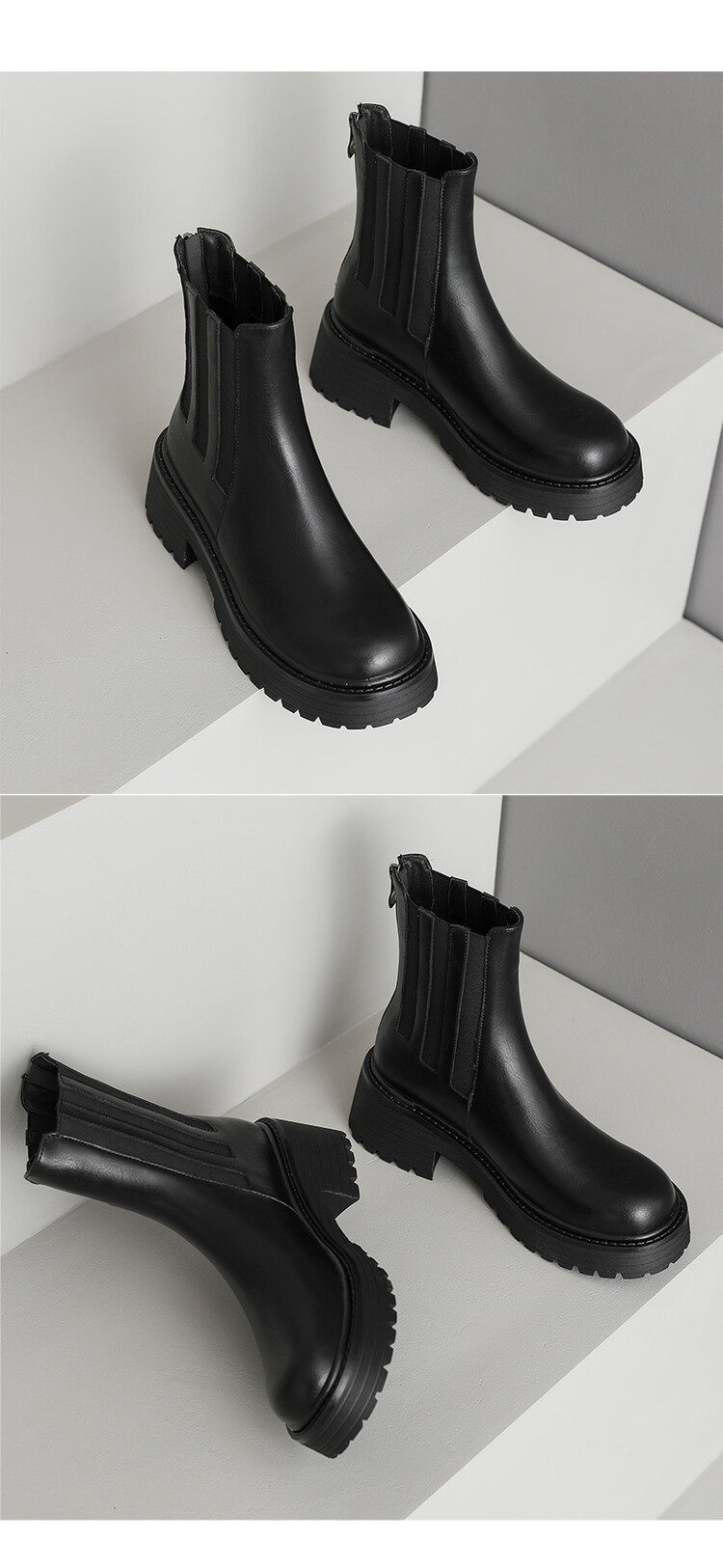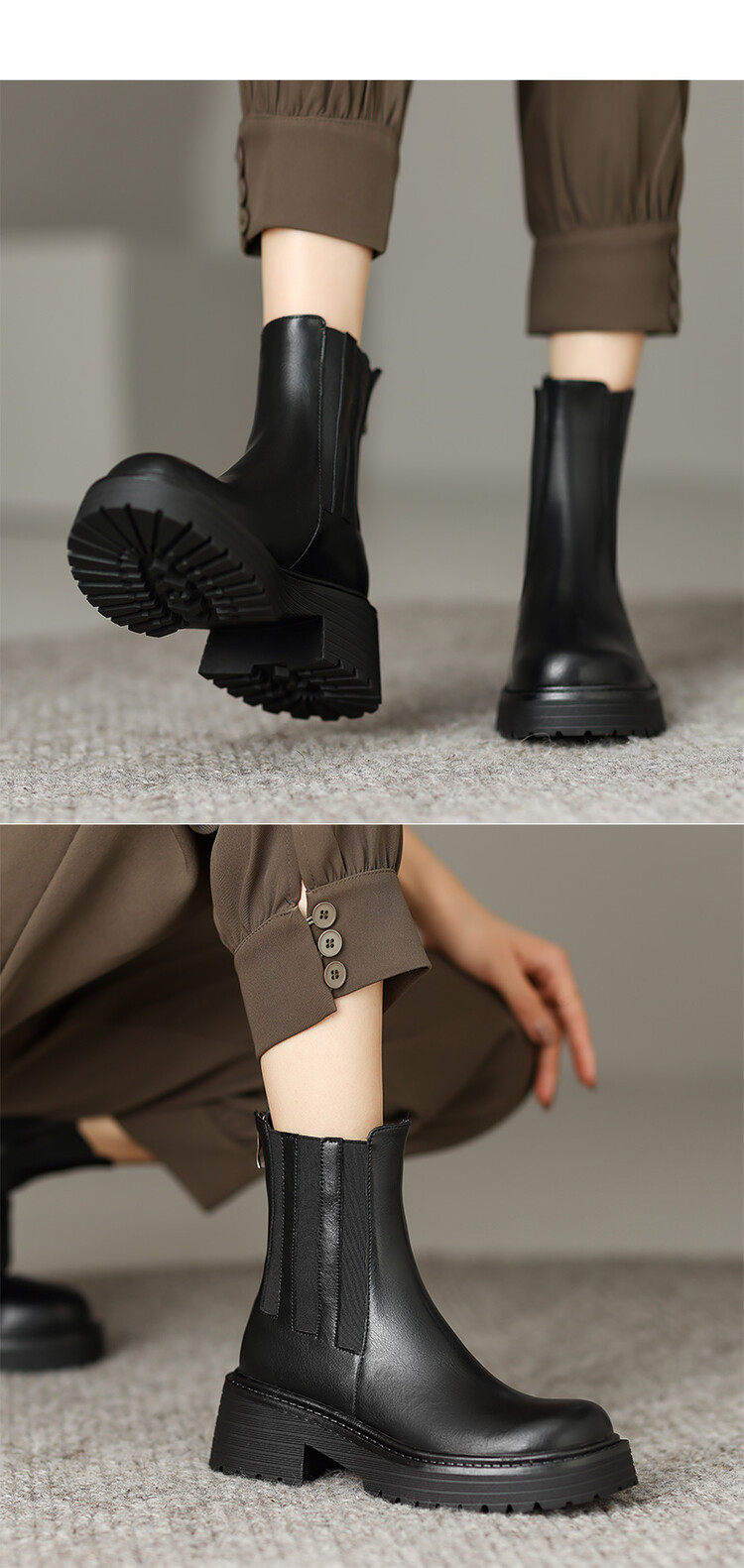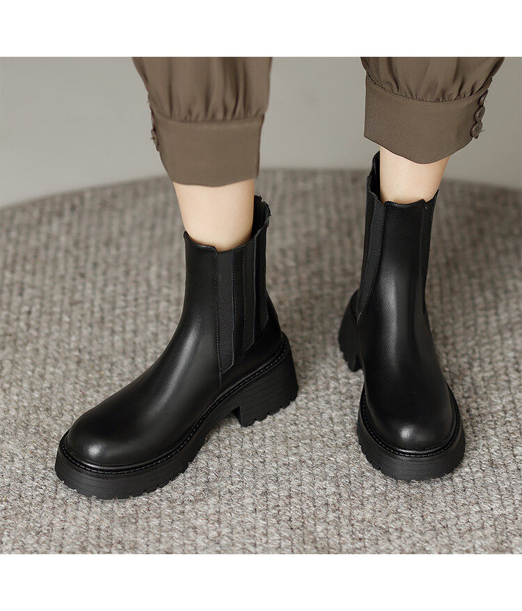 TATALORY联名女鞋2024秋冬圆头中跟复古时尚烟筒短靴厚底马丁靴