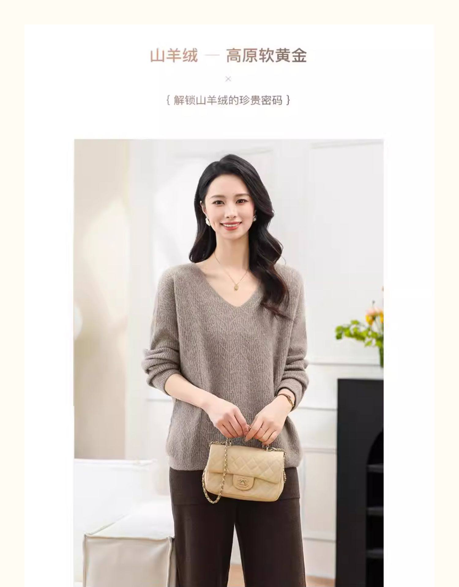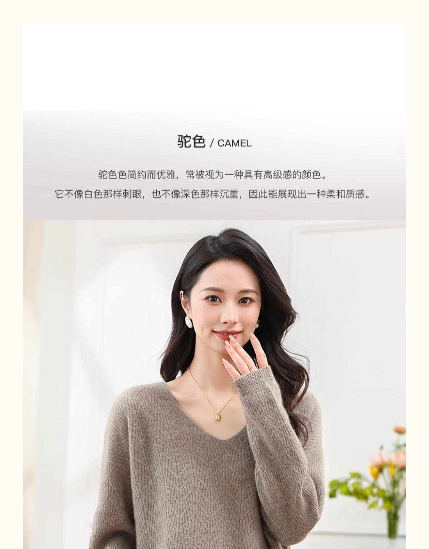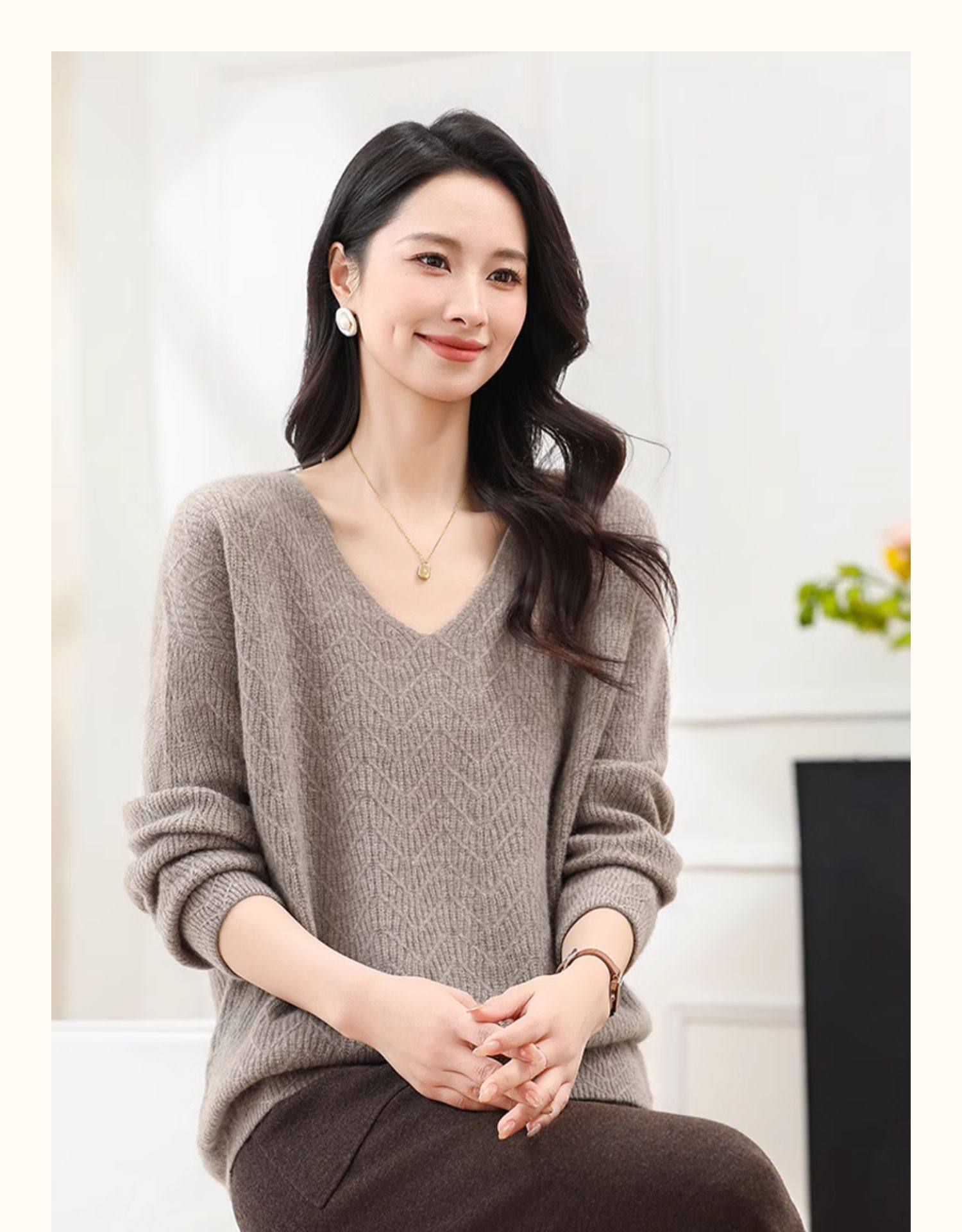 Tianshan 100 % Kaschmir neuer Herbst- und Winter-Kamel-Kaschmirpullover mit V-Ausschnitt für Damen mit lockerem Boden