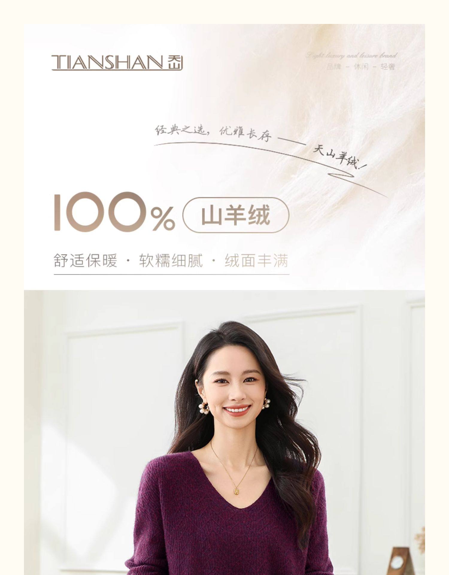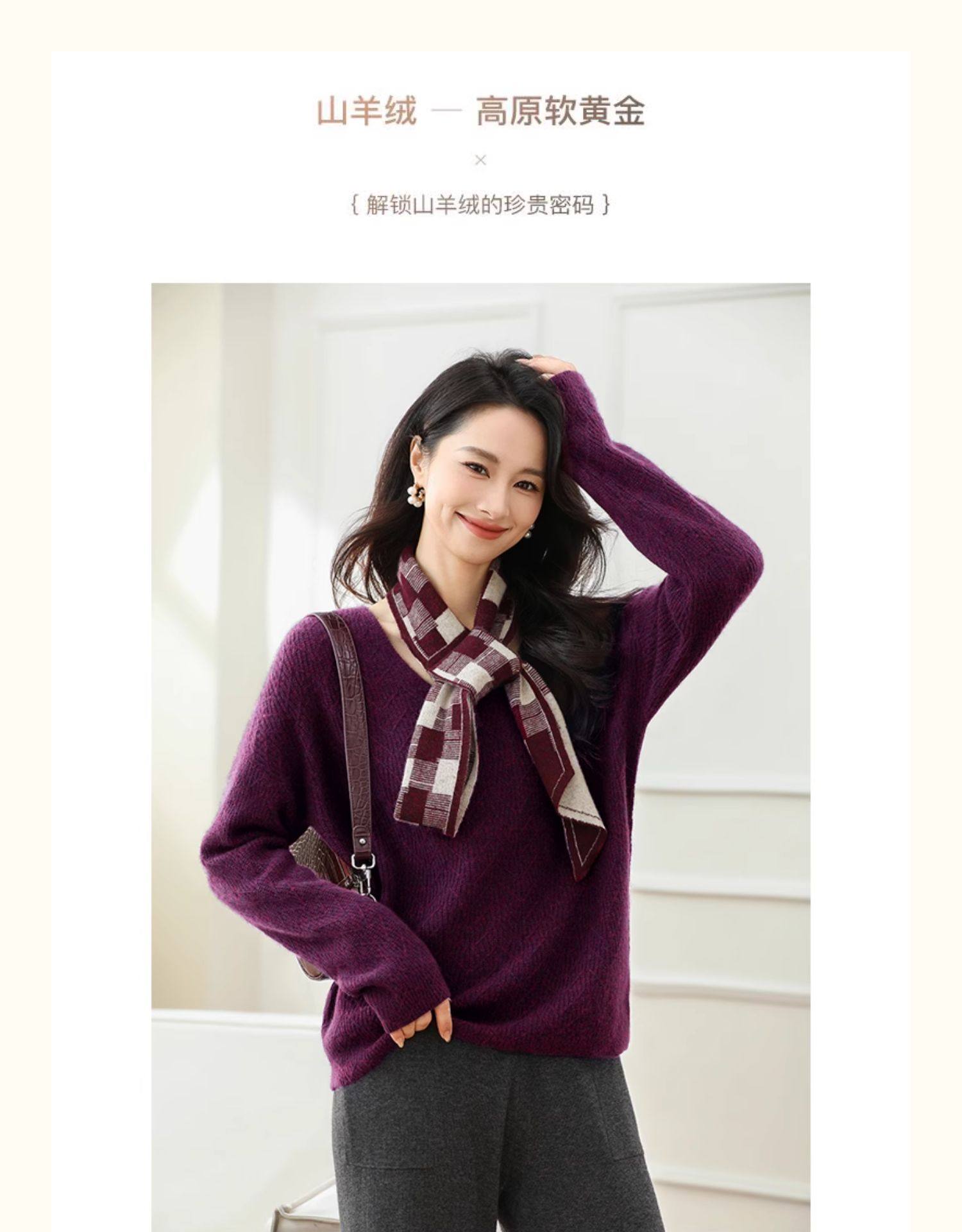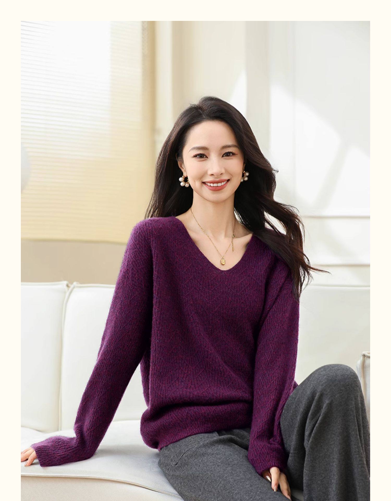 Tianshan 100 % Kaschmir neuer Herbst- und Winter-Kamel-Kaschmirpullover mit V-Ausschnitt für Damen mit lockerem Boden