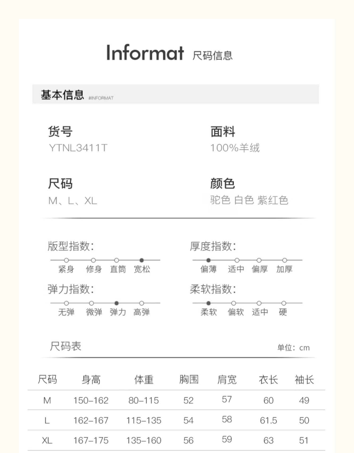 Size (cm) 42 44 46 48 50