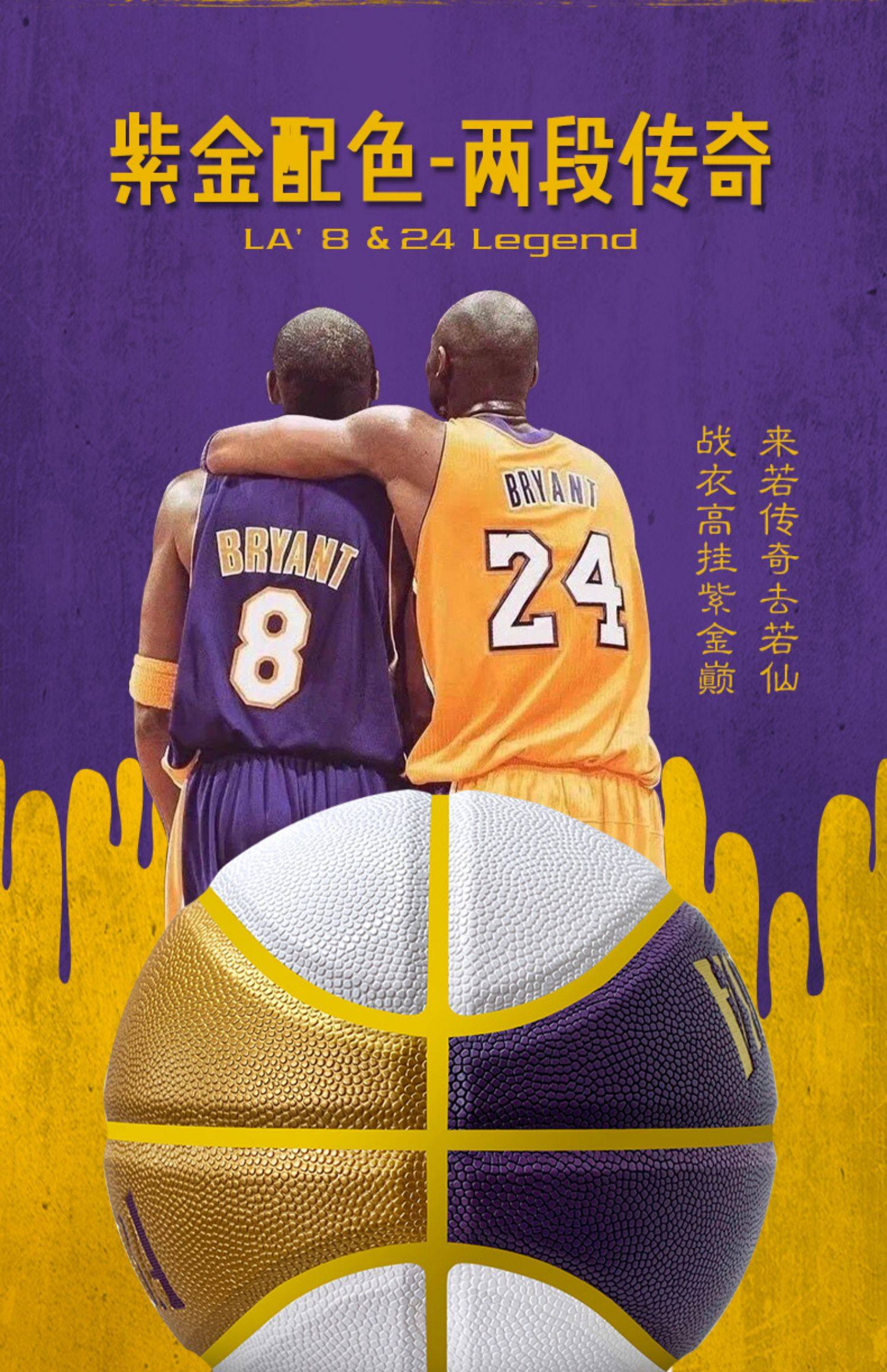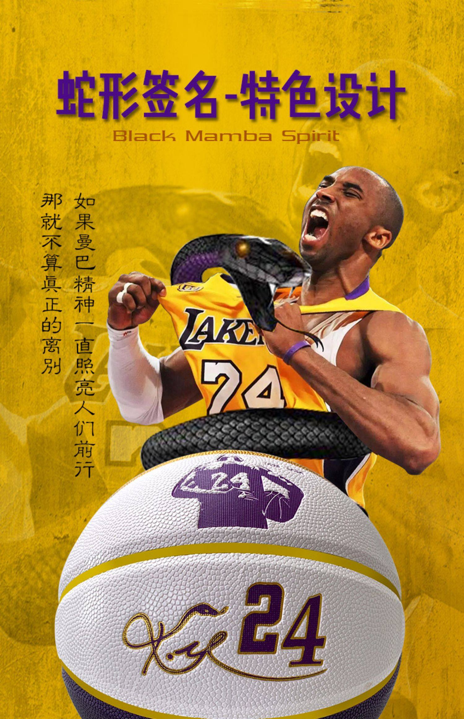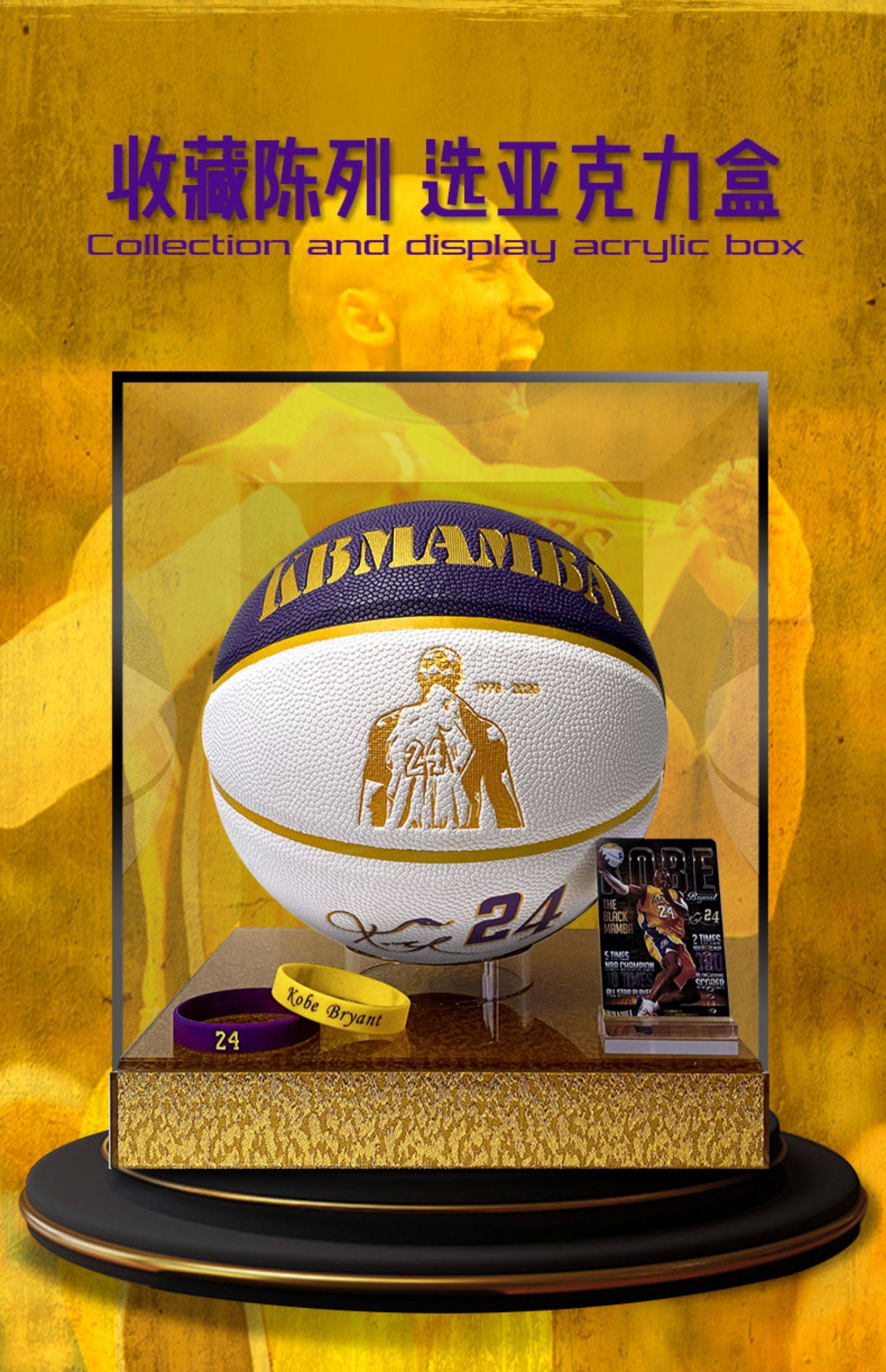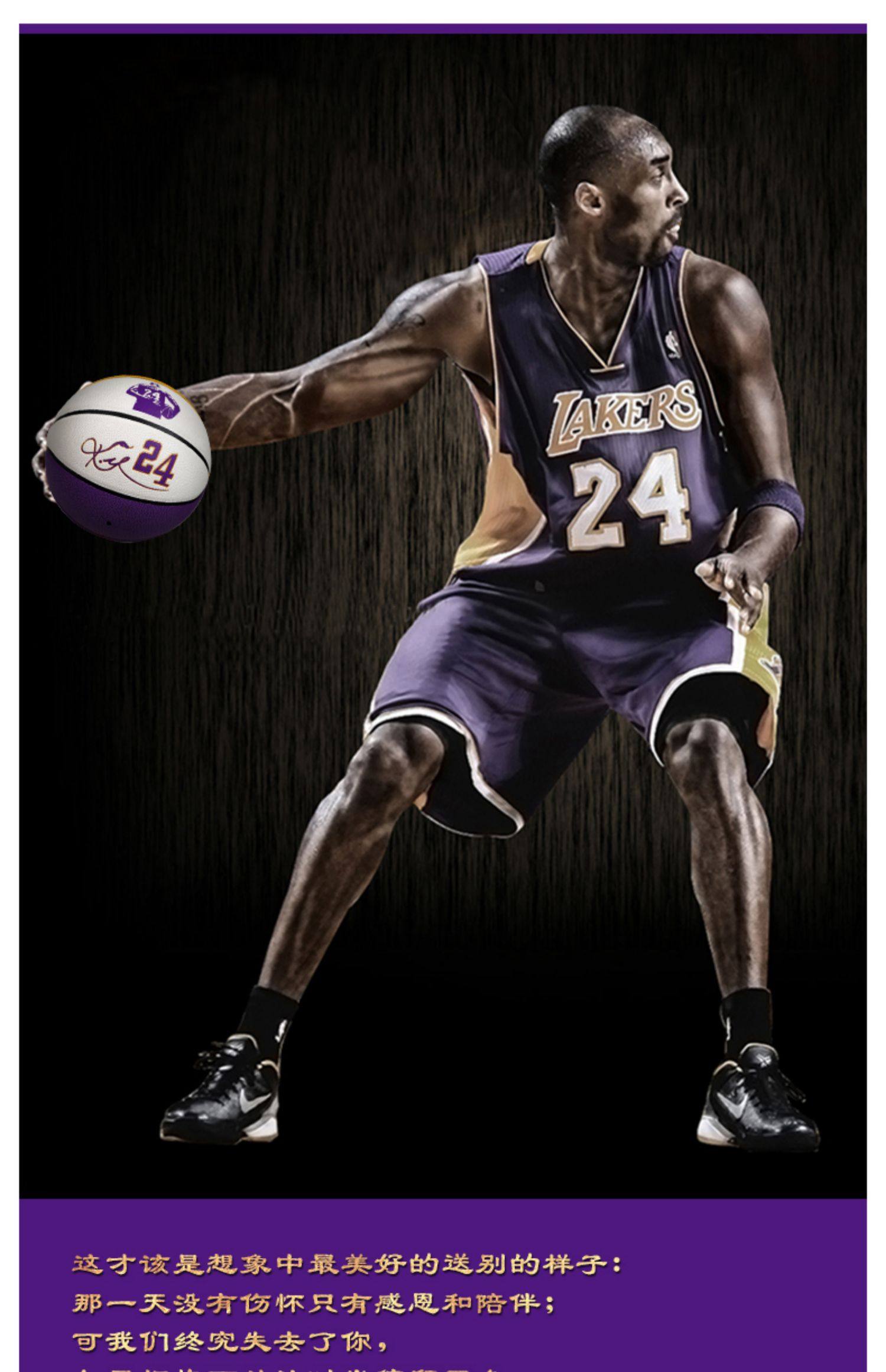 Kobe Bryant firmó baloncesto Lakers Purple Gold 24 Black Mamba genuino conmemorativo reflectante luminoso No. 7 exterior PU resistente al desgaste