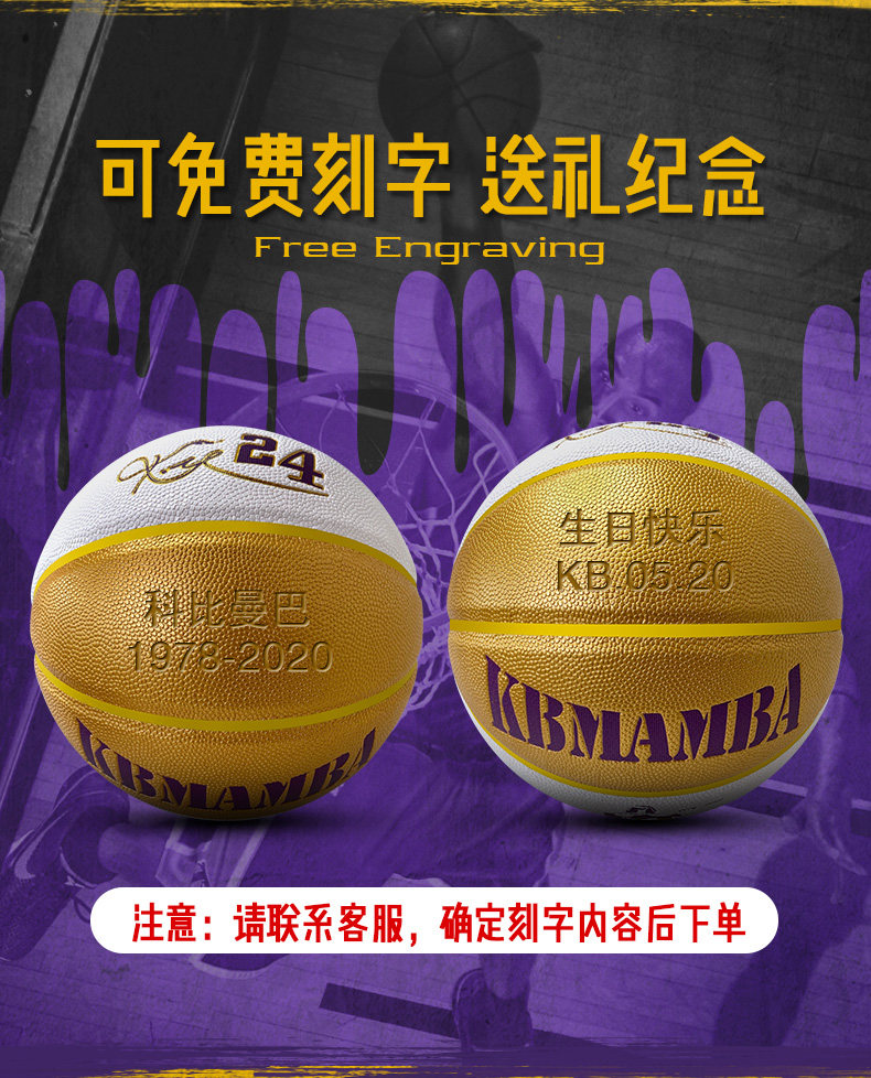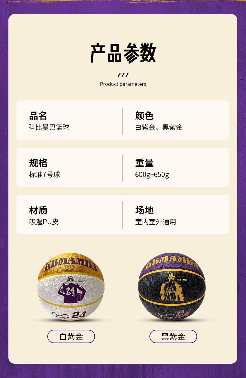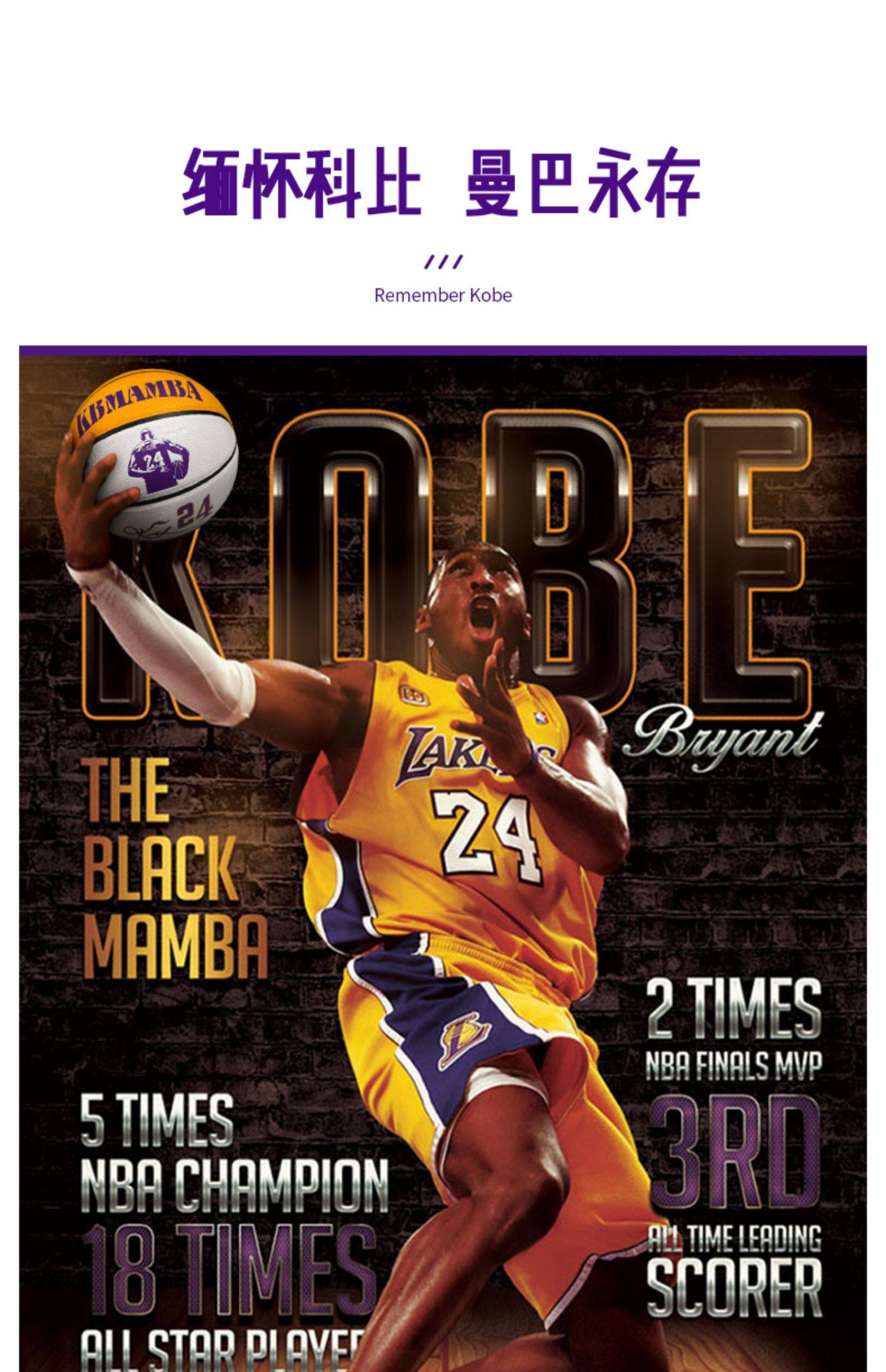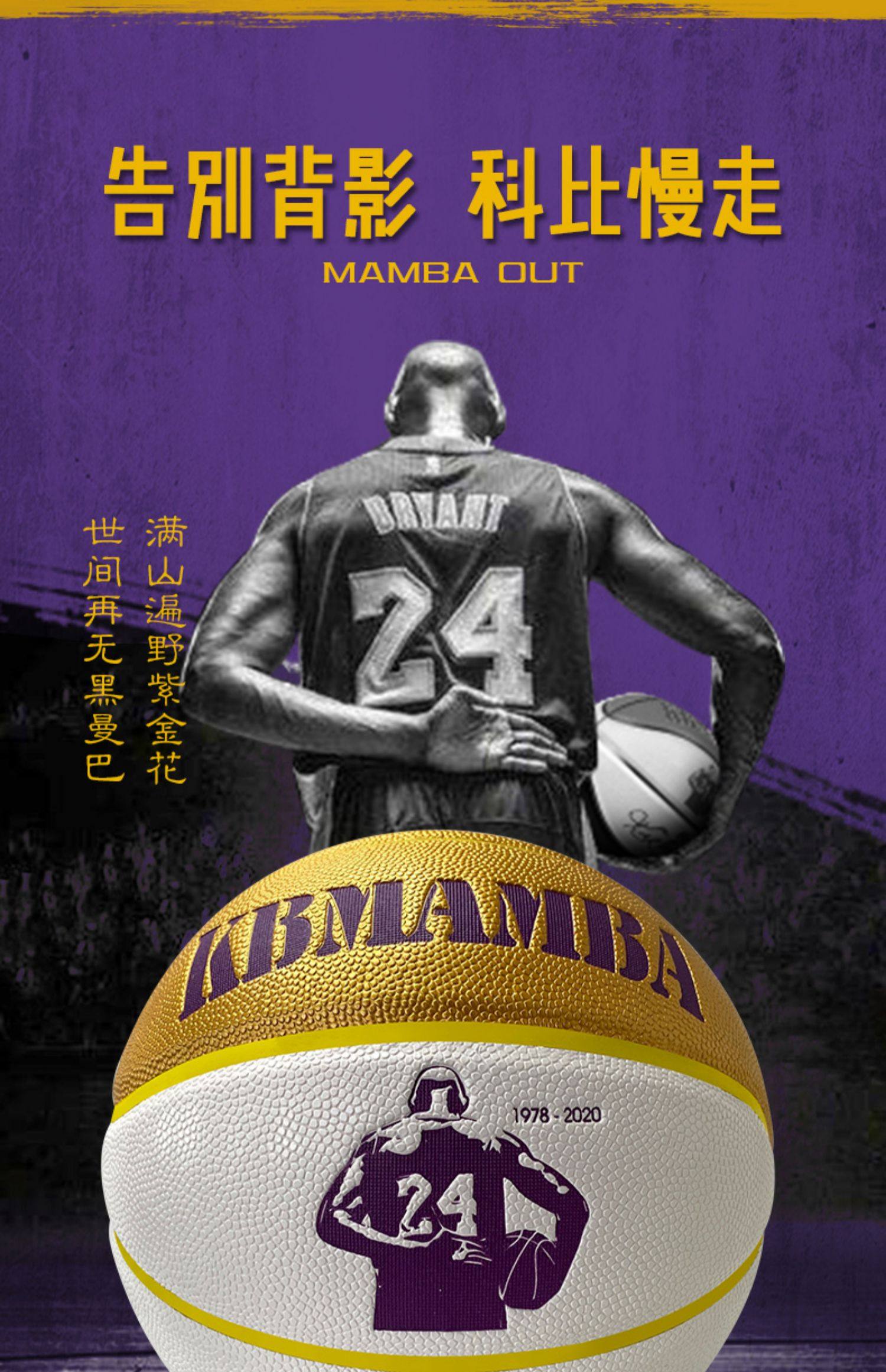 Kobe Bryant firmó baloncesto Lakers Purple Gold 24 Black Mamba genuino conmemorativo reflectante luminoso No. 7 exterior PU resistente al desgaste