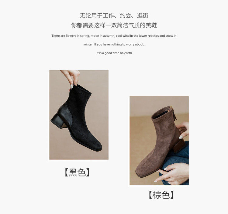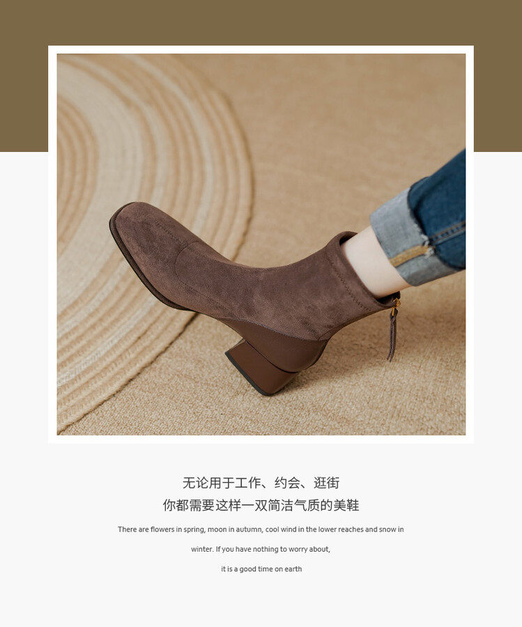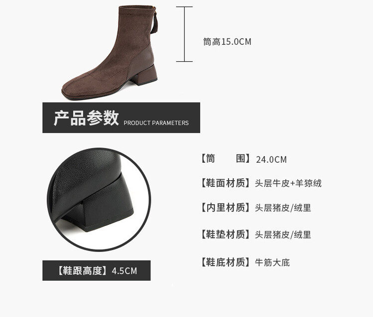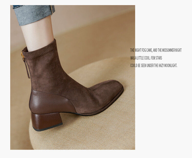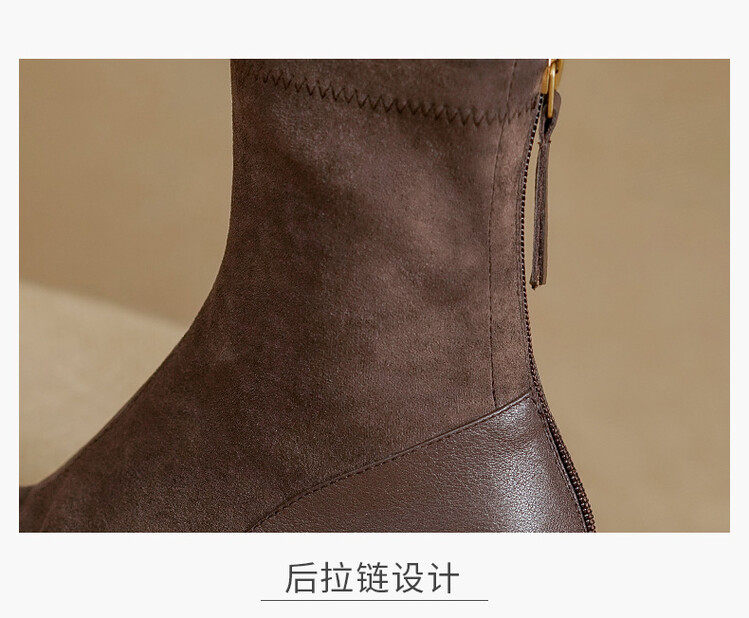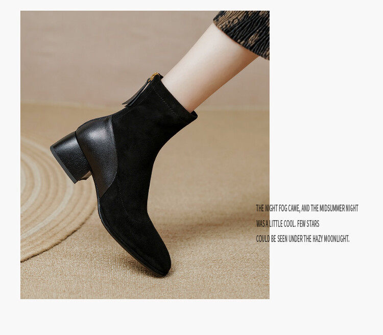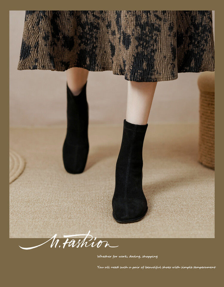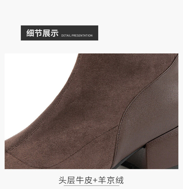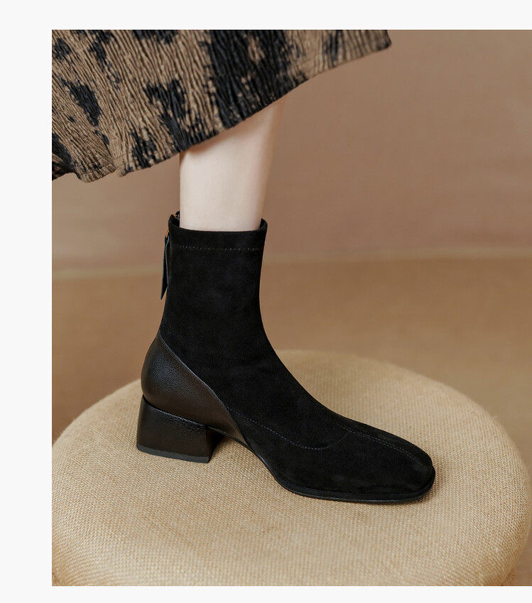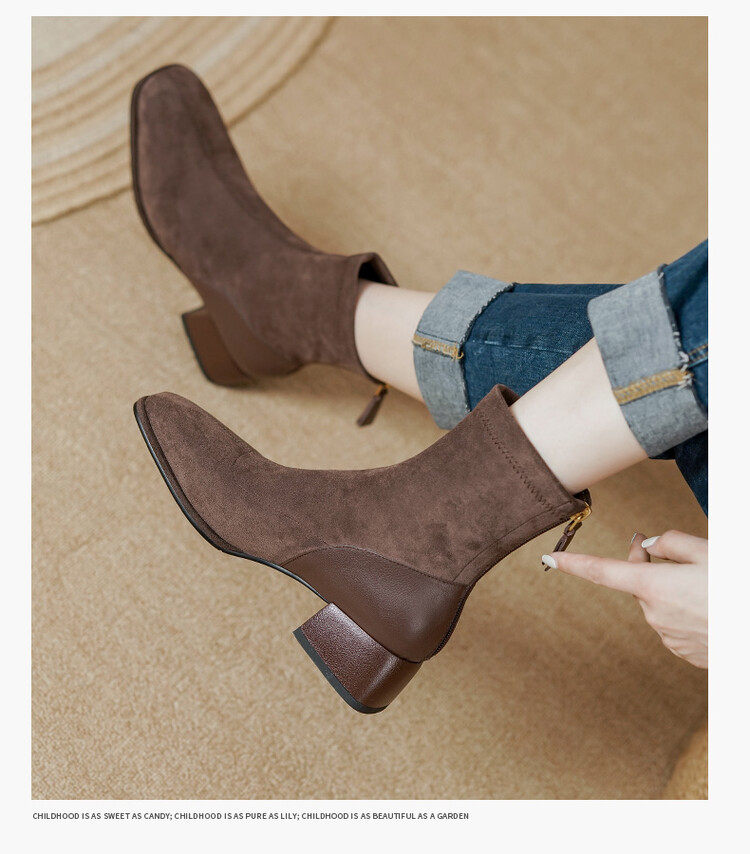 TATALORY handgenähte Wildleder-Stiefel mit dickem Absatz und schmalem Absatz für Damen mit kurzem Schlauch sowie modischen, gefrosteten Kurzstiefeln aus Samt mit mittlerem Absatz für Damen