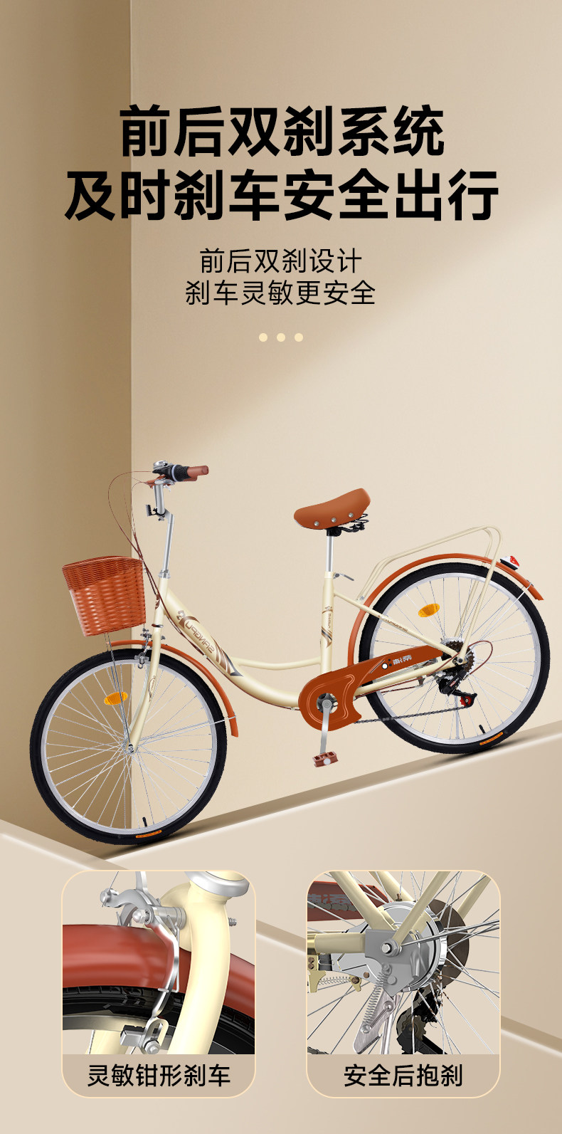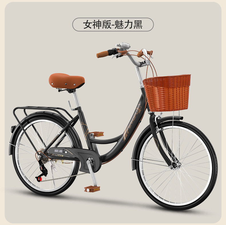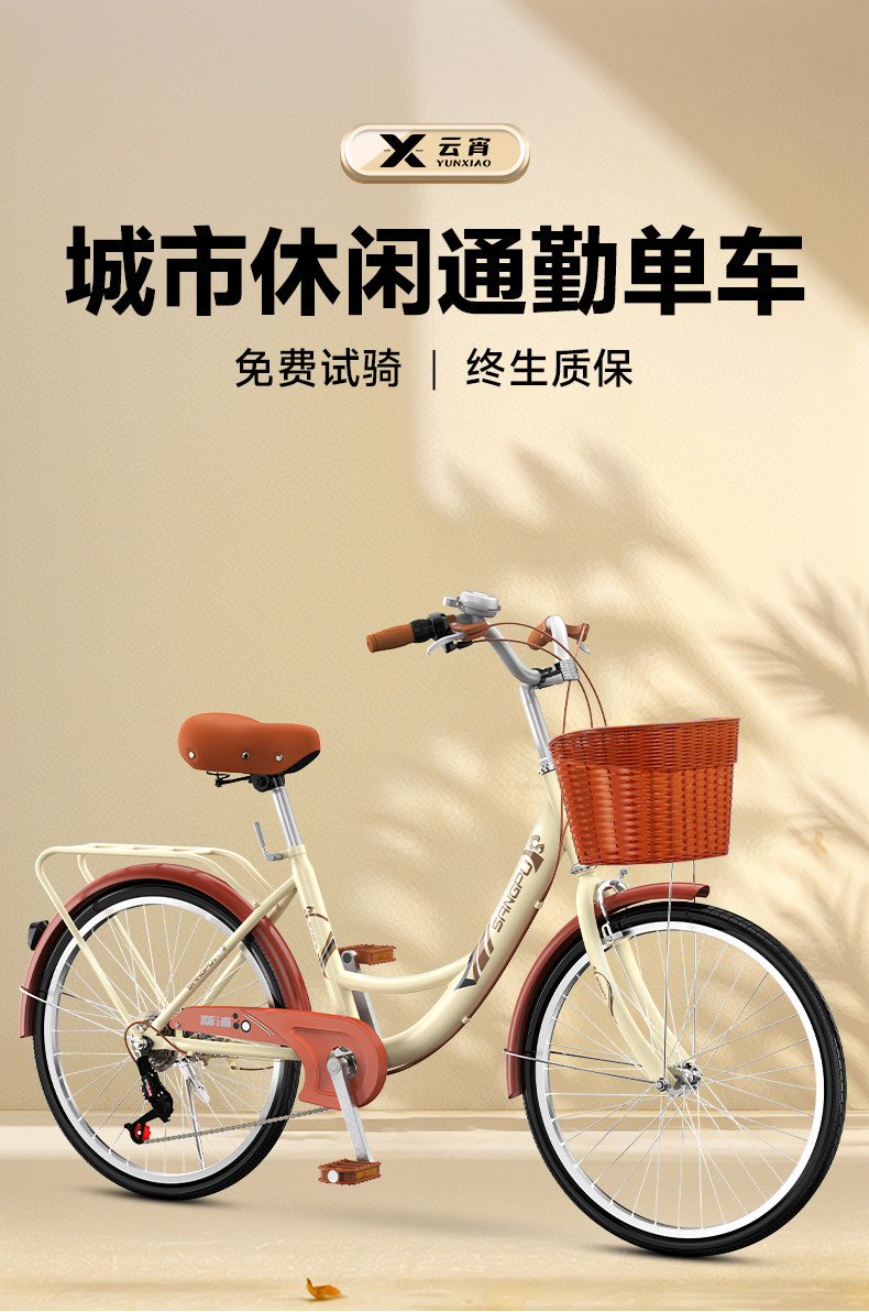 Women's bicycle commuting to work, women's adult lightweight solid tire, male and female, college campus