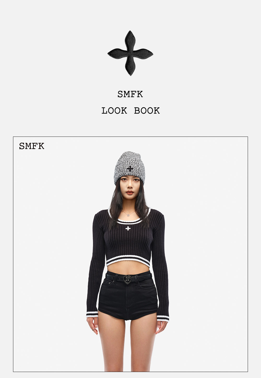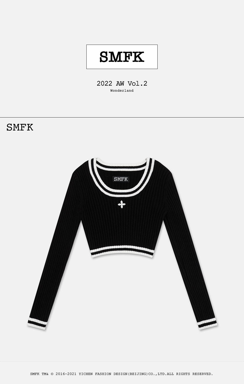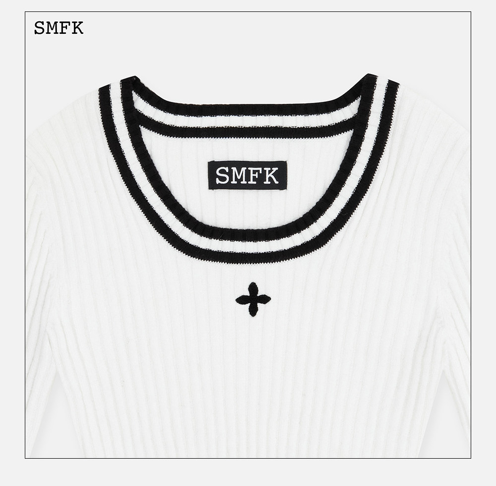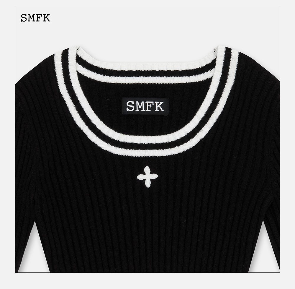SMFK十字古典短毛衣 ULS07B/W 修身刺绣打底针织衫薄款