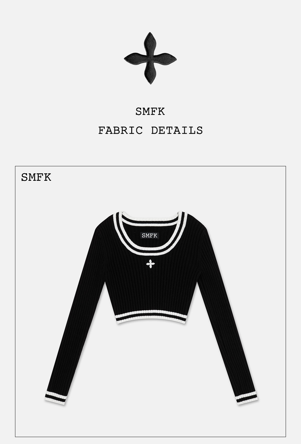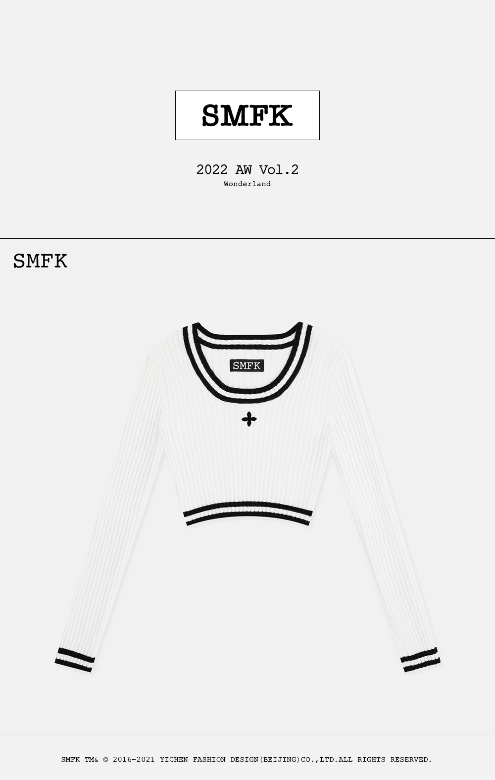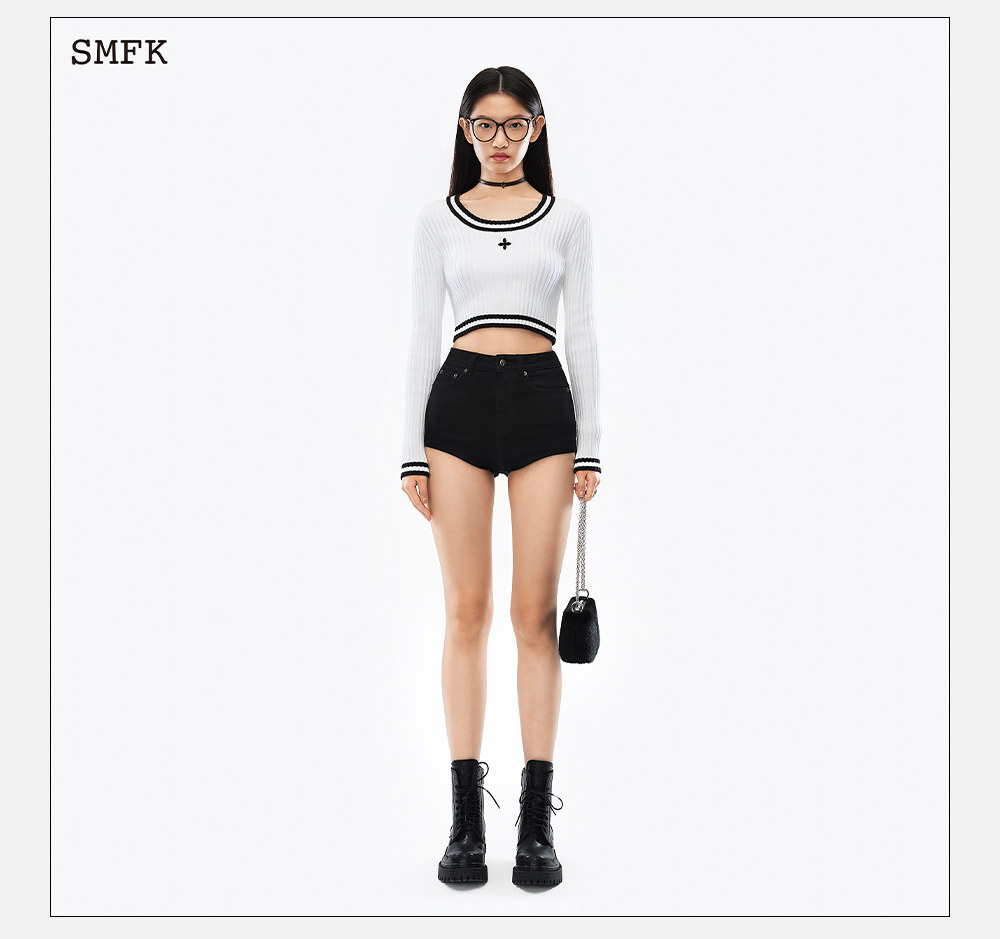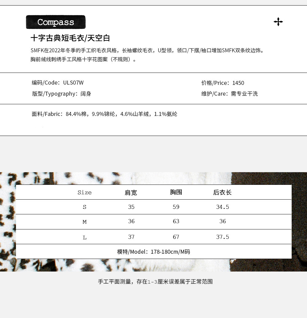 SMFK十字古典短毛衣 ULS07B/W 修身刺绣打底针织衫薄款