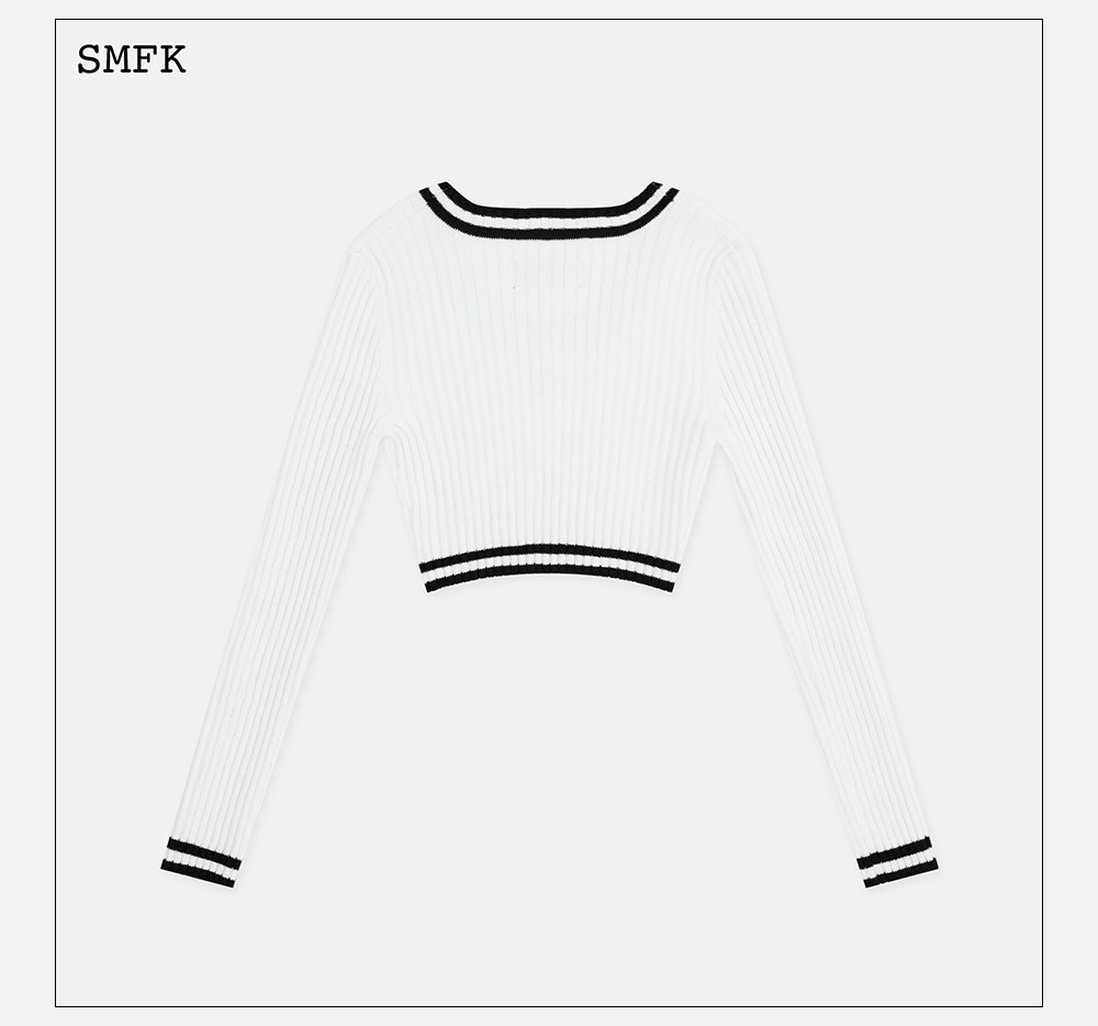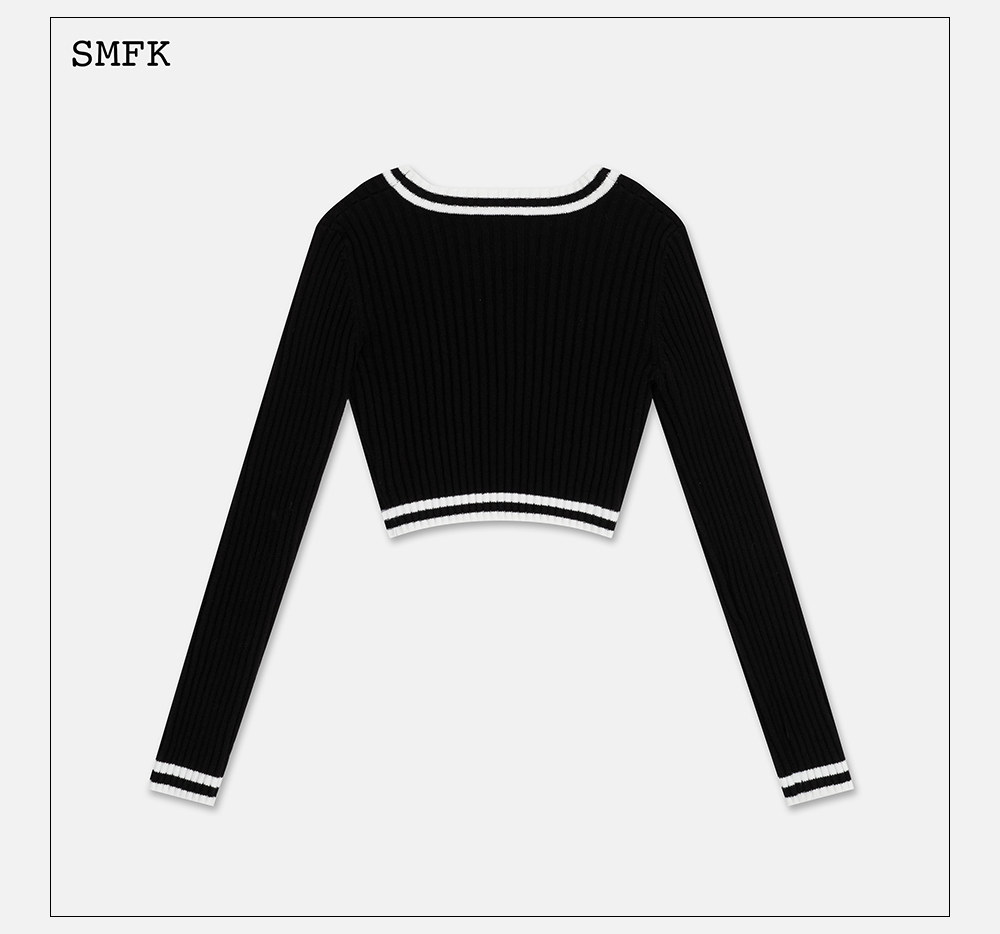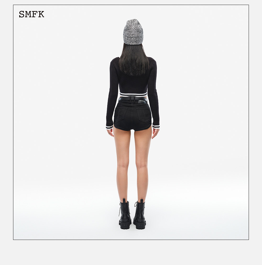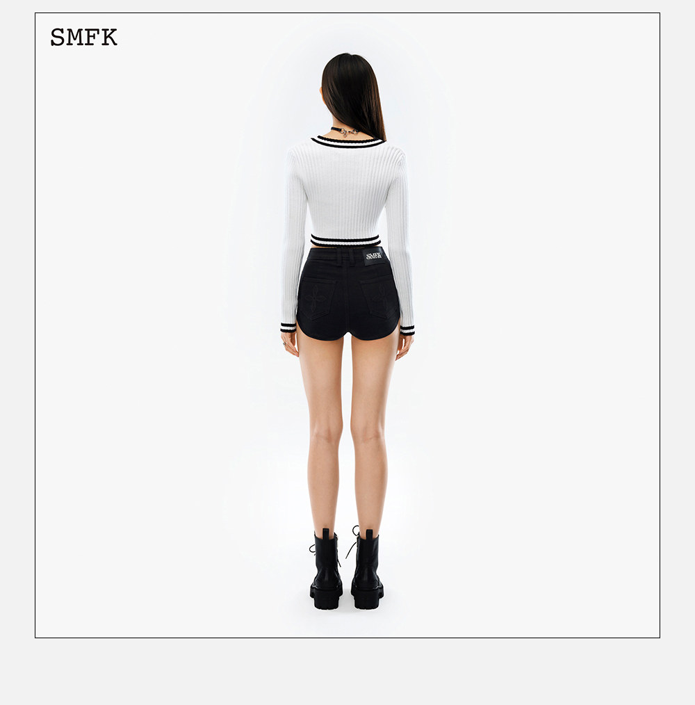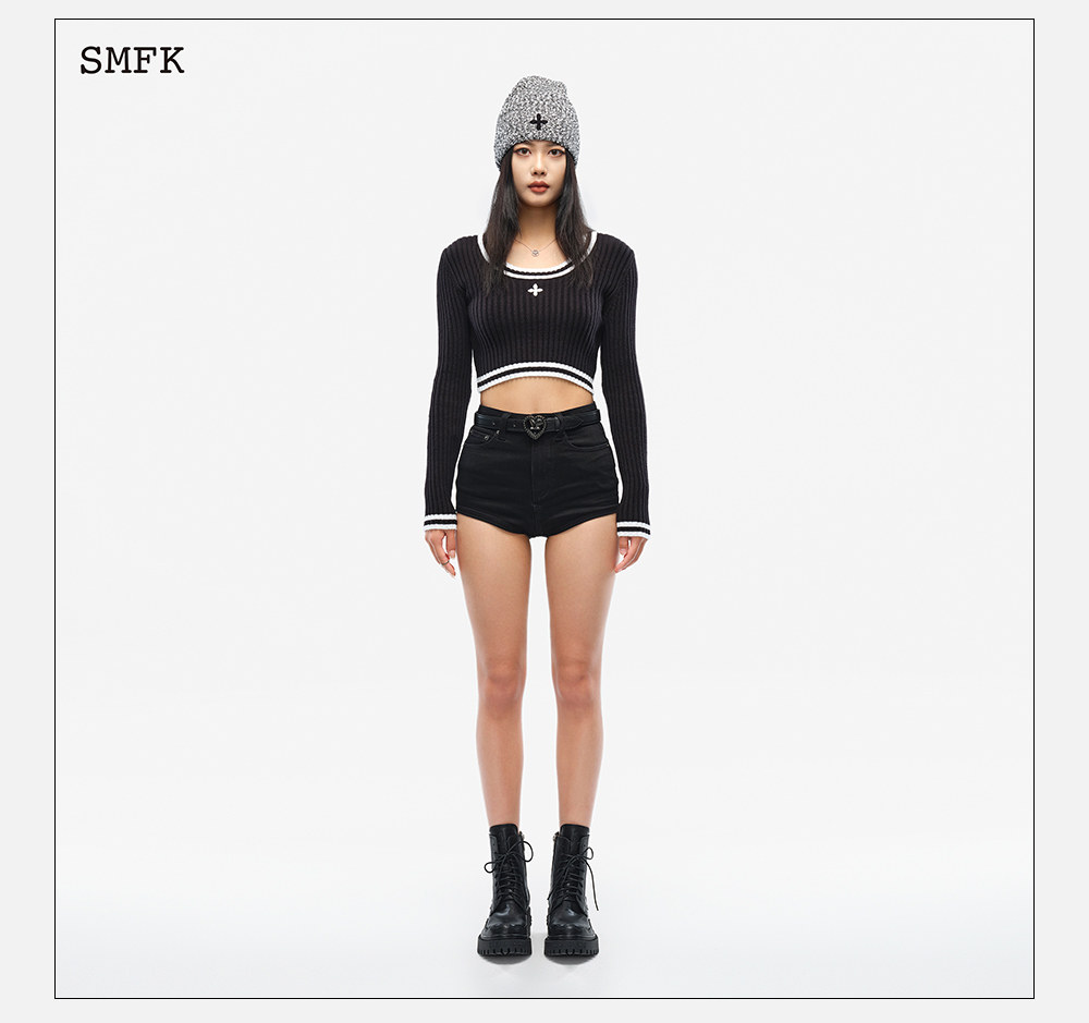 SMFK十字古典短毛衣 ULS07B/W 修身刺绣打底针织衫薄款