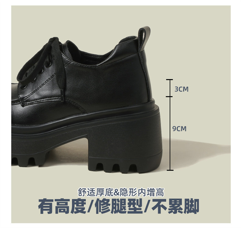 英伦风小皮鞋女春秋2025新款厚底小个子高跟12cm单鞋内增高乐福鞋