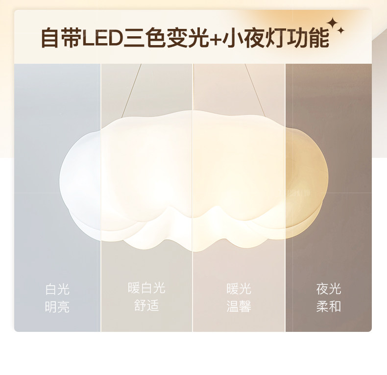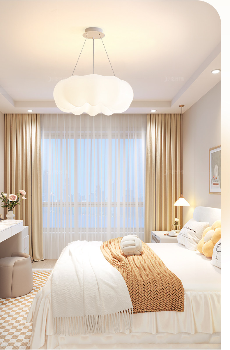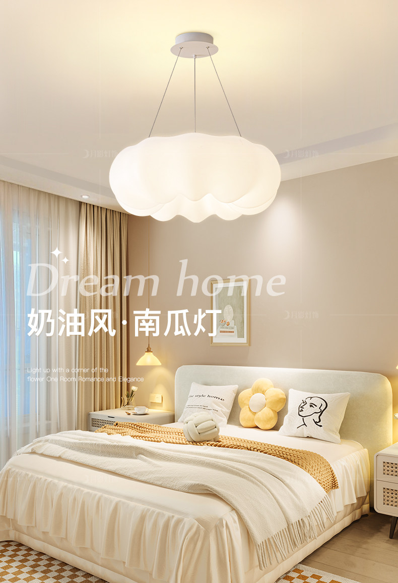 Moon Shadow Cream Style Bedroom Chandelier Modern Simple Cloud Lamp Warm and Romantic Children's Room Full Spectrum Eye Protection Lamp