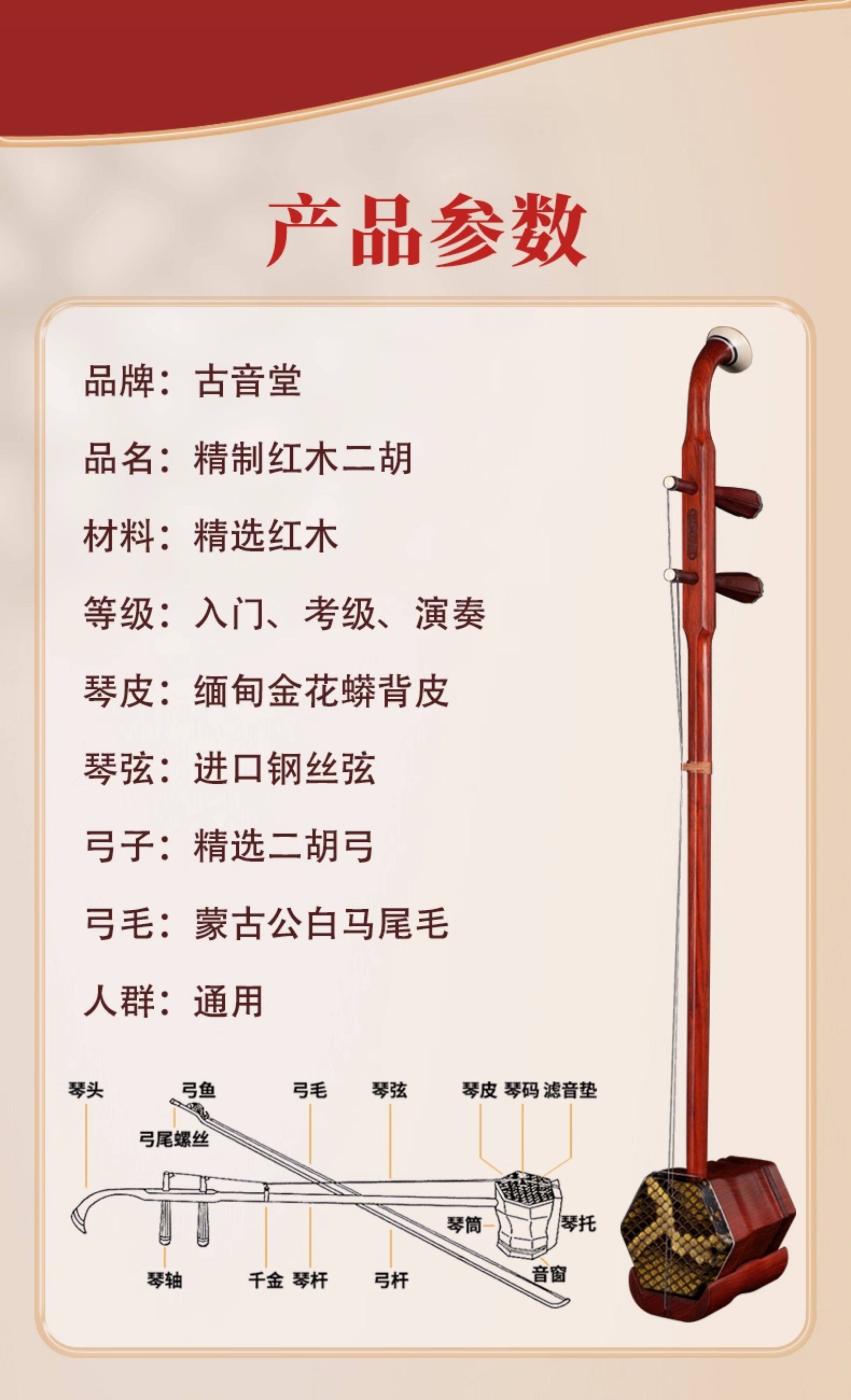 Factory Direct Sales of Musical Instruments, Suzhou Craftsmanship Erhu, Suitable for Middle-Aged and Elderly Beginners, Entry-Level Grading Performance, High Volume, Rosewood
